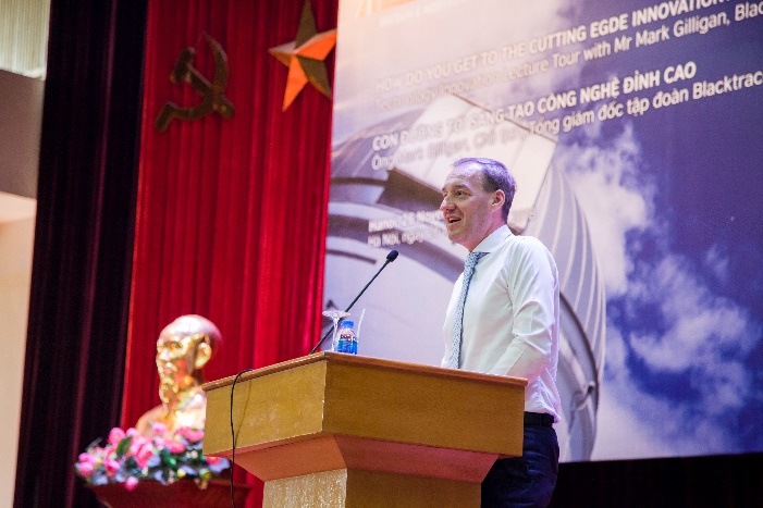 Diễn giả trong buổi hội thảo là ông Mark Gillian – Chủ tịch tập đoàn trách nhiệm hữu hạn Blacktrace – một công ty start-up chuyên về những nghiên cứu công nghệ mới nhất. Tại hội thảo, ông Mark Gilligan đã có những chia sẻ thú vị về nhiều vấn đề, trong đó đặc biệt nhất là về sáng tạo công nghệ và việc đưa những nghiên cứu khoa học thành những sản phẩm thực tế nhưng ưu việt.