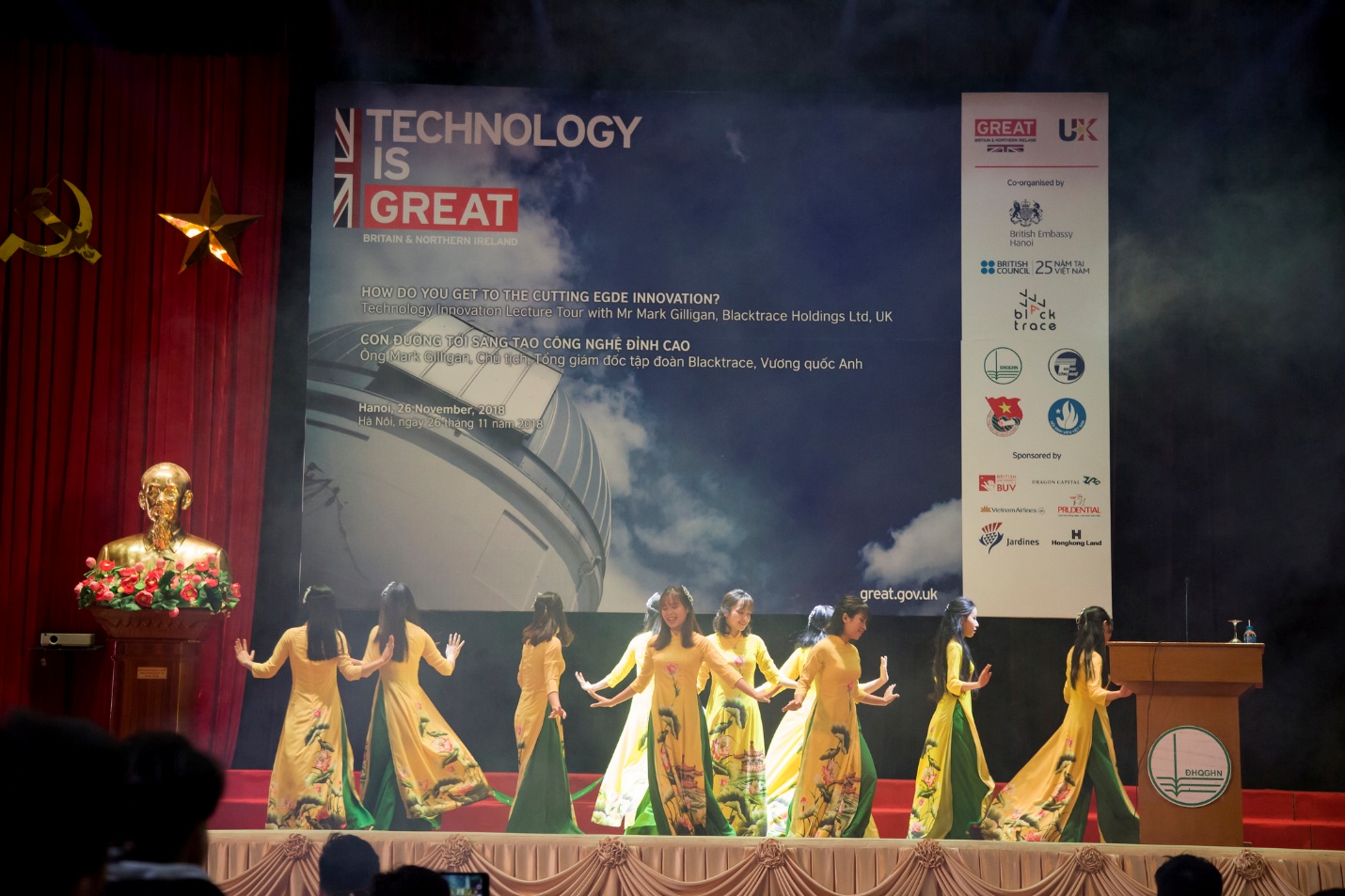 Nằm trong chuỗi sự kiện “Insprire Me” nhằm kỷ niệm 45 năm thiết lập quan hệ ngoại giao Việt Nam – Vương quốc Anh và đánh dấu cột mốc 25 năm Hội đồng Anh Bristish Council hoạt động tại Việt Nam. Ngày 26/11/2018, Đoàn Thanh niên – Hội Sinh viên trường Đại học Công nghệphối hợp cùng Hội đồng Anh tổ chức hội thảo “Con đường tới sáng tạo công nghệ đỉnh cao”.