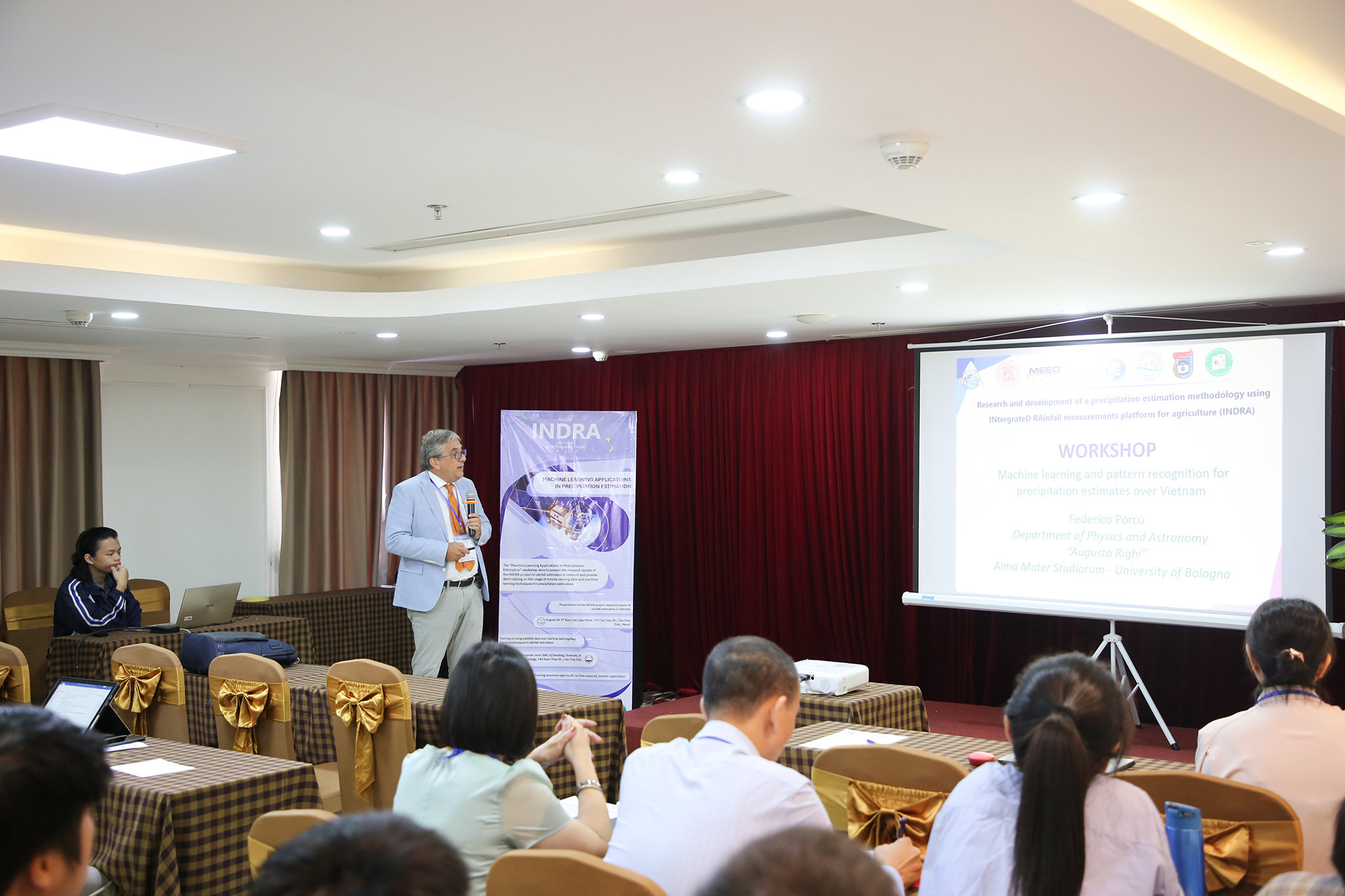 Hội thảo nằm trong khuôn khổ đề tài Nghị định thư NĐT/IT/22/07 “Nghiên cứu xây dựng phương pháp ước tính lượng mưa từ dữ liệu tích hợp đa nền tảng phục vụ nông nghiệp” (INDRA), được đồng tài trợ bởi Bộ Ngoại giao và Hợp tác Phát triển Ý và Bộ Khoa học và Công nghệ Việt Nam. Hội thảo này nhằm chia sẻ các kết quả nghiên cứu, sản phẩm nghiên cứu và các ứng dụng tiềm năng của đề tài NĐT INDRA và đào tạo/tập huấn ngắn hạn về việc sử dụng các thuật toán học máy với dữ liệu viễn thám trong ước tính lượng mưa.