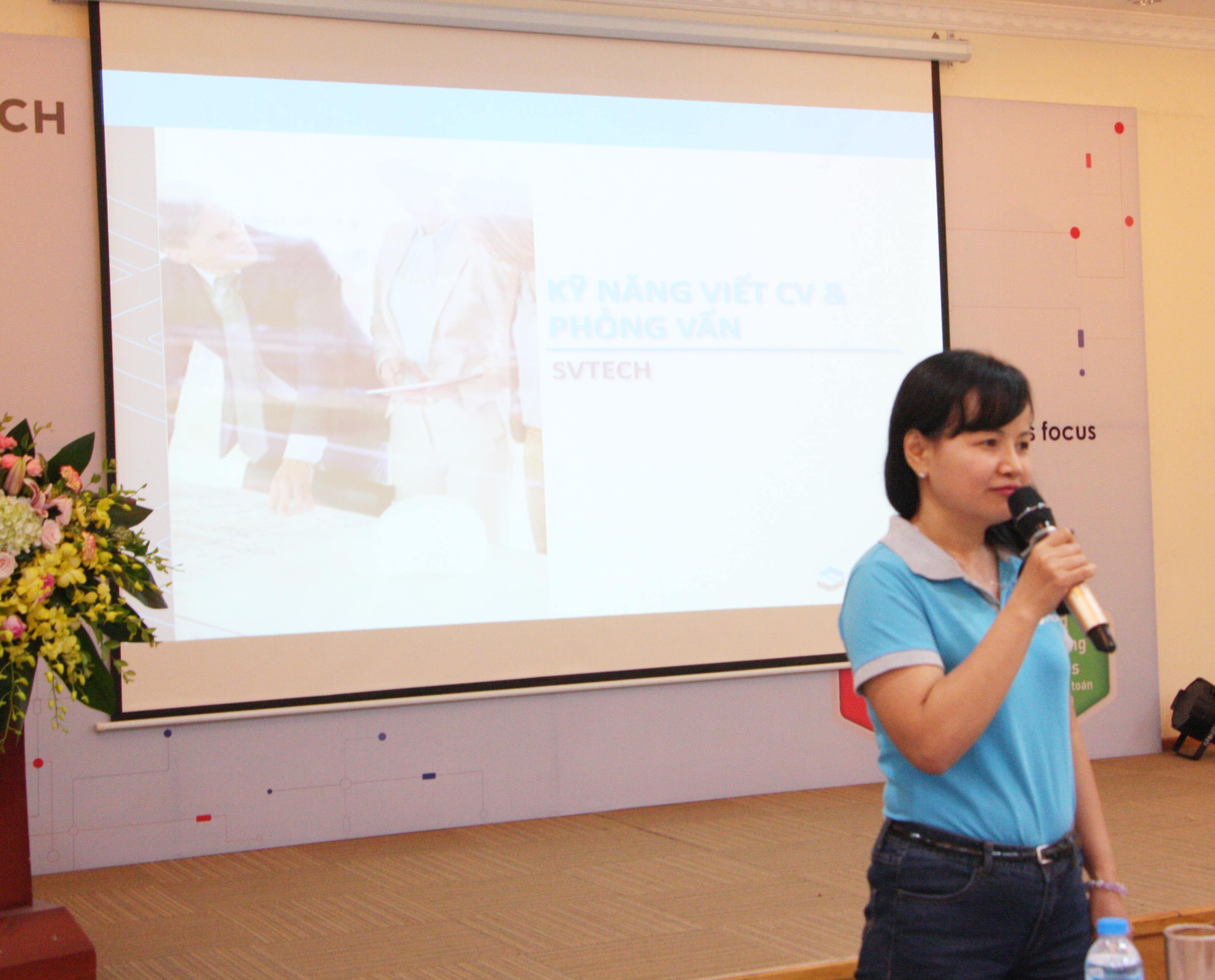 Bà Nguyễn Thị Tuyết giới thiệu đến sinh viên kỹ năng viết CV, kỹ năng phỏng vấn