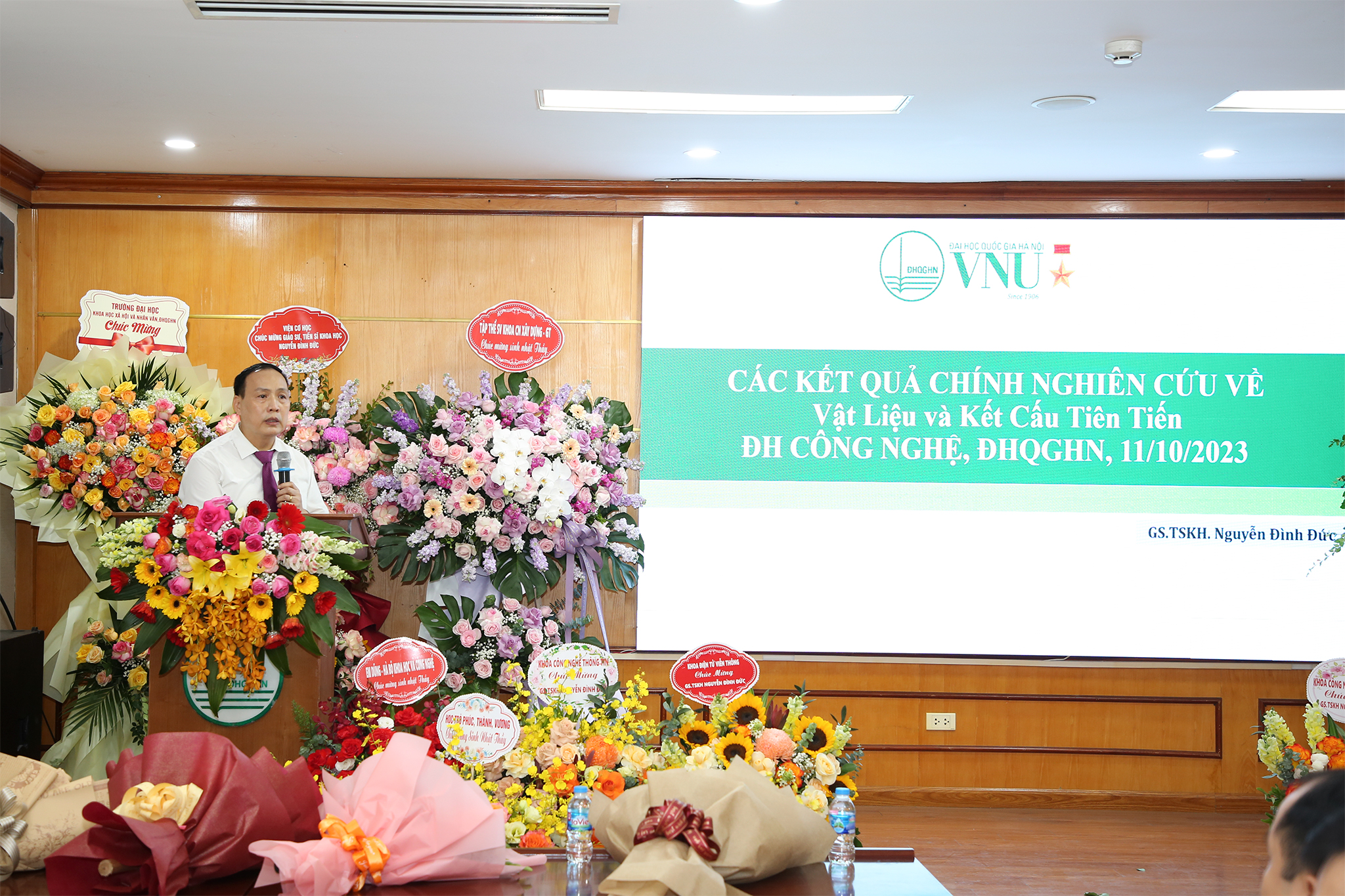 Ngày 11/10/2023, Trường Đại học Công nghệ – Đại học Quốc gia Hà Nội tổ chức Hội thảo khoa học những kết quả nghiên cứu về vật liệu và kết cấu tiên tiến do GS.TS Chử Đức Trình – Hiệu trưởng Trường ĐH Công nghệ chủ trì. Hội thảo đặc biệt được tổ chức vào ngày sinh nhật tròn 60 tuổi của GS.TSKH Nguyễn Đình Đức.