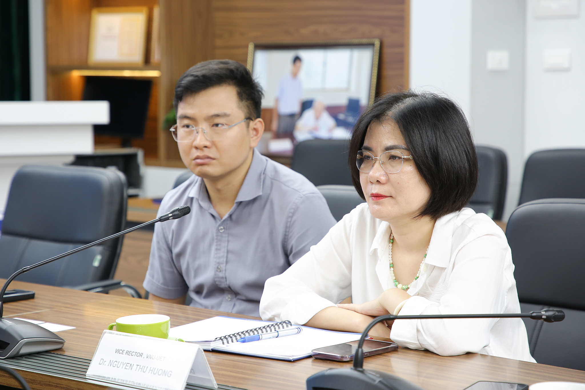 Trong khuôn khổ chuyến thăm, GS. Park Seung-Han và ông Jeong Junho đã trực tiếp phỏng vấn sinh viên UET để trao học bổng thạc sĩ, mở ra cơ hội học tập và nghiên cứu quốc tế cho sinh viên Nhà trường.