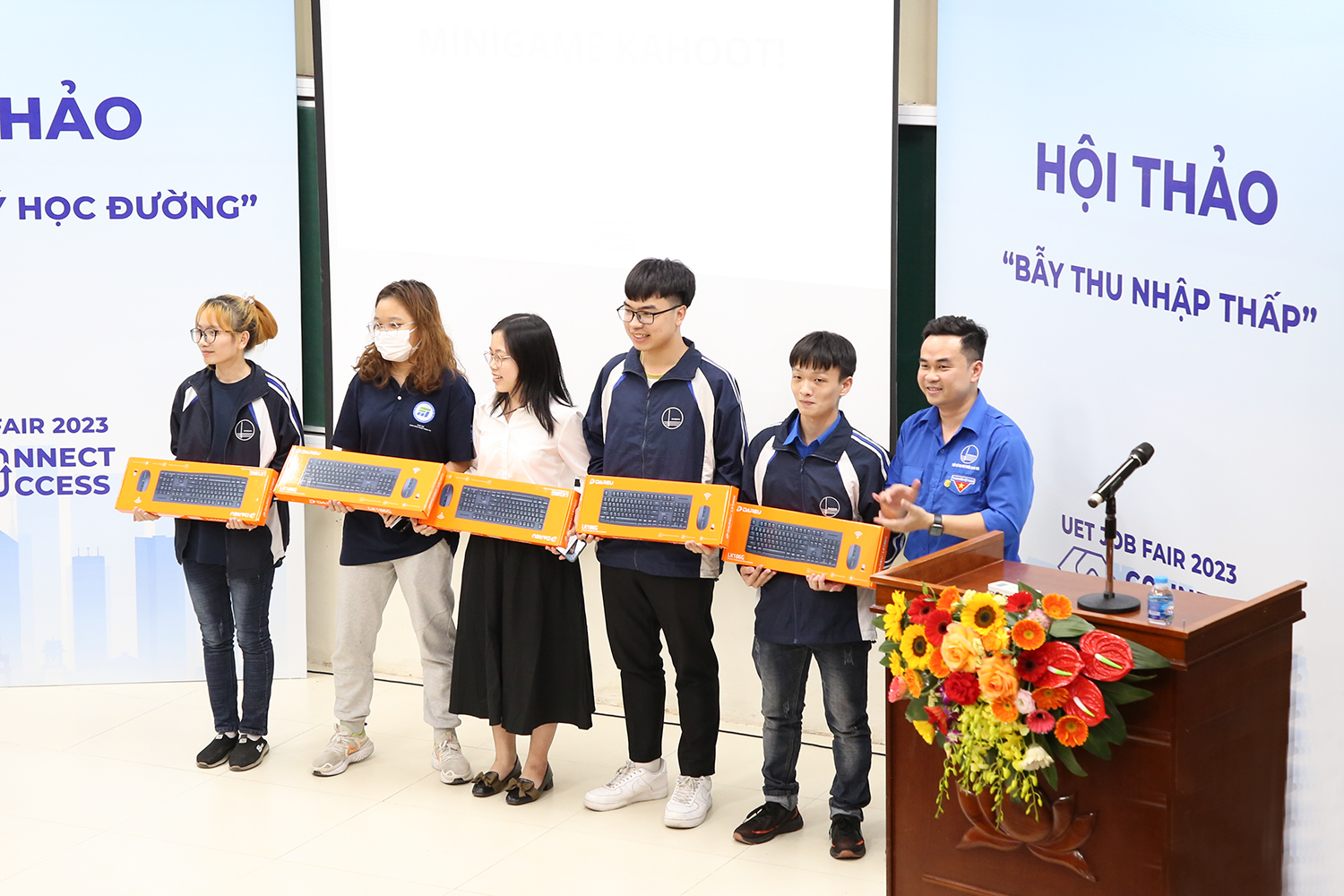 Buổi hội thảo “Bẫy thu nhập thấp” là một trong những chương trình mở đầu cho sự kiện “Ngày hội việc làm Công nghệ UET Job Fair 2023” đã kết thúc thành công, giúp sinh viên có thêm nhiều kiến thức kỹ năng và ngày 25/03/2023 sẽ là hoạt động “tiền” sự kiện tiếp theo với chủ đề “Áp lực tâm lý học đường” để giúp sinh viên “làm mới” cảm xúc của bản thân. Từ đó, sinh viên sẽ có những trải nghiệm và hoạt động tuyển dụng hiệu quả tại UET Job Fair 2023 do Trường ĐH Công nghệ tổ chức vào ngày 01/04/2023 tới đây.