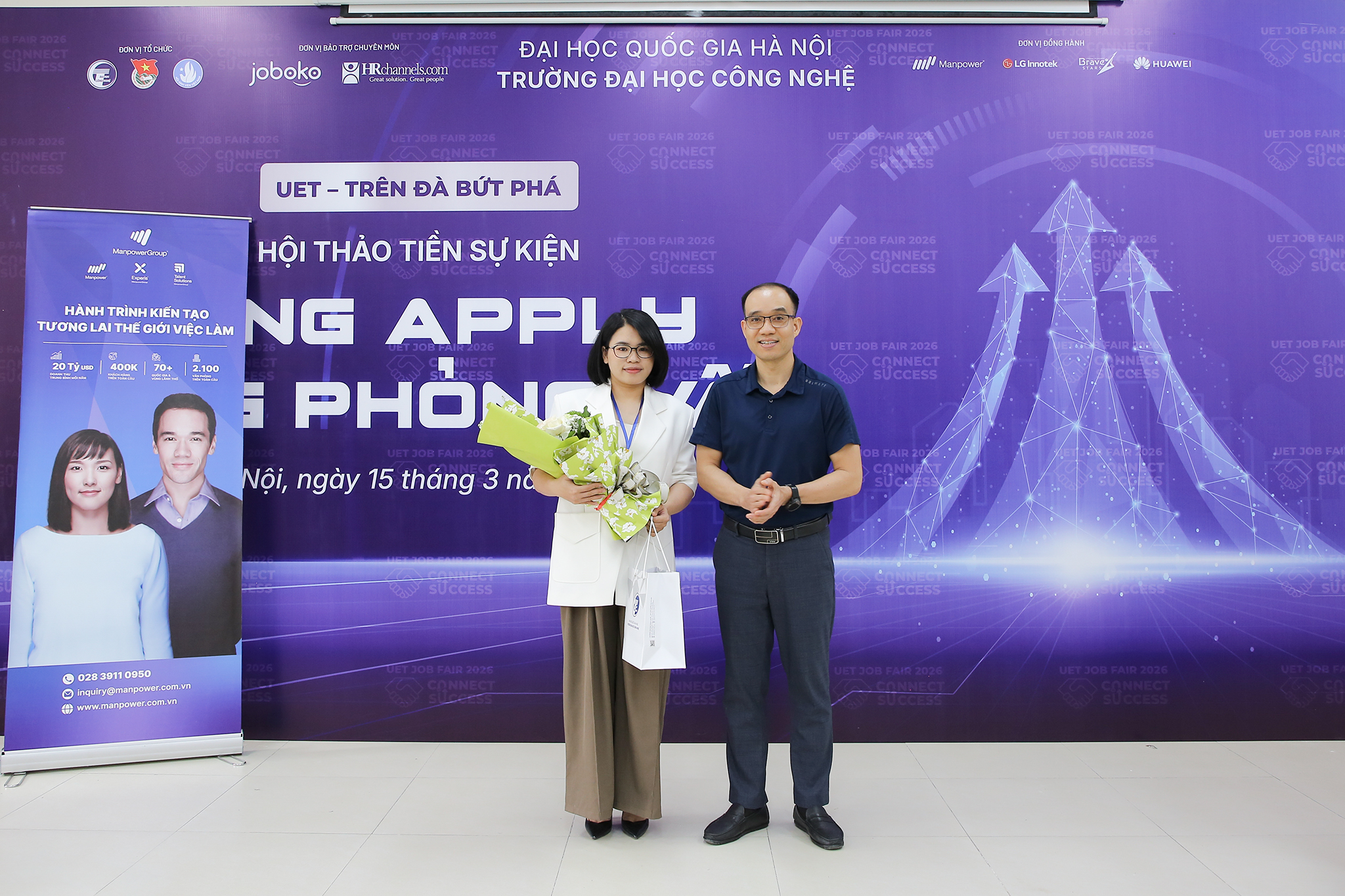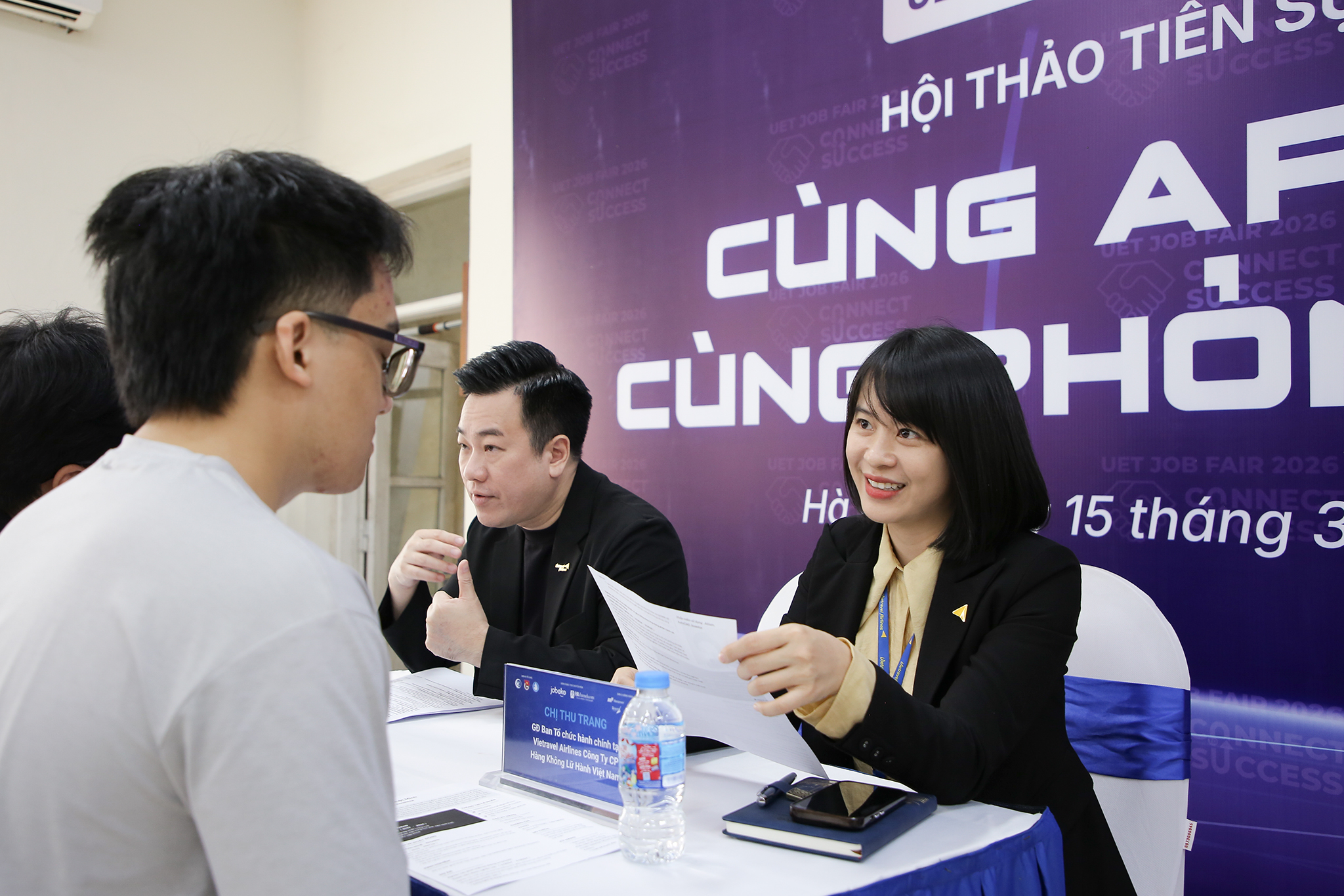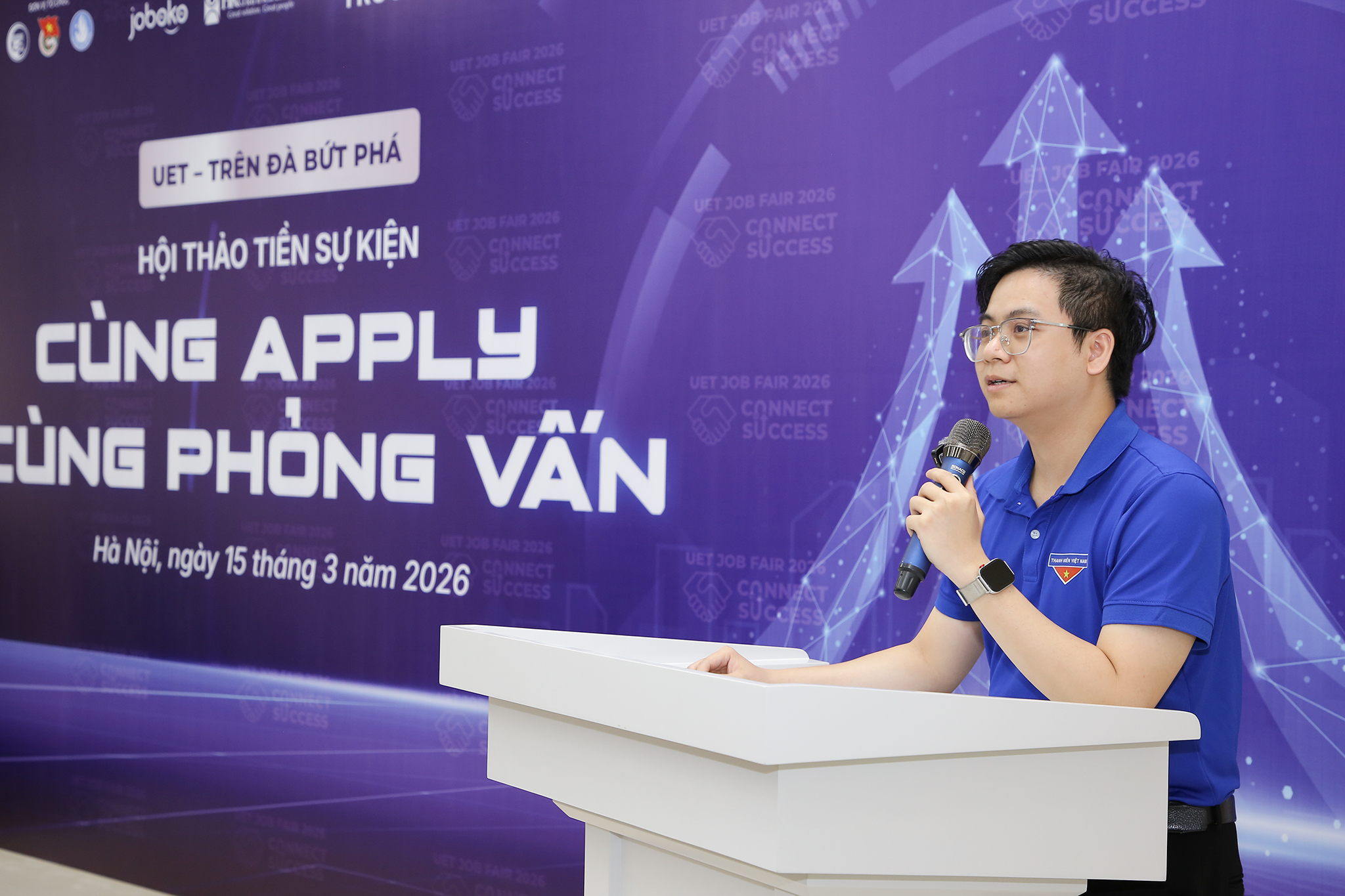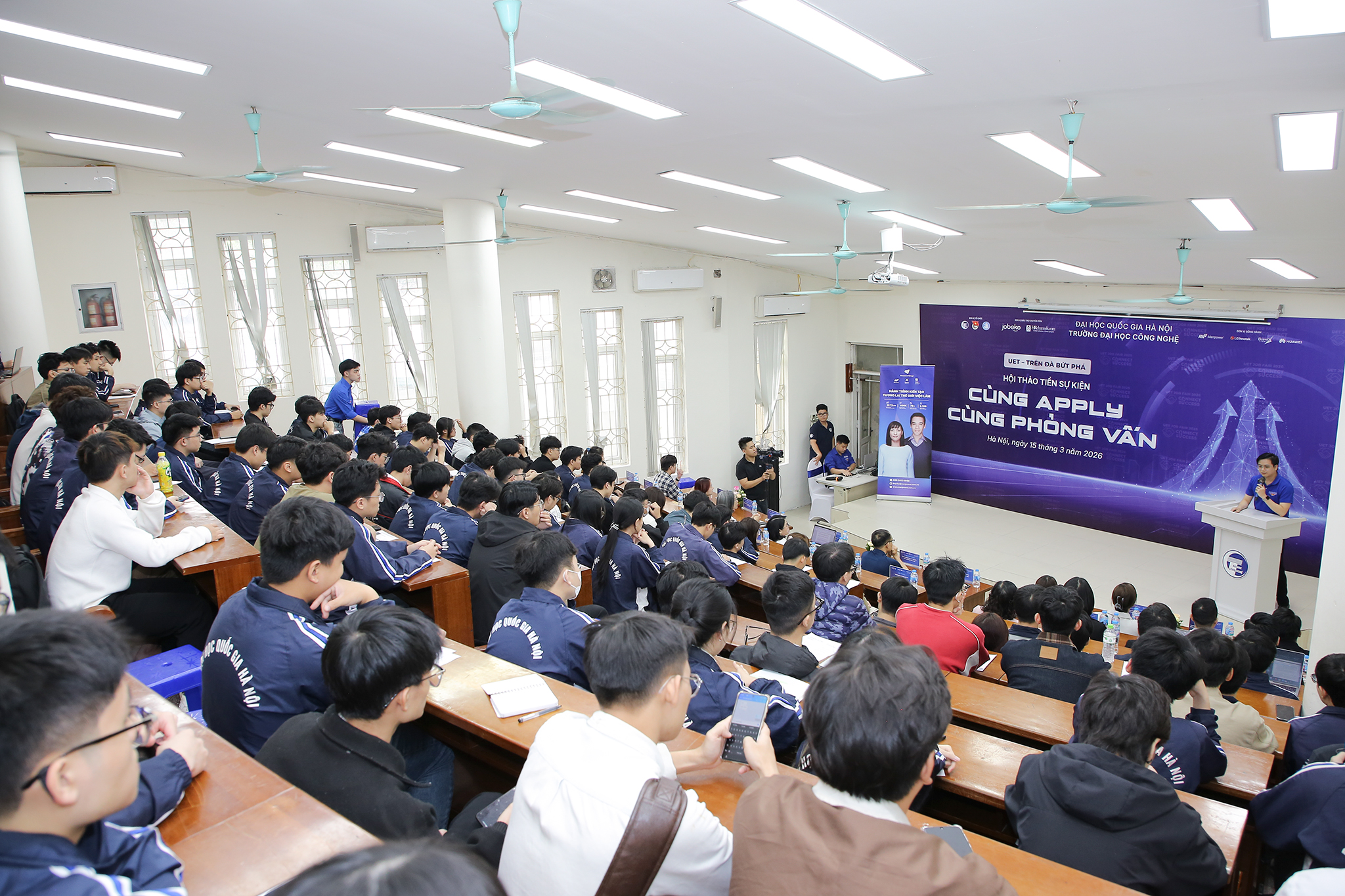 Nằm trong chuỗi sự kiện “Ngày hội việc làm Công nghệ – UET Job Fair 2026”, Trường Đại học Công nghệ – Đại học Quốc gia Hà Nội (VNU-UET) đã tổ chức hội thảo “Cùng apply – Cùng phỏng vấn” vào chiều ngày 15/03/2026 tại 3G3.