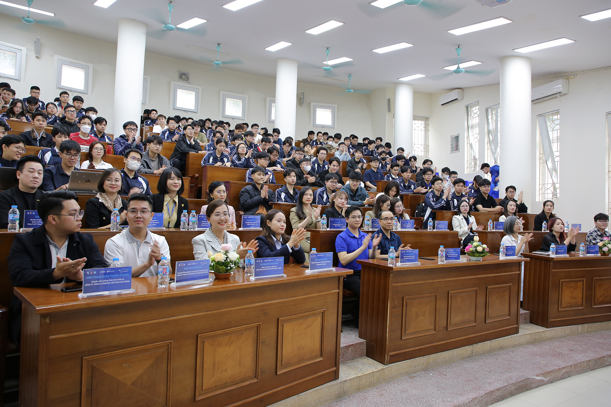 Không chỉ sinh viên năm cuối, các bạn sinh viên năm nhất như Phùng Thế Đạt và Đặng Khánh Duy (ngành Công nghệ thông tin) cũng chủ động tham gia hội thảo nhằm tìm hiểu sớm về xu hướng nghề nghiệp, đặc biệt trong bối cảnh trí tuệ nhân tạo đang phát triển mạnh mẽ. Sau chương trình, cả hai cho rằng việc tham dự các sự kiện kết nối doanh nghiệp ngay từ năm đầu giúp sinh viên hiểu rõ hơn về yêu cầu của thị trường, từ đó xây dựng lộ trình học tập, trau dồi ngoại ngữ và kỹ năng mềm phù hợp cho tương lai.