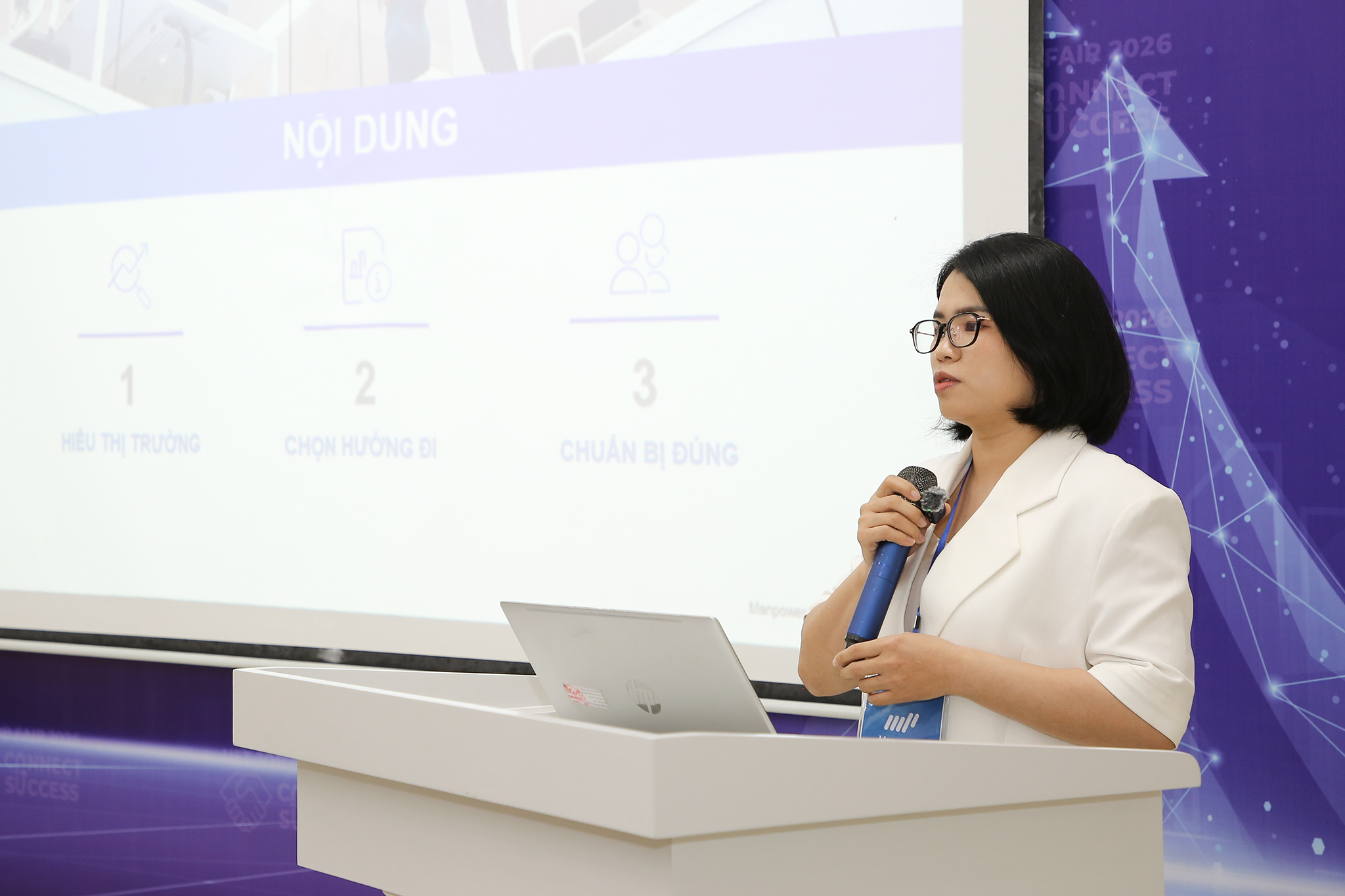 Tại buổi hội thảo, diễn giả Nông Hải Âu – Chuyên gia tư vấn cấp cao về tuyển dụng tại Manpower chia sẻ góc nhìn về “Lộ trình nghề nghiệp: Cơ hội cho sinh viên ngành kỹ thuật”. Với hơn 10 năm kinh nghiệm trong lĩnh vực tư vấn giải pháp nhân sự và đồng hành cùng nhiều doanh nghiệp quốc tế trong các dự án tuyển dụng quy mô lớn tại khu vực phía Bắc, chị Hải Âu đã chia sẻ với sinh viên về cách định hướng lộ trình phát triển nghề nghiệp cho sinh viên, bao gồm những xu hướng tuyển dụng hiện nay, cách xây dựng lộ trình nghề nghiệp phù hợp, cũng như những hiểu lầm phổ biến mà sinh viên thường gặp khi bắt đầu bước vào thị trường lao động. Từ đó, chị Nông Hải Âu nhấn mạnh, sinh viên cần thay đổi tư duy, chọn nghề phù hợp (theo nhu cầu thị trường, năng lực cá nhân và tính cách, sở thích) và sau đó là hành động ngay bằng việc tham gia làm dự án, hoạt động, thực tập tại nhà trường, doanh nghiệp; xây dựng CV; trau dồi ngoại ngữ cùng các kỹ năng dữ liệu.
