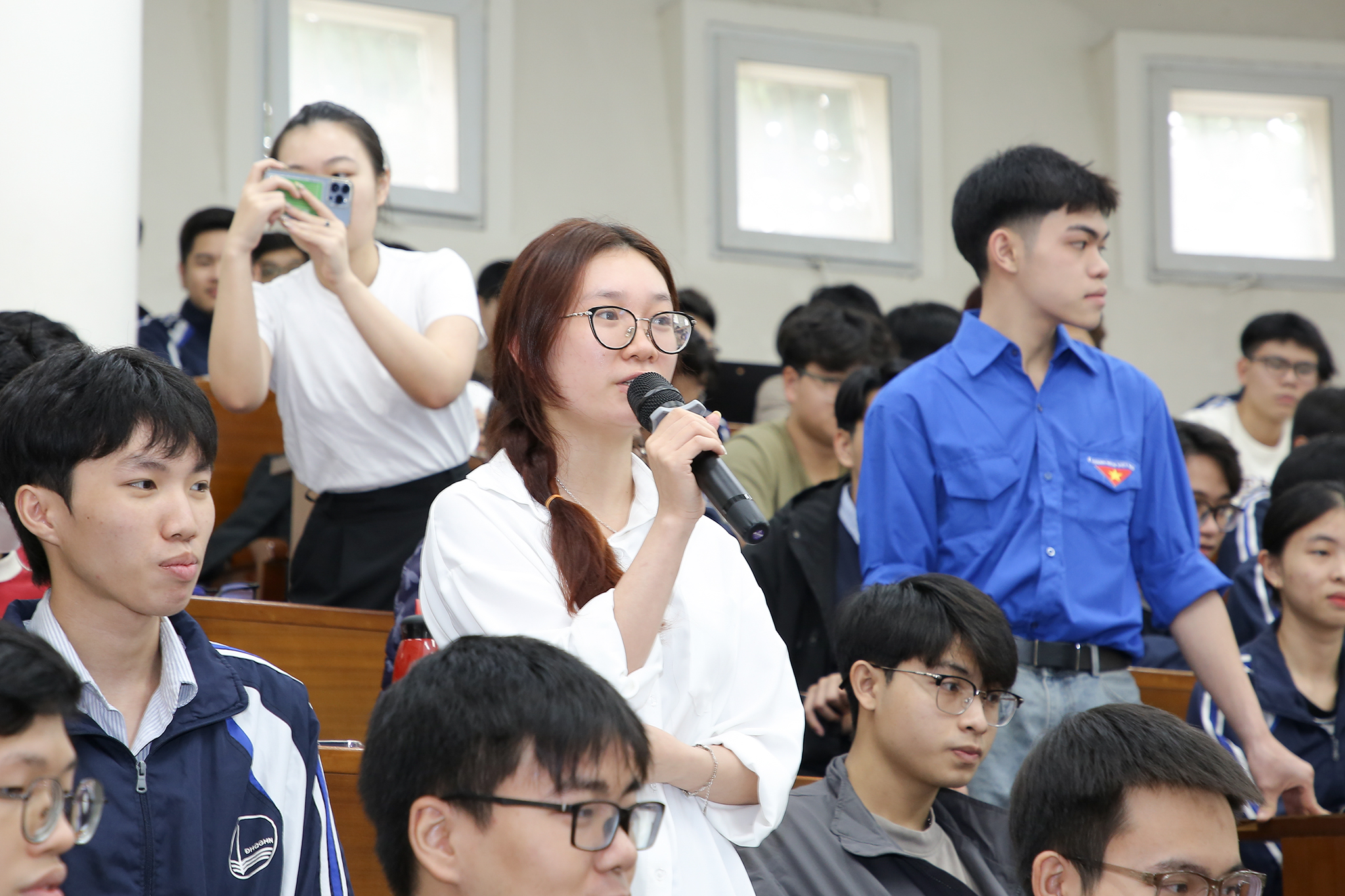 Phần giao lưu và chia sẻ kinh nghiệm của diễn giả đã thu hút sự quan tâm của đông đảo sinh viên. Nhiều câu hỏi liên quan đến năng lực chuyên môn, kỹ năng cần thiết cũng như định hướng nghề nghiệp đã được các bạn đặt ra và được diễn giả Hải Âu giải đáp cụ thể. Qua đó, diễn giả nhấn mạnh rằng bên cạnh nền tảng kiến thức chuyên môn, năng lực ngoại ngữ là một lợi thế quan trọng giúp sinh viên mở rộng cơ hội nghề nghiệp. Đồng thời, việc chủ động tìm hiểu và linh hoạt trong lựa chọn con đường phát triển cũng sẽ giúp sinh viên thích ứng tốt hơn với thị trường lao động.