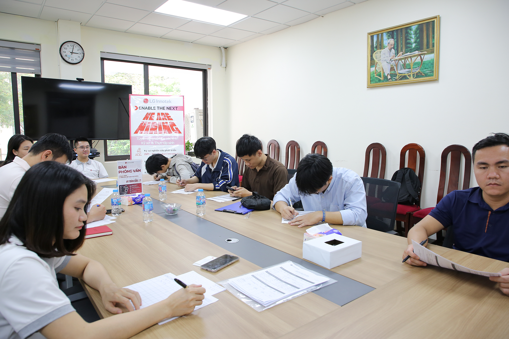 Trong khi đó, sinh viên Nguyễn Thế Công (K69, ngành Hệ thống thông tin) lựa chọn tham gia phỏng vấn thử với Công ty TNHH Công nghệ Huawei để trải nghiệm môi trường tuyển dụng của các tập đoàn lớn. Qua buổi phỏng vấn, Thế Công nhận ra tầm quan trọng của việc chuẩn bị kỹ lưỡng kỹ năng cá nhân và hồ sơ năng lực theo từng vị trí tuyển dụng cụ thể. Sau buổi hội thảo, căn cứ yêu cầu của doanh nghiệp, Thế Công sẽ tiếp tục rèn luyện và hoàn thiện bản thân trong thời gian tới.