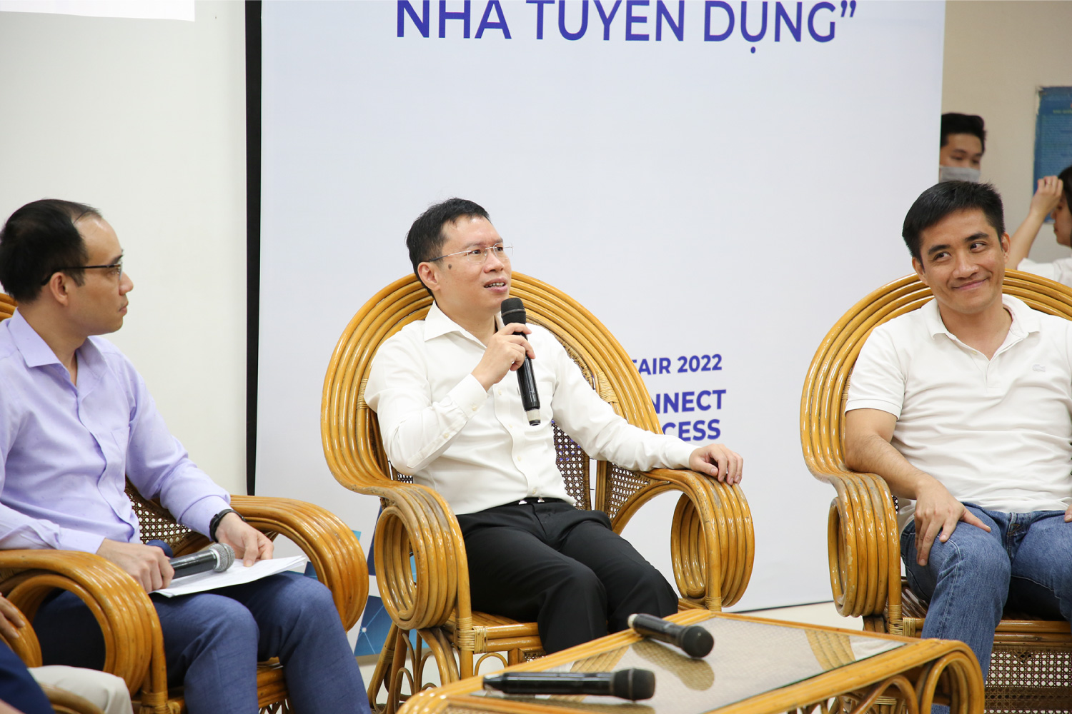 Phần giao lưu với các diễn giả đã thu hút được sự quan tâm của sinh viên trong các vấn đề liên quan đến tuyển dụng như kỹ năng khi đi phỏng vấn, tận dụng và nắm bắt các điểm mạnh của bản thân, vị trí thực tập sinh… Trong phần giao lưu, các nhà tuyển dụng đều đánh giá cao những sinh viên chăm chỉ, có trách nhiệm với công việc và khẳng định việc gắn bó lâu dài với doanh nghiệp sẽ giúp sinh viên trưởng thành trong công việc về kỹ năng, chuyên môn. Và các nhà tuyển dụng hi vọng sinh viên sẽ đặt tầm quan trọng của việc học hỏi về những kiến thức chuyên môn, kỹ năng lên đầu tiên sau khi ra trường.