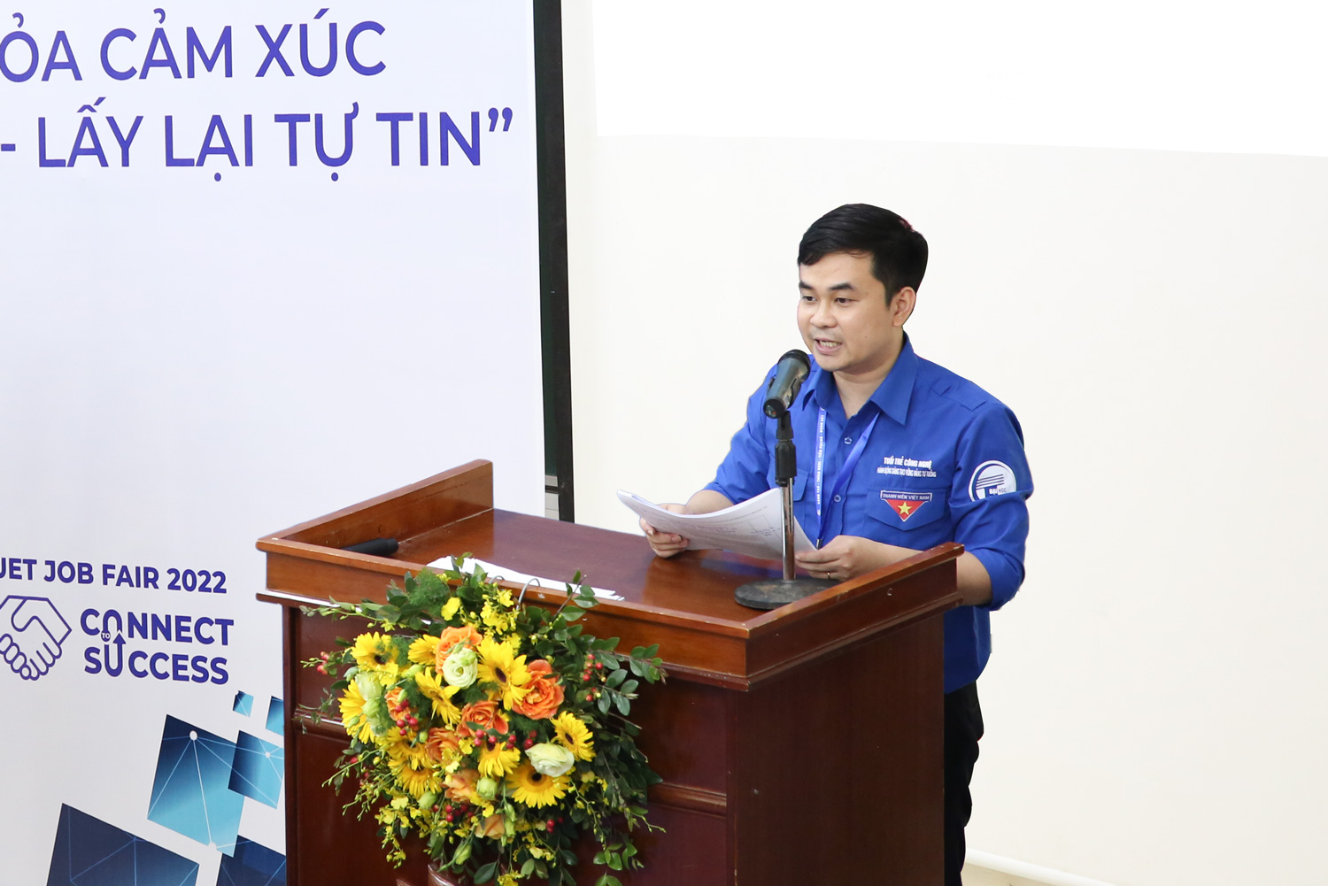 Phát biểu khai mạc, TS. Trần Cường Hưng hi vọng sinh viên có buổi hội thảo nhiều cảm xúc, chia sẻ được nhiều suy nghĩ của bản thân. Sau 2 năm ảnh hưởng do diễn biến phức tạp của dịch Covid-19 diễn ra trên toàn cầu nói chung, Việt Nam nói riêng, học sinh, sinh viên không thể đến trường và tham gia trực tiếp các buổi học trên lớp cùng thầy cô, các bạn. Đến nay, các bạn sinh viên được trở lại với cuộc sống bình thường mới, nhưng một phần nào đấy các bạn vẫn có cảm xúc tiêu cực, nhiều bạn mất tự tin, nhận thấy điều này Đoàn Thanh niên xây dựng buổi hội thảo “Giải tỏa cảm xúc tiêu cực – Lấy lại tự tin” và trở lại chính mình trước khi các bạn bước ra cuộc sống bình thường mới”.