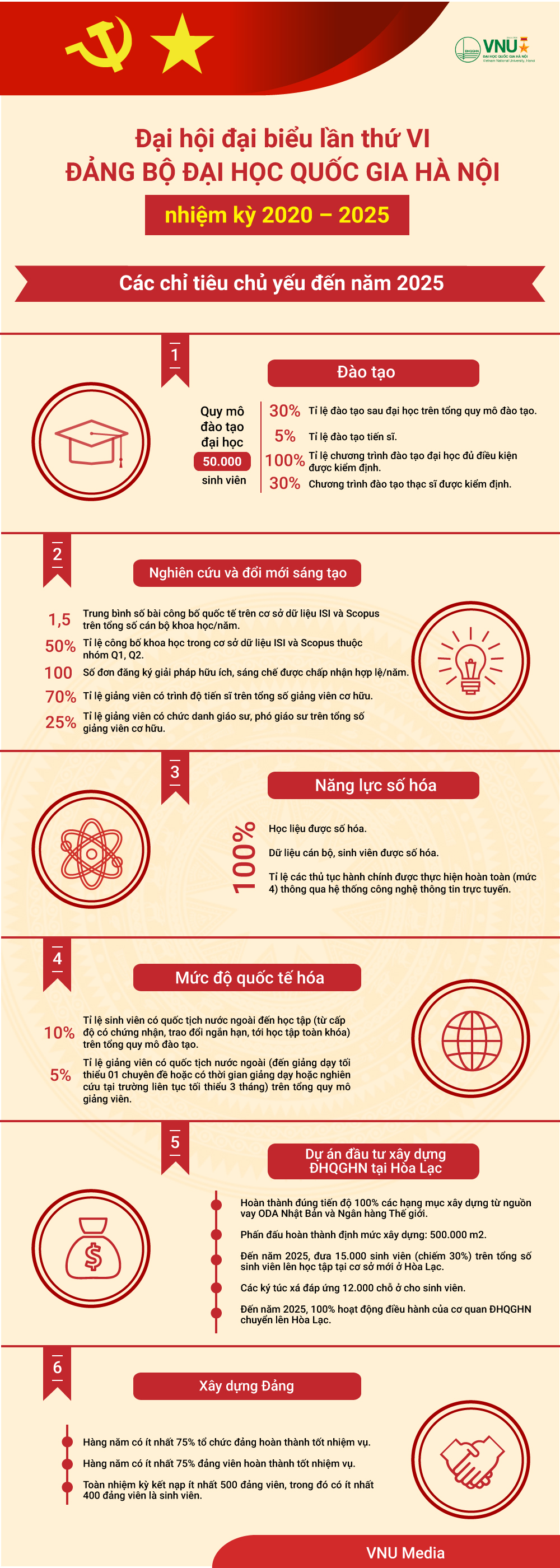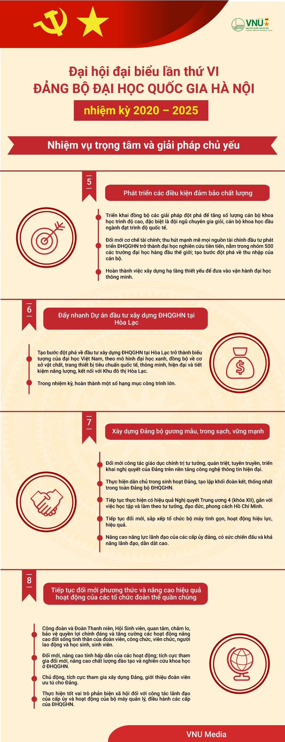 [Infographic] Các nhiệm vụ trọng tâm và giải pháp chủ yếu phát triển ĐHQGHN, giai đoạn 2020 – 2025
