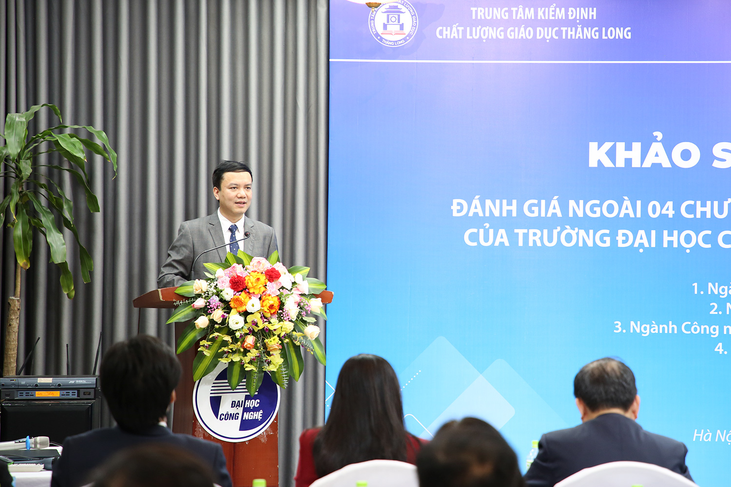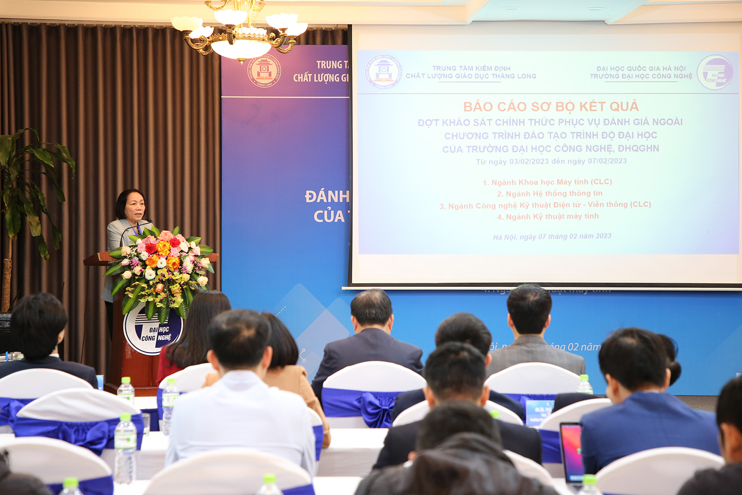 Đại diện Trung tâm KĐCLGD Thăng Long, TS. Nguyễn Thị Kim Phụng – Giám đốc Trung tâm cho biết Trường ĐH Công nghệ có nhiều điểm sáng trong xây dựng, phát triển đội ngũ; đào tạo chất lượng cao; nghiên cứu khoa học; công bố quốc tế; các hoạt động hỗ trợ sinh viên, tỷ lệ sinh viên tốt nghiệp có việc làm sau 1 năm tốt nghiệp cao,… TS hi vọng Nhà trường tiếp tục phát huy những điểm sáng trong các hoạt động, bên cạnh đó những kiến nghị của Đoàn đánh giá sẽ được Nhà trường đưa vào kế hoạch và có lộ trình cải tiến để không ngừng nâng cao chất lượng trong tất cả hoạt động của Trường.