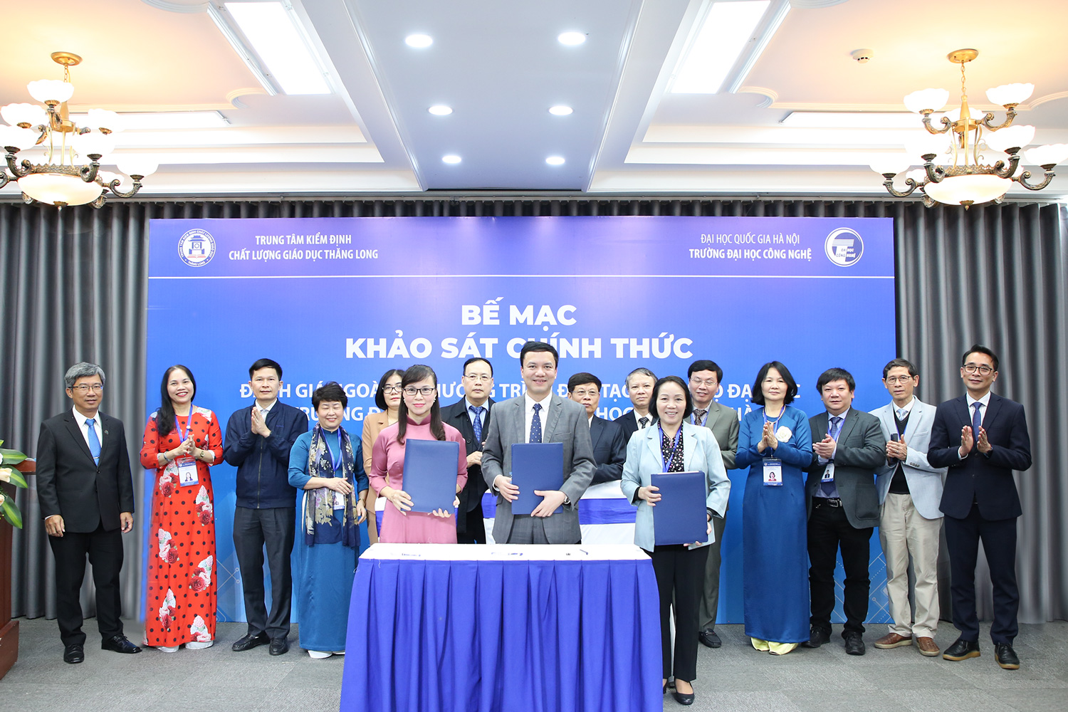 Cuối phiên bế mạc, đại diện Trường ĐH Công nghệ, Đoàn đánh giá ngoài và Trung tâm KĐCLGD Thăng Long đã cùng nhau ký biên bản hoàn thành đợt khảo sát chính thức phục vụ đánh giá ngoài 4 chương trình đào tạo trình độ đại học theo tiêu chuẩn của Bộ Giáo dục và Đào tạo.
