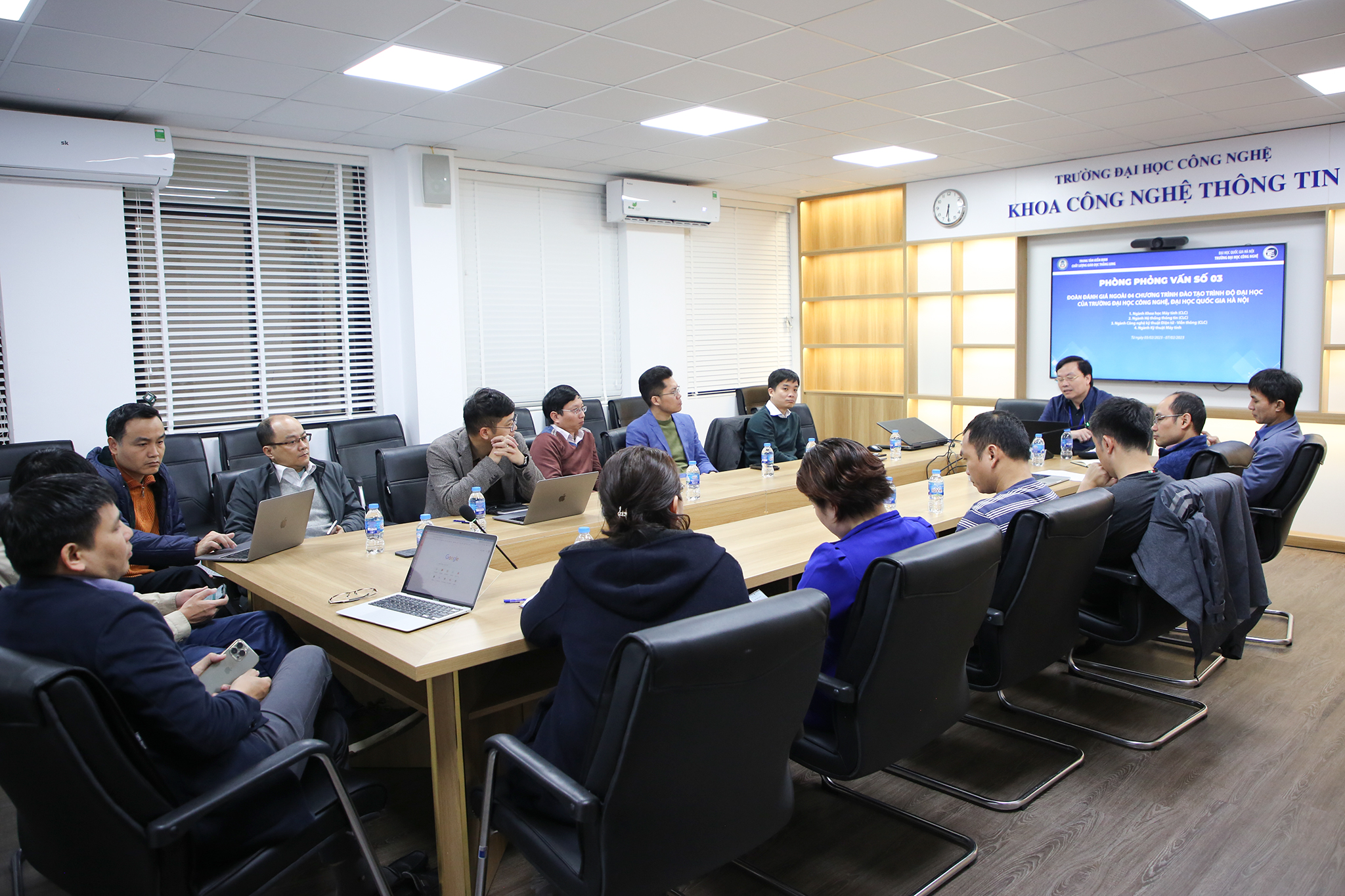 Đợt khảo sát chính thức được thực hiện từ ngày 03/02 – 07/02/2023 tại Trường ĐH Công nghệ gồm các hoạt động như nghiên cứu báo cáo tự đánh giá, hồ sơ minh chứng; khảo sát và trao đổi với các đơn vị; phỏng vấn các bên liên quan trong và ngoài trường; kiểm tra, khảo sát cơ sở vật chất.