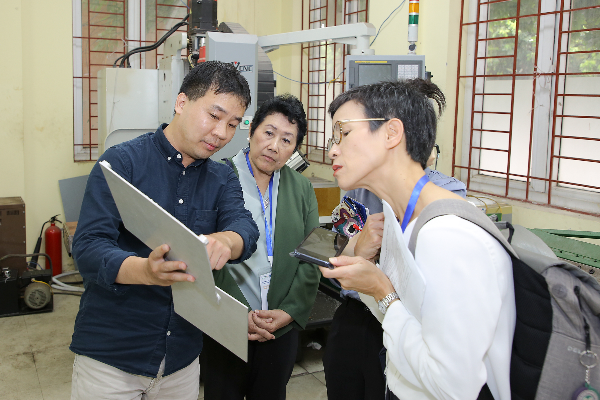Đoàn đánh giá ngoài tham quan cơ sở vật chất khoa Cơ học kỹ thuật & Tự động hoá