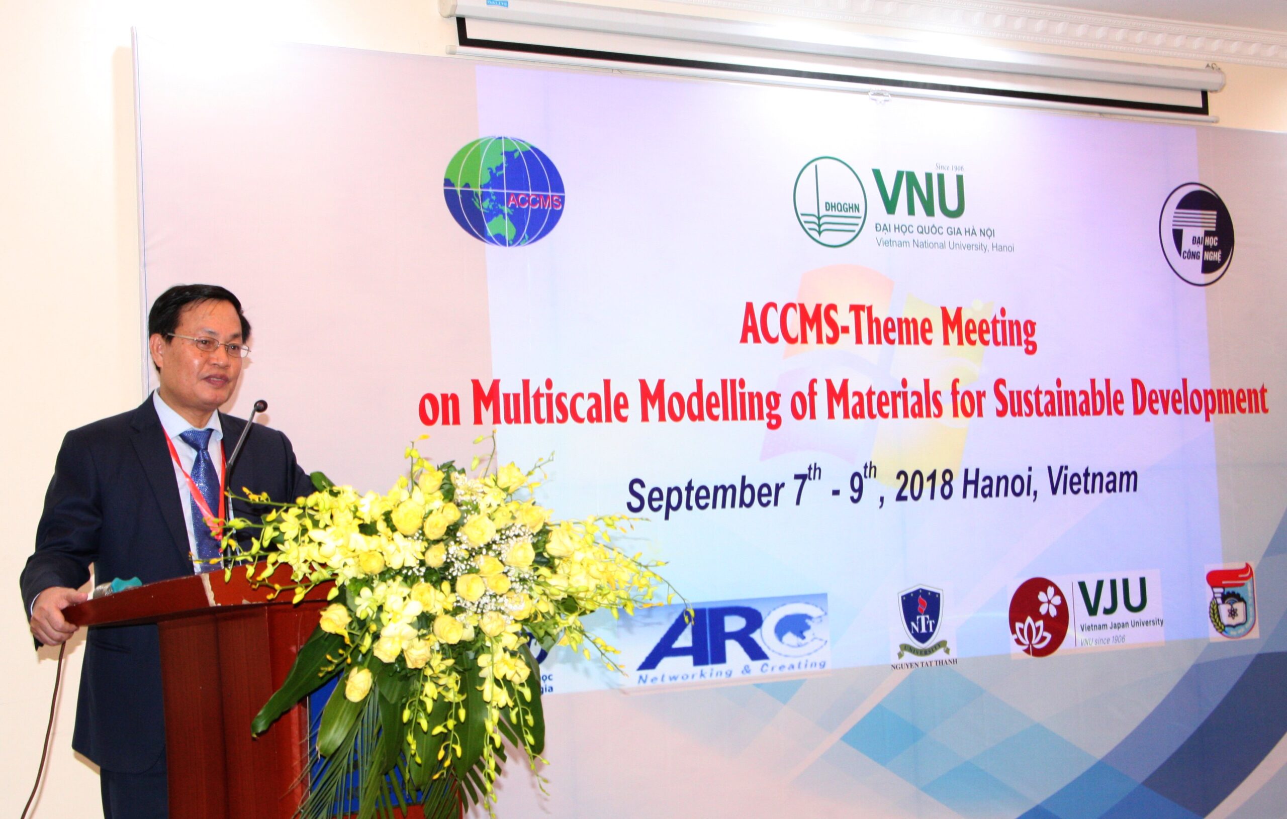 Khẳng định ý nghĩa của hội nghị ACCMS, Phó Giám đốc ĐHQGHN Nguyễn Hữu Đức chia sẻ, Hội nghị ACCMS-TM là một hội nghị lớn nhằm mục đích thúc đẩy trao đổi quốc tế về ý tưởng và những tiến bộ trong Khoa học vật liệu tính toán. Năm nay với chủ đề, “Vật liệu nano ứng dụng trong phát triển bền vững”, là chủ đề mang ý nghĩa quan trọng trong sự phát triển và hội nhập của nền khoa học và công nghệ nước nhà, hội nghị không chỉ là dịp để các nhà khoa học trong nước gặp gỡ, trao đổi và giao lưu với các nhà khoa học hàng đầu thế giới trong lĩnh vực chuyên môn, mà qua đó còn góp phần thúc đẩy các hướng nghiên cứu mới, hiện đại ở Việt Nam. Với tính cấp thiết của chủ đề thảo luận, cùng với định hướng tiên phong trong nghiên cứu, chuyển giao tri thức của ĐHQGHN, hy vọng hội nghị sẽ là nơi công bố, chia sẻ những nghiên cứu mới về vật liệu nano và những ứng dụng của nó trong phát triển bền vững, góp phần nâng cao uy tín của ĐHQGHN trong cộng đồng khoa học quốc tế”.