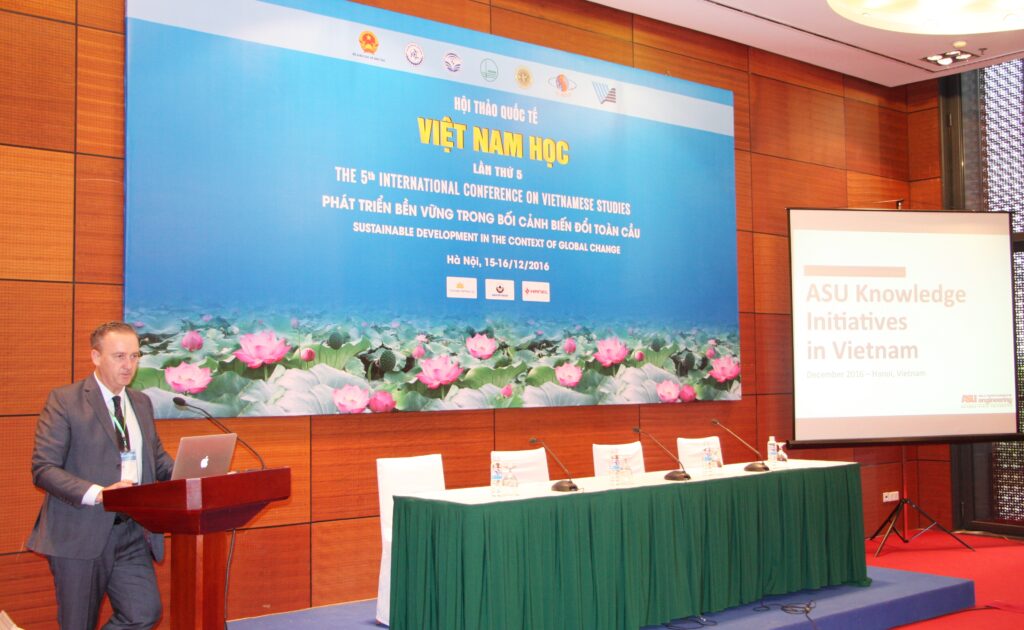 ĐHQGHN một trung tâm nghiên cứu và đào tạo đa ngành, có Viện Nghiên cứu Việt Nam học và Khoa Việt Nam học vào loại lớn nhất cả nước và mong muốn làm trung tâm kết nối và hỗ trợ và phát triển hoạt động nghiên cứu của mạng lưới các nhà Việt Nam học. “Chúng tôi cho rằng, không chỉ đợi tới các kỳ Hội thảo Việt Nam học lớn định kỳ 4 năm, các hội thảo quy mô nhỏ, chuyên ngành sâu, tọa đàm nhóm, trao đổi học giả thường xuyên cho các lĩnh vực của nghiên cứu Việt Nam học cũng là hết sức cần thiết. Hiện nay ĐHQGHN đang xúc tiến xây dựng Trung tâm tư liệu nghiên cứu Việt Nam học lớn của Việt Nam, đặt tại Hòa Lạc, chúng tôi rất mong các học giả trên toàn thế giới bằng hiểu biết, kinh nghiệm của mình hãy hỗ trợ thông tin, chỉ nguồn và trợ giúp cho chúng tôi trong việc khai thác, tập hợp. Tôi mong một ngày gần nhất Trung tâm đi vào hoạt động và sẽ thành nơi hội tụ thường xuyên của các nhà Việt Nam học trên toàn thế giới”, Giám đốc ĐHQGHN chia sẻ.