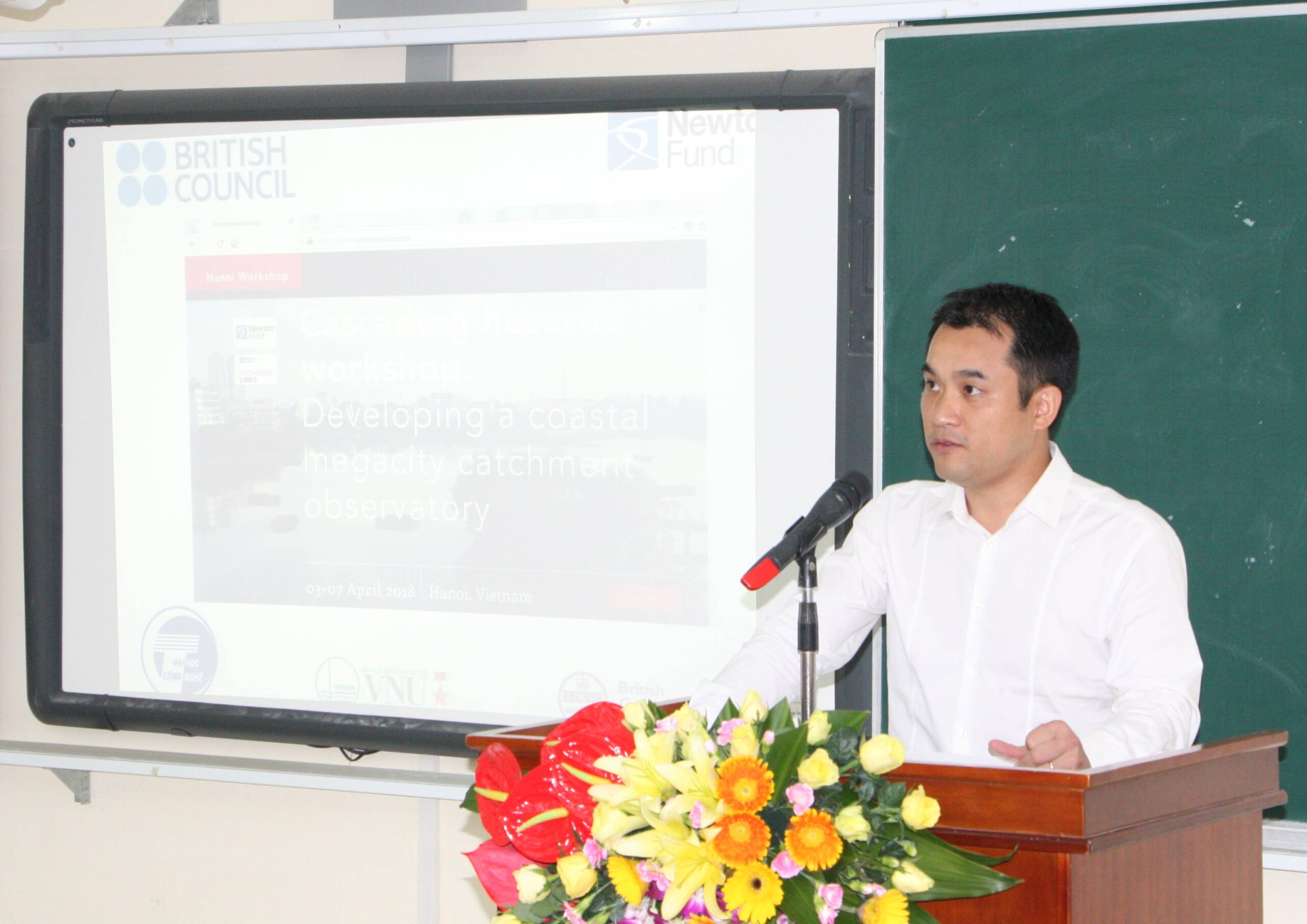 Hội thảo được tài trợ bởi chương trình Researcher Links, Quỹ Newton Fund, Hội đồng Anh với sự tham gia của 20 nhà khoa học Vương Quốc Anh đến từ Cục khảo sát địa chất Hoàng gia Anh, Đại học London, ĐH Liverpool, ĐH Hull, ĐH Dundee, ĐH Loughborough, ĐH Birmingham, ĐH Bournemouth, ĐH Southampton) và 20 nhà khoa học Việt Nam đến từ Trường Đại học Công nghệ ĐHQGHN, Trường Đại học Kinh tế ĐHQGHN, Trường Đại học Khoa học Tự nhiên ĐHQGHN, Trường Đại học Khoa học Xã hội Nhân văn ĐHQGHN, Tổng cục PCTT – Bộ TNMT, Trường Đại học Khoa học Tự nhiên ĐHQGHCM, Viện Khoa học Thủy lợi Việt Nam, Viện Địa chất khoáng sản Việt Nam, Trường ĐH Mỏ Địa chất Hà Nội, Trường Đại học Tài nguyên Môi trường Hà Nội, Viện Khoa học Khí tượng Thủy văn và Biến đổi Khí hậu, Trường ĐH Y tế Công cộng, Trung tâm dự báo khí tượng văn Trung ương.
