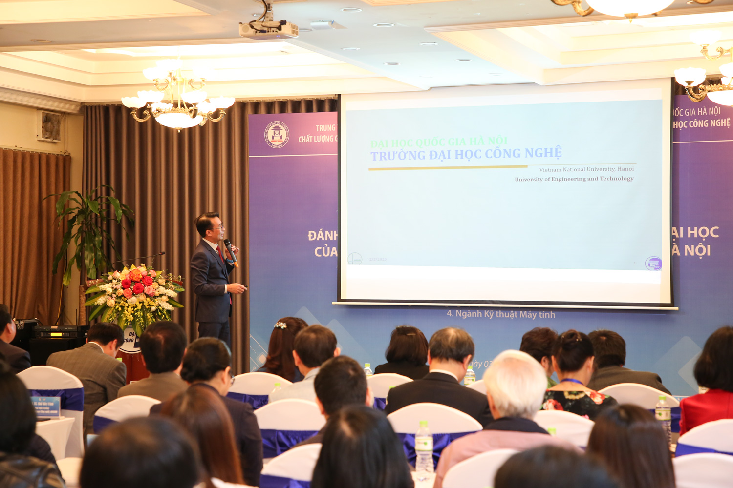 Tham dự phiên khai mạc về phía ĐHQGHN có PGS.TS. Nguyễn Anh Tuấn – Phó Trưởng ban Đào tạo, TS. Bùi Vũ Anh – Phó Viện trưởng Viện Đảm bảo chất lượng giáo dục, TS. Nguyễn Minh Trường – Phó Trưởng ban Chính trị và công tác HSSV, ThS. Nguyễn Văn Thắng – Phó Giám đốc Trung tâm Hỗ trợ sinh viên. Về phía Trường ĐH Công nghệ có GS.TS Nguyễn Hữu Đức – Nguyên Phó Giám đốc ĐHQGHN, Nguyên Hiệu trưởng, Chủ tịch Hội đồng Khoa học và đào tạo Trường; PGS.TS. Nguyễn Việt Hà – Bí thư Đảng uỷ, Hiệu trưởng; GS.TS. Chử Đức Trình – Phó Hiệu trưởng; TS. Nguyễn Anh Thái – Phó Hiệu trưởng; TS. Nguyễn Thu Hương – Phó Hiệu trưởng cùng lãnh đạo các khoa, phòng ban, trung tâm cùng các thành viên Hội đồng Tự đánh giá.