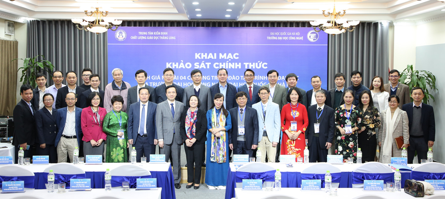 Sáng ngày 03/02/2023, tại Trường Đại học Công nghệ – Đại học Quốc gia Hà Nội đã diễn ra phiên khai mạc đợt khảo sát chính thức đánh giá ngoài 04 chương trình đào tạo trình độ đại học của Trường ĐH Công nghệ với Đoàn Đánh giá ngoài (ĐGN) đến từ Trung tâm Kiểm định chất lượng giáo dục (KĐCLGD) Thăng Long.
