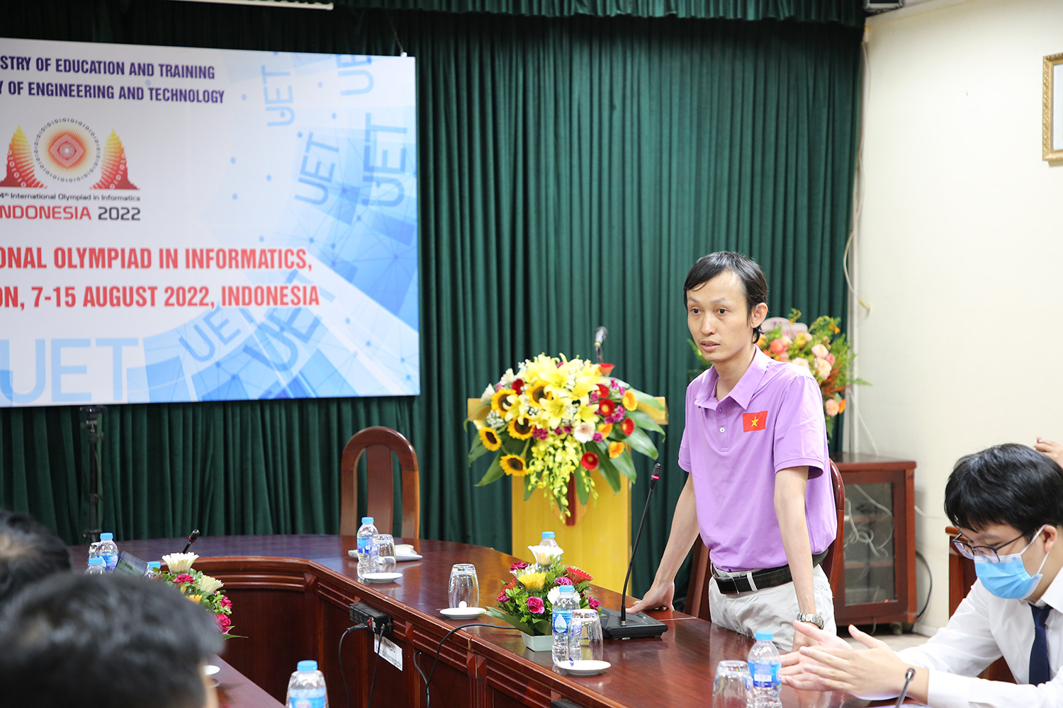 Năm 2022, đoàn học sinh Việt Nam dự thi IOI gồm 4 thí sinh, các thí sinh được tập huấn tại Trường ĐHCN từ ngày 9/7/2022 dưới sự hướng dẫn các thầy cô, các cựu sinh viên, sinh viên của Trường ĐH Công nghệ có kinh nghiệm tham gia cuộc thi quốc tế về tin học như IOI, ACM/ICPC.