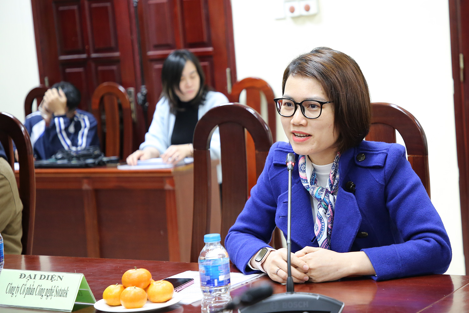 Phát biểu tại buổi lễ, bà Lê Minh Hương – Giám đốc nhân sự Công ty Cổ phần Công nghệ Sotatek cảm thấy rất vui mừng khi được đại diện cho doanh nghiệp góp phần nhỏ bé vào sự ấm áp của sinh viên mỗi mùa Tết đến. Những phần quà này sẽ có giá trị tinh thần động viên và khích lệ sinh viên, mong sinh viên luôn có tinh thần nỗ lực và tích cực trong mọi hoàn cảnh cuộc sống. Từ đó đạt nhiều thành tích trong quá trình học tập và nghề nghiệp tương lai. Với sự phát triển về quy mô, Công ty luôn sẵn sàng tiếp nhận và tuyển dụng sinh viên của Trường ĐH Công nghệ thực tập và làm việc.