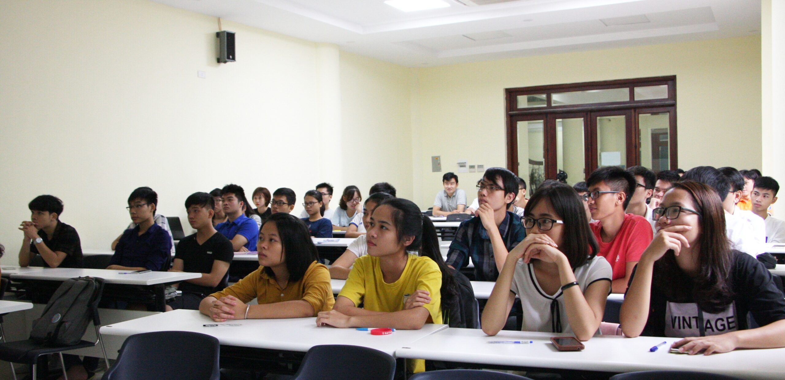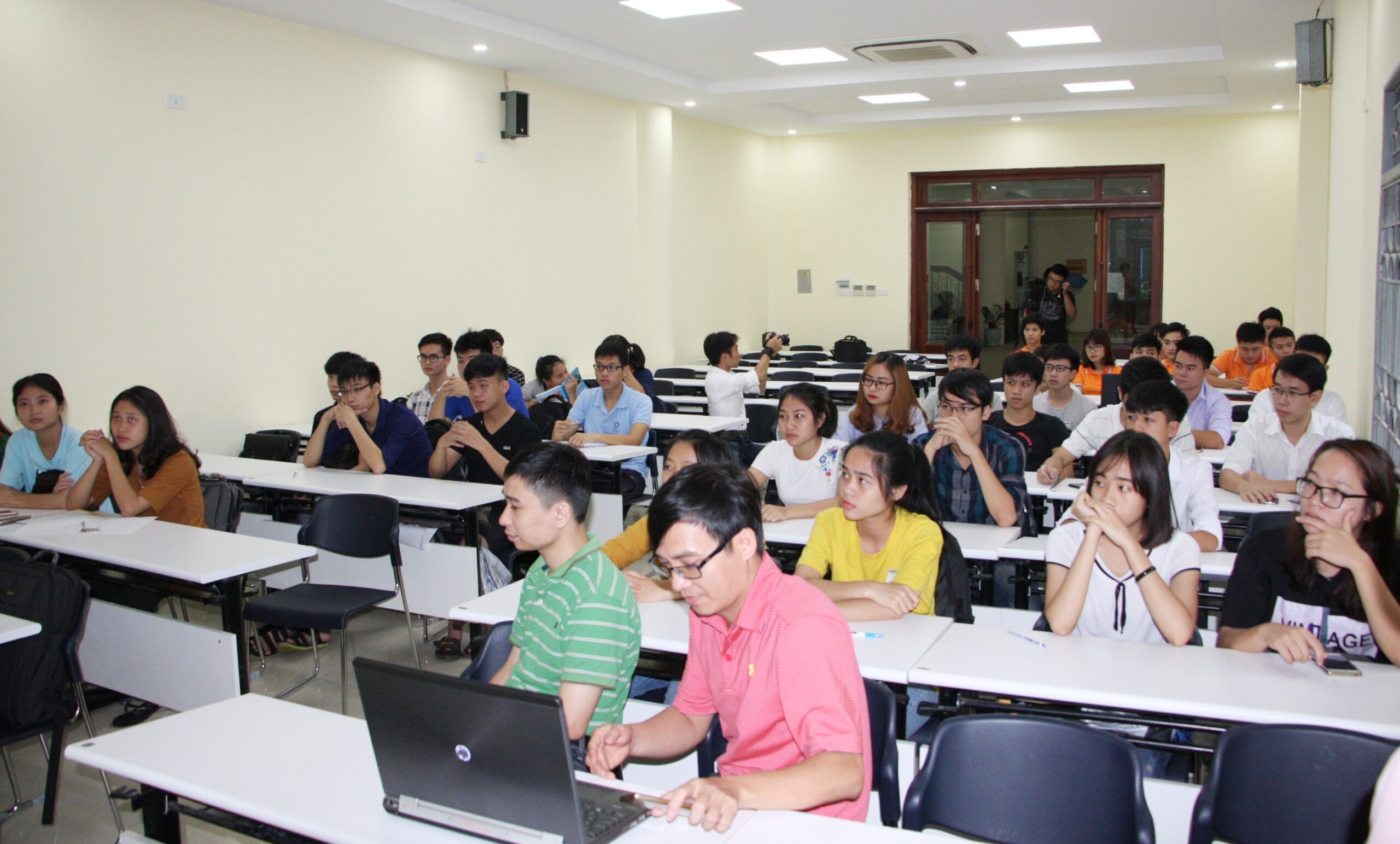 Ngay sau khai giảng, sinh viên đã hào hứng tham gia bài giảng tổng quan về hệ thống robot di động do ThS Phạm Duy Hưng giảng dạy và bắt tay vào tìm hiểu, phân tích, thiết kế robot di động.Đại diện sinh viên K62 cho biết, Ban đầu khi chưa quen với một số thuật ngữ chuyên ngành nên em thấy khó hiểu, nhưng càng về sau em thấy dễ hiểu và yêu thích hơn. Em rất muốn được lắp rắp thành công một robot hoàn chỉnh, nhưng em nghĩ là làm được điều này rất khó và em chưa bao giờ tưởng tượng rằng bản thân sẽ tự tay lắp ráp, lập trình được nó. Nhưng khóa học này sẽ giúp em làm được điều mình thích và tự tin hơn. Biết đâu trong tương lai em sẽ nghĩ đến việc trở thành một kỹ sư thiết kế robot.