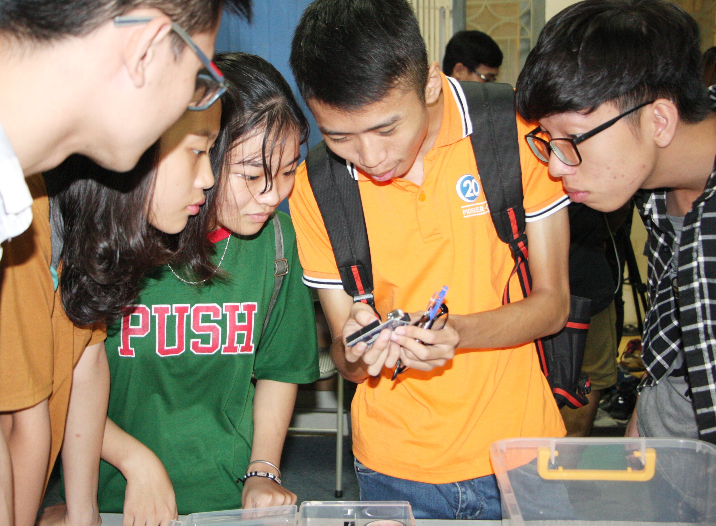 Các sinh viên bắt đầu tìm hiểu từng linh kiện tại phòng thí nghiệm của khoa