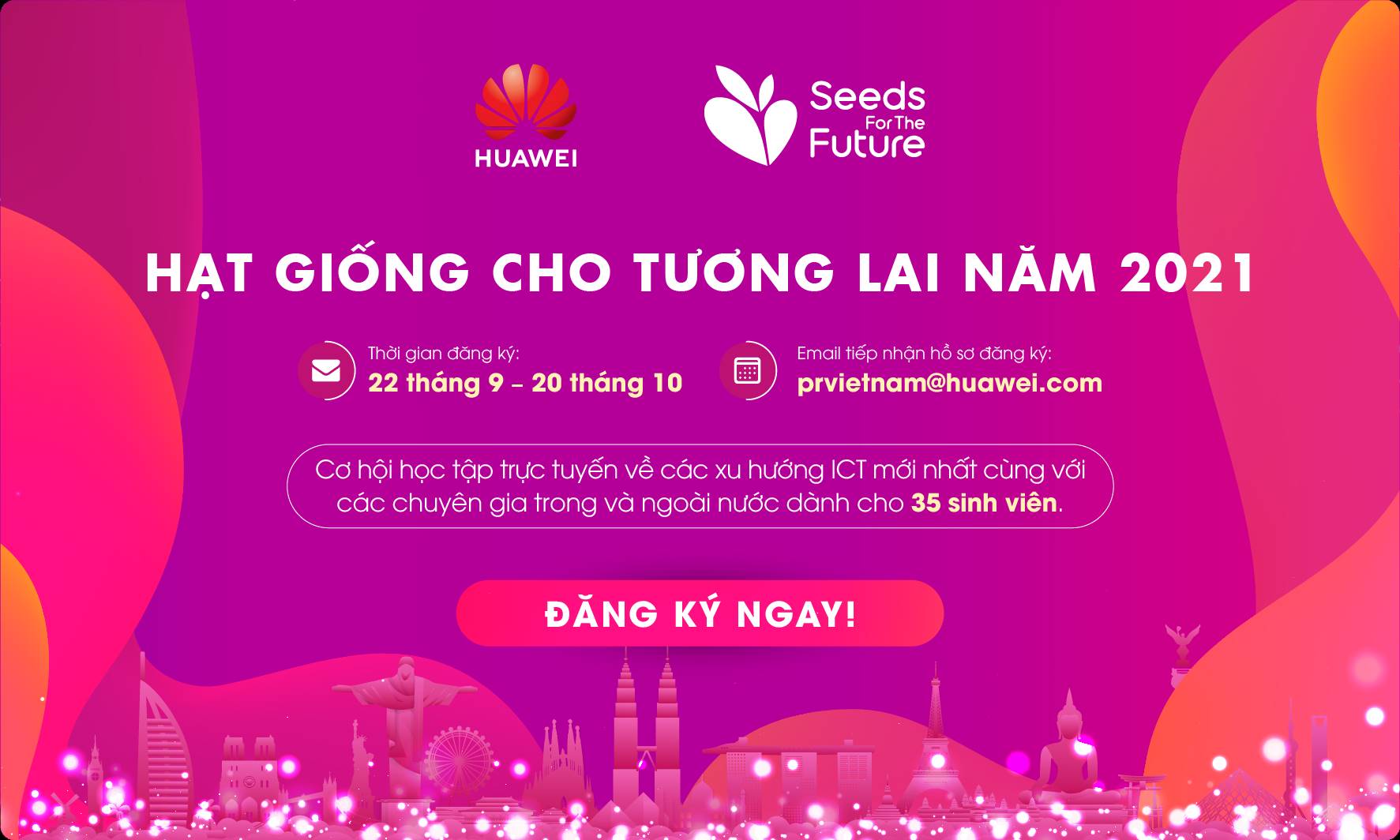 Một chương trình đào tạo ICT cực kỳ thú vị và đa dạng, cung cấp cho các bạn sinh viên môi trường học tập đa văn hóa. Huawei đã sẵn sàng chào đón 35 bạn cùng tham gia chương trình năm 2021.