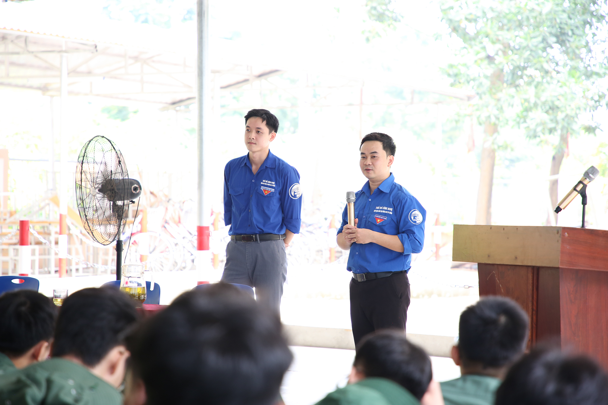 TS. Trần Cường Hưng (bên phải) – Bí thư Đoàn Thanh niên và ThS. Phan Hoàng Anh (bên trái) – Chủ tịch Hội Sinh viên chia sẻ về chương trình hoạt động, cơ cấu tổ chức của Đoàn – Hội.
