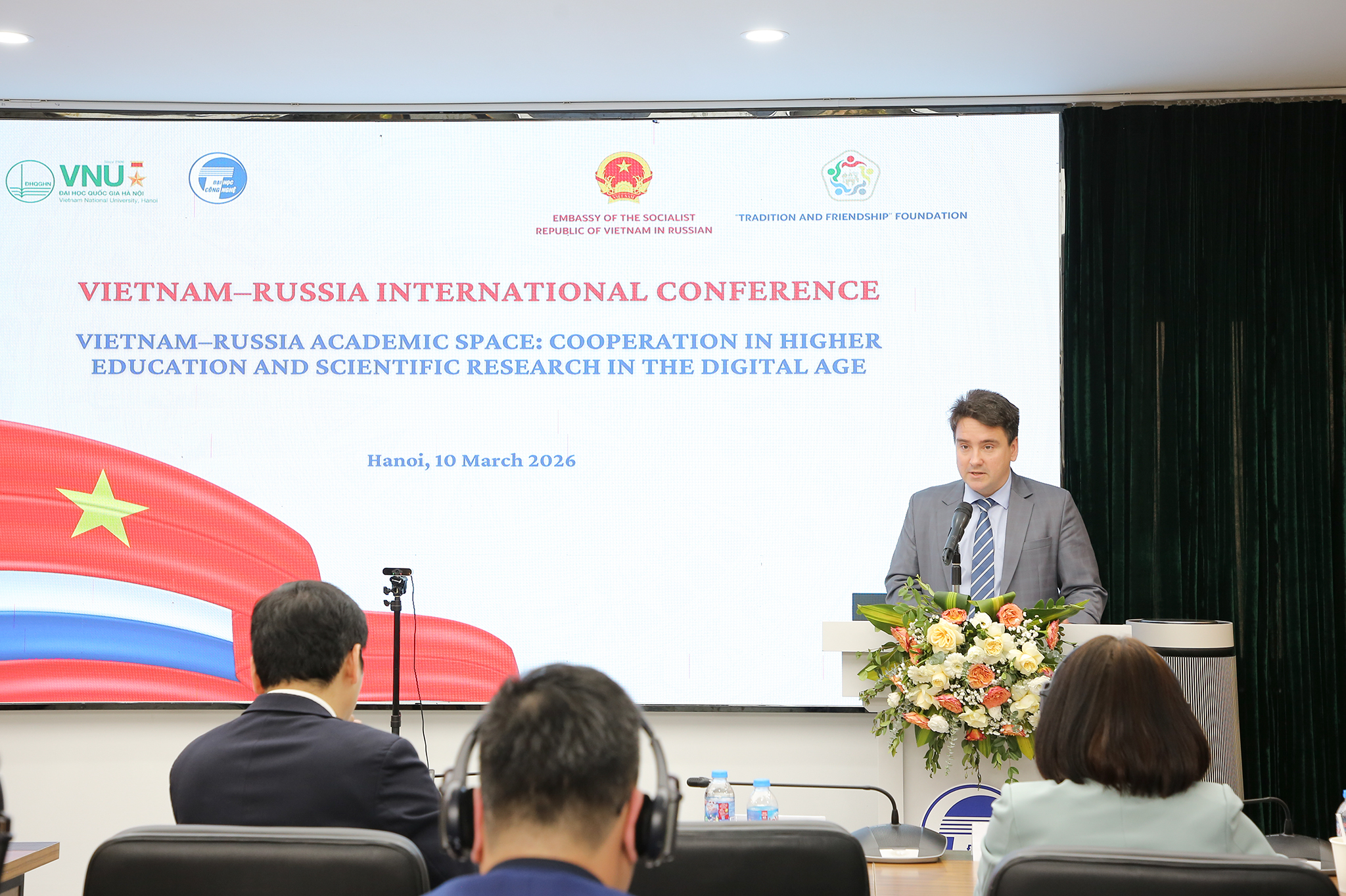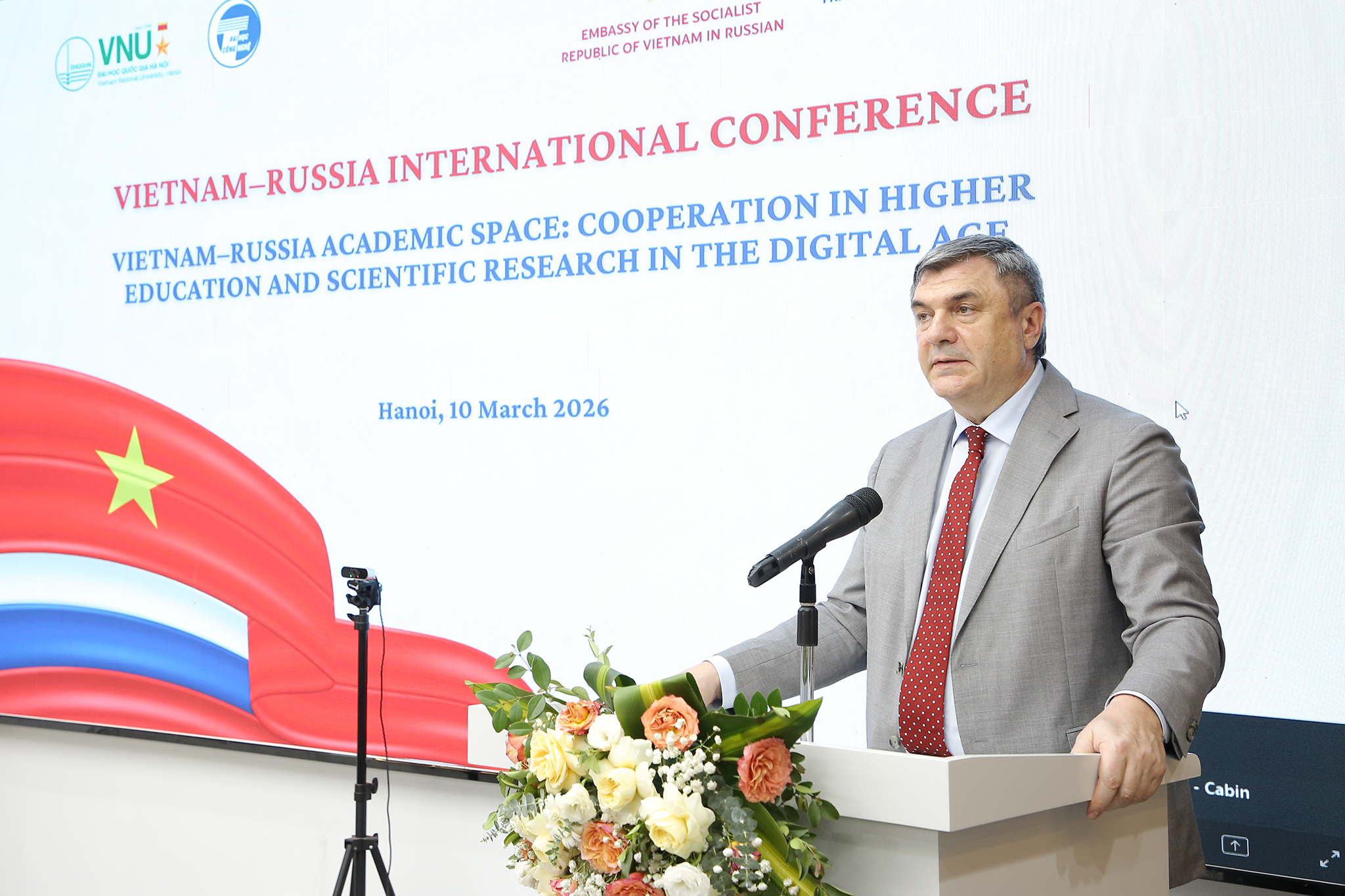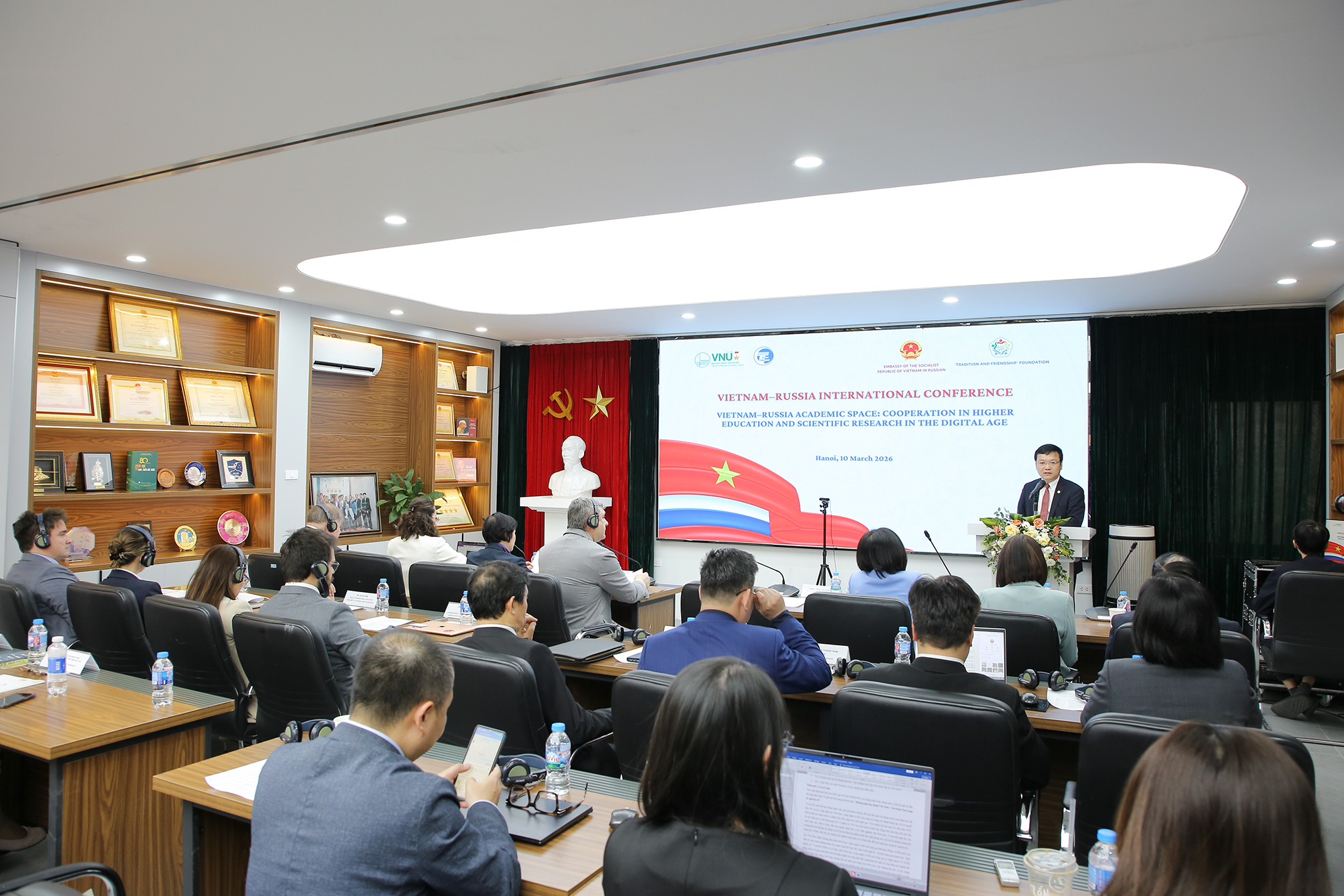 Nhân dịp Năm Khoa học và Giáo dục Việt Nam – Liên bang Nga, hội thảo quốc tế với chủ đề “Không gian học thuật Việt Nam – Liên bang Nga: Hợp tác giáo dục đại học và nghiên cứu khoa học trong kỷ nguyên số”, đã được Đại học Quốc gia Hà Nội đăng cai tổ chức tại Trường Đại học Công nghệ ngày 10/03/2026, theo hình thức trực tiếp kết hợp trực tuyến. Sự kiện là diễn đàn quan trọng nhằm tăng cường kết nối học thuật, thúc đẩy hợp tác đào tạo và nghiên cứu khoa học giữa các cơ sở giáo dục hai nước trong bối cảnh chuyển đổi số