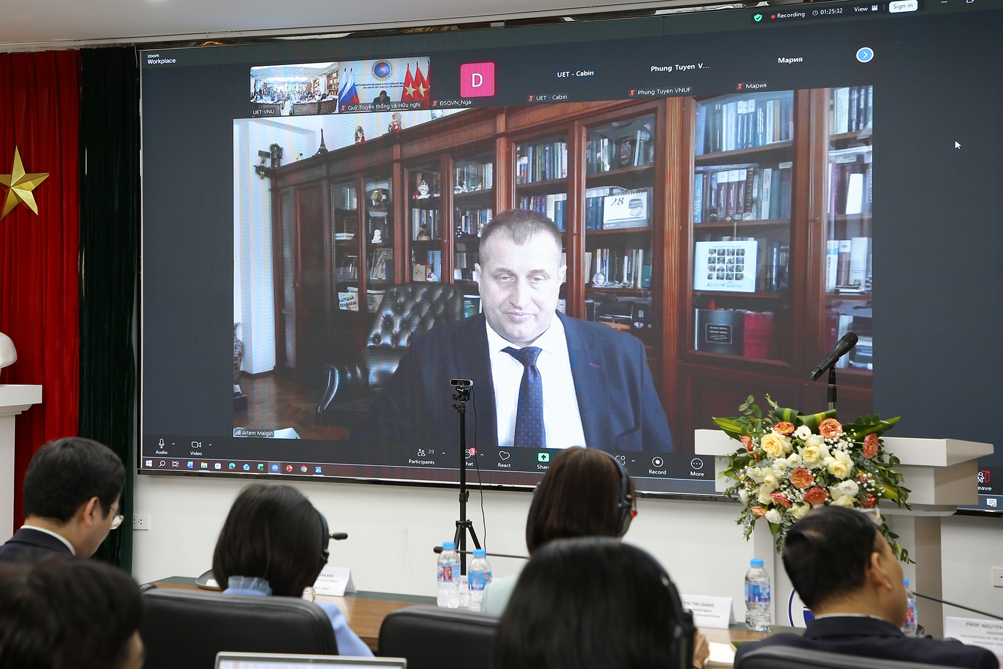 Phát biểu tại hội thảo, Trưởng ban Hợp tác và Phát triển ĐHQGHN Lê Tuấn Anh khẳng định Liên bang Nga là đối tác chiến lược quan trọng, với hơn 20 trường đại học và viện nghiên cứu đang hợp tác với ĐHQGHN trong đào tạo, nghiên cứu khoa học, trao đổi học giả và sinh viên. Hoạt động hợp tác được mở rộng sang các lĩnh vực then chốt như AI, công nghệ lượng tử, vật liệu tiên tiến, công nghệ hàng không vũ trụ, công nghệ sinh học và hệ thống công nghệ số. Các chương trình học thuật và hội thảo quốc tế gần đây đã thu hút hàng trăm nhà khoa học, giảng viên tham gia trực tiếp và trực tuyến, minh chứng cho sự phát triển mạnh mẽ của không gian hợp tác học thuật Việt – Nga.