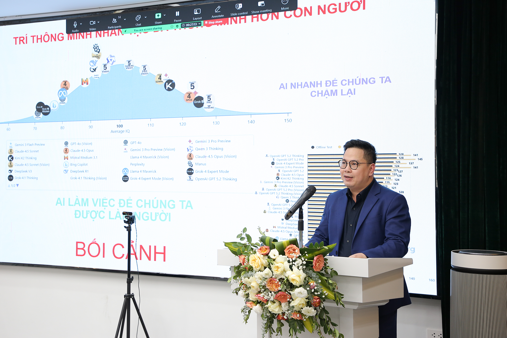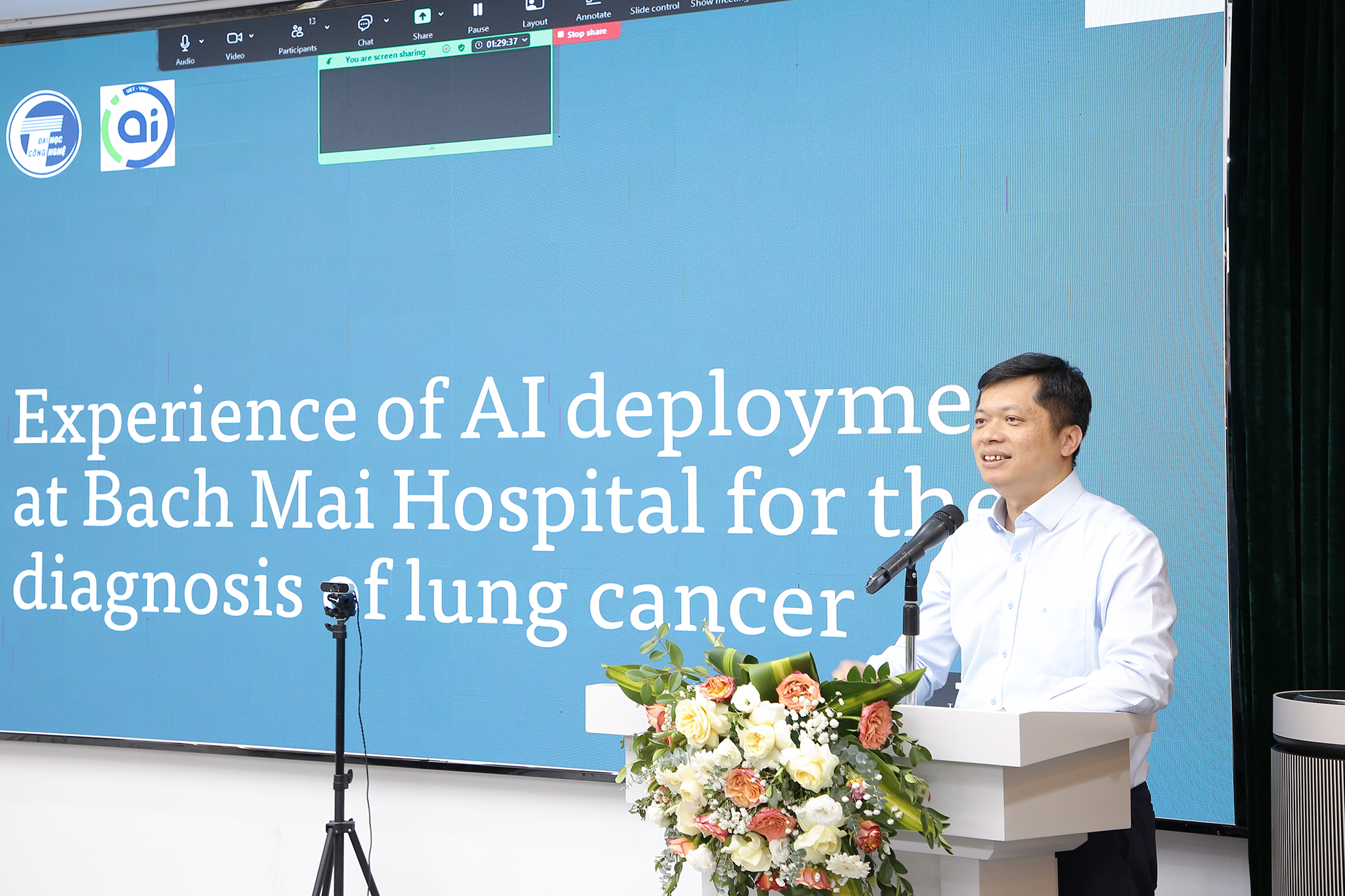 TS. Trần Quốc Long – Viện trưởng Viện Trí tuệ nhân tạo, Trường ĐH Công nghệ đã trình bày tham luận “Kinh nghiệm triển khai AI tại Bệnh viện Bạch Mai trong chẩn đoán ung thư phổi”