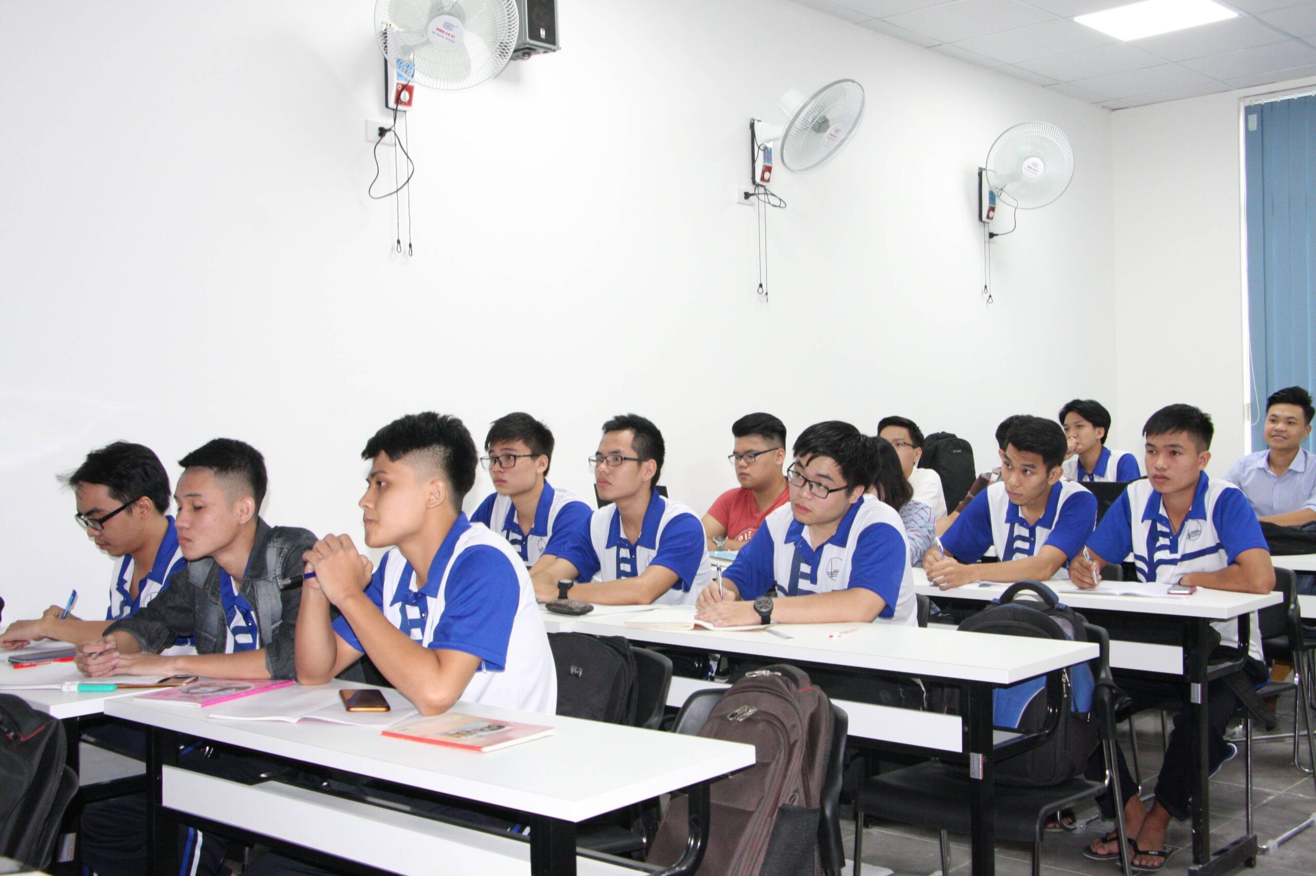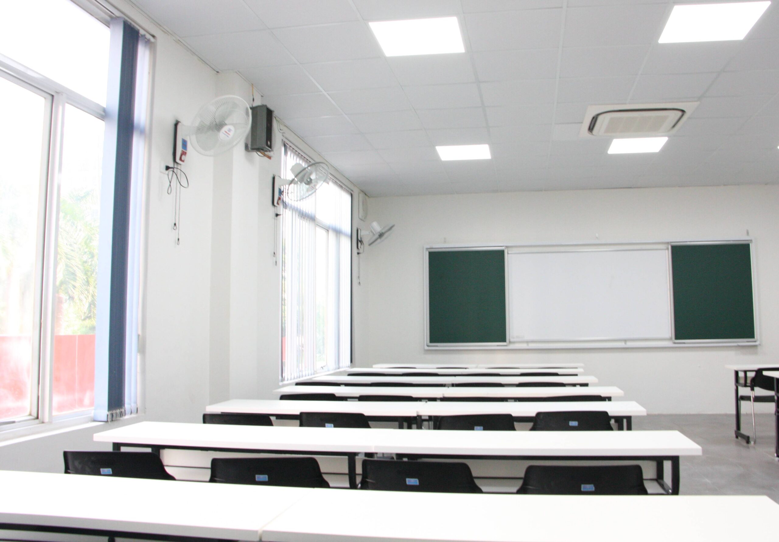 Khu giảng đường có diện tích 1300 m2 gồm 15 phòng học có sức chứa từ 40-60 chỗ ngồi, đáp ứng quy mô 700 sinh viên/ca học. Các phòng học được thiết kế, đầu tư mới đồng bộ, hiện đại đáp ứng tiêu chuẩn chất lượng cao: hệ thống điều hòa trung tâm; hệ thống cửa kính cách âm và cách nhiệt để đảm bảo môi trường học tập yên tĩnh; hệ thống đèn LED chiếu sáng; các lớp học được trang bị máy chiếu, bảng trượt hai lớp và bàn ghế mới.