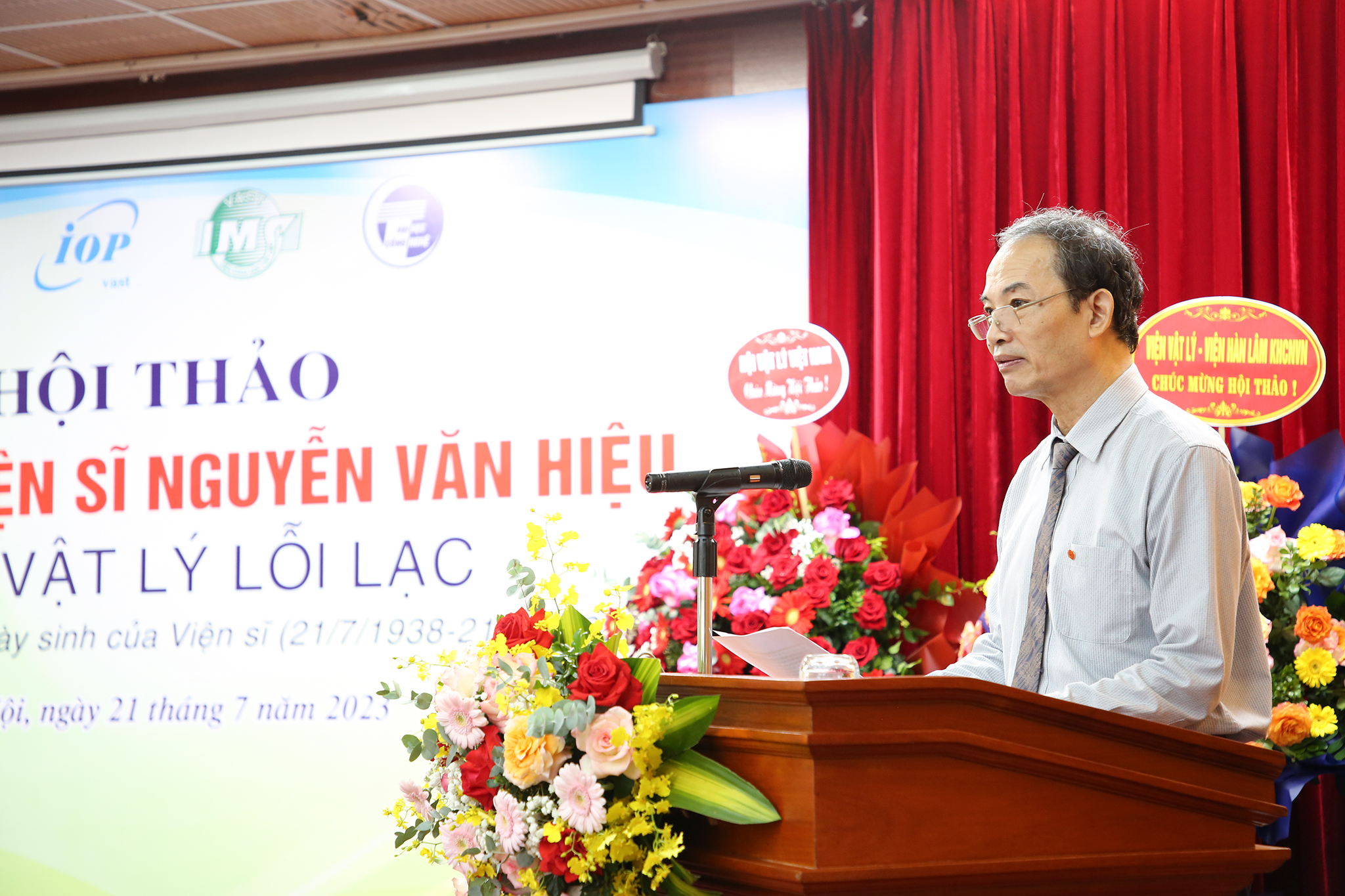 Phát biểu khai mạc GS. TS. Nguyễn Đại Hưng – Chủ tịch Hội Vật lý Việt Nam, Trưởng ban tổ chức hội thảo đã tóm tắt quá trình học tập, nghiên cứu và làm việc cùng những giải thưởng và thành tích của GS. VS. Nguyễn Văn Hiệu từ năm 1954 đến ngày GS.VS. Nguyễn Văn Hiệu qua đời. GS. TS. Nguyễn Đại Hưng khẳng định: “GS.VS. Nguyễn Văn Hiệu là một nhà vật lý xuất chúng đã được Nhà nước Liên Xô tặng Giải thưởng Lê nin năm 1986 và Nhà nước Việt Nam tặng Giải thưởng Hồ Chí Minh về Khoa học và kỹ thuật năm 1996. Đây là những giải thưởng danh giá nhất của Liên Xô và Việt Nam cho những thành tích nghiên cứu khoa học công nghệ. Với tài năng xuất chúng, năng lực làm việc phi thường và sự nghiệp khoa học đồ sộ của GS.VS. Nguyễn Văn Hiệu đã trở thành niềm kiêu hãnh, cổ vũ, động viên và tấm gương cho mỗi chúng ta trong cộng đồng nhà khoa học Việt Nam”.