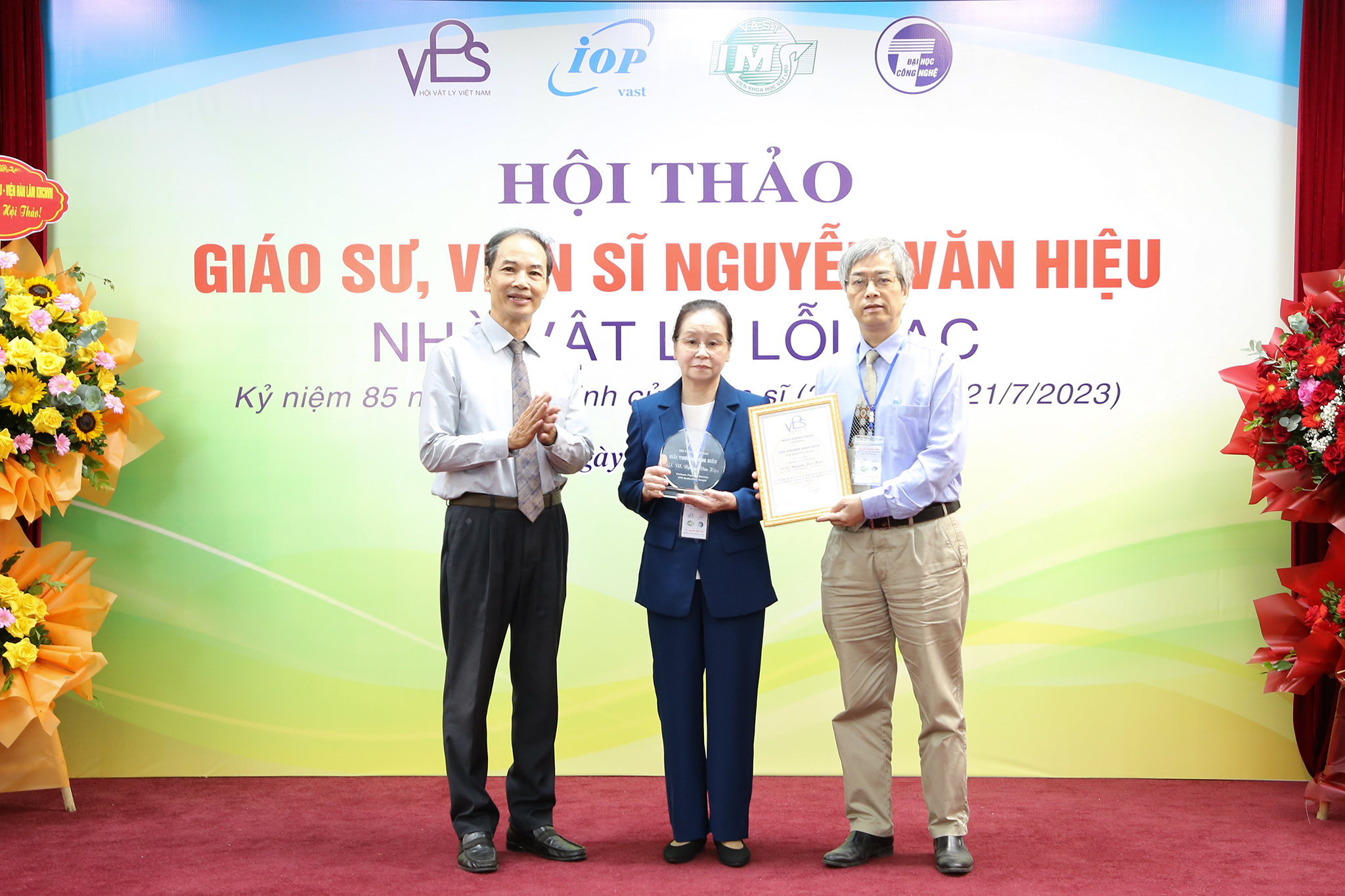 Tại hội thảo, Hội Vật lý Việt Nam đã truy tặng Giải thưởng cống hiến dành cho GS.VS. Nguyễn Văn Hiệu nhằm ghi nhận, tôn vinh những đóng góp của Giáo sư dành cho lĩnh vực Vật lý nói riêng và khoa học công nghệ nói chung. Bên cạnh giải thưởng, Hội Vật lý Việt Nam đã phối hợp với các nhà khoa học, các đơn vị, địa phương trong đó có Trường ĐH Công nghệ để tổ chức sưu tầm tư liệu, biên soạn, xuất bản cuốn sách “GS.VS. Nguyễn Văn Hiệu – Nhà Vật lý lỗi lạc”. Cuốn sách là tập hợp những bài viết của các nhà khoa học, đồng nghiệp, học trò đặc biệt là những bài viết của nhà báo có cơ hội được tâm sự, trao đổi với Giáo sư. Nội dung cuốn sách có giá trị tư liệu và sinh động về các hoạt động đa dạng của GS.VS. Nguyễn Văn Hiệu trên các lĩnh vực nghiên cứu khoa học, giáo dục đào tạo, hợp tác quốc tế, thúc đẩy triển khai ứng dụng nghiên cứu khoa học… GS. TS. Nguyễn Đại Hưng mong muốn: “Cuốn sách như một nén tâm hương của đồng nghiệp, bàn bè và học trò tưởng nhớ, tri ân GS.VS. Nguyễn Văn Hiệu”.