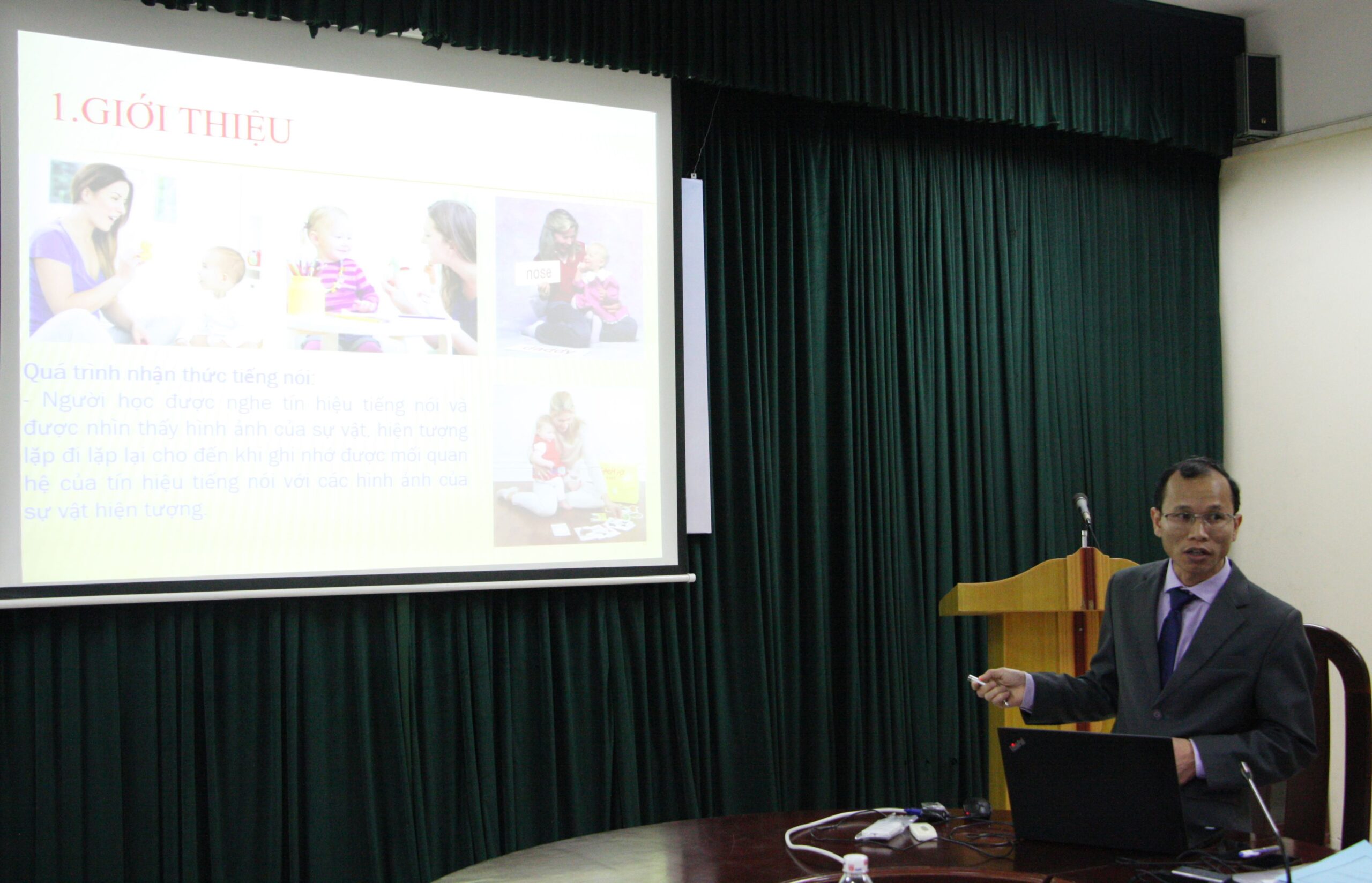 Tại lễ bảo vệ, NCS Nguyễn Quang Trung đã trình bày lý thuyết và kết quả nghiên cứu của luận án. Đề tài tập trung mô phỏng cơ chế nhận thức của con người thông qua liên kết thông tin thu được từ các giác quan khác nhau và xây dựng nên mối quan hệ thông tin giữa các đặc trưng thu được từ các giác quan này. Kết quả đạt được của luận án tập trung vào nội dung đề xuất sử dụng đặc trưng SIFT được trích chọn từ phổ tần số của tín hiệu tiếng nói; mô hình mạng tích chập dựa trên phổ tần số của tiếng nói cho bài toán nhận thức tiếng nói trong mối liên hệ giữa tín hiệu tiếng nói với khái niệm được định nghĩa trước; cải tiến hiệu năng của mô hình thông qua việc đề xuất phương pháp rút gọn dữ liệu.