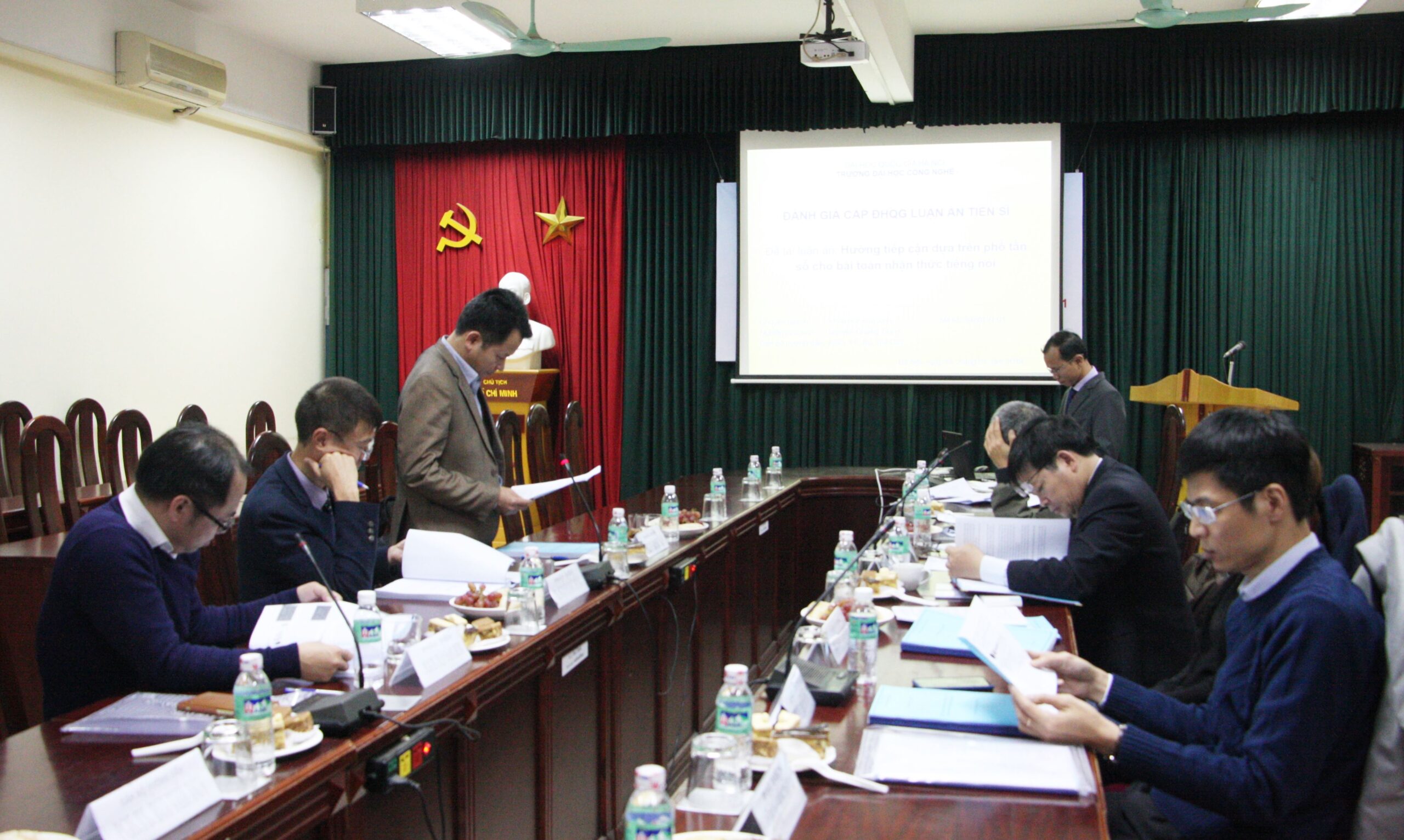 Hội đồng cấp ĐHQG chấm luận án tiến sĩ gồm GS.TS. Nguyễn Thanh Thủy – Trường Đại học Công nghệ, Chủ tịch Hội đồng; TS. Nguyễn Văn Vinh – Trường Đại học Công nghệ, Thư ký Hội đồng; Các phản biện gồm TS. Nguyễn Đức Dũng – Viện Công nghệ thông tin (Viện Hàn lâm KH&CN Việt Nam), PGS.TS. Trần Đăng Hưng – Trường Đại học Sư phạm Hà Nội, PGS.TS. Bùi Thu Lâm – Học viện Kỹ thuật quân sự; Các ủy viên gồm PGS. TS. Từ Minh Phương – Học viện Công nghệ bưu chính viễn thông, PGS.TS. Nguyễn Thị Nhật Thanh – Trường Đại học Công nghệ.