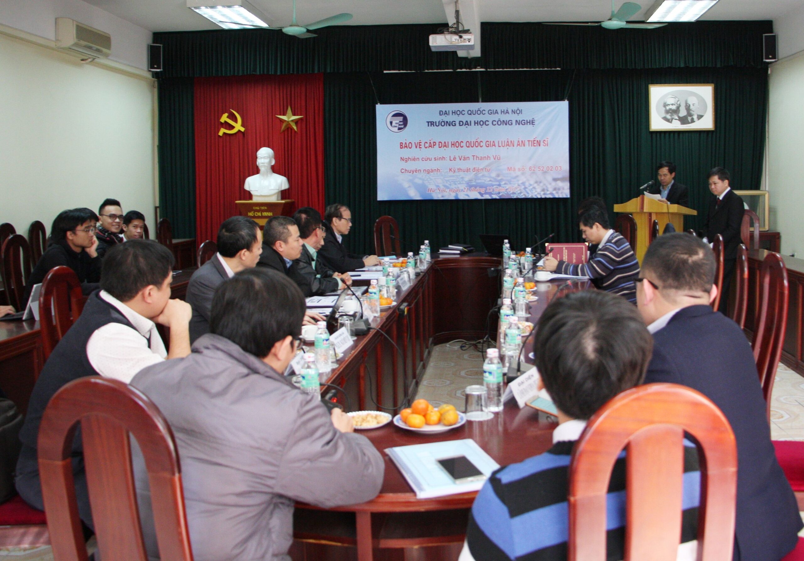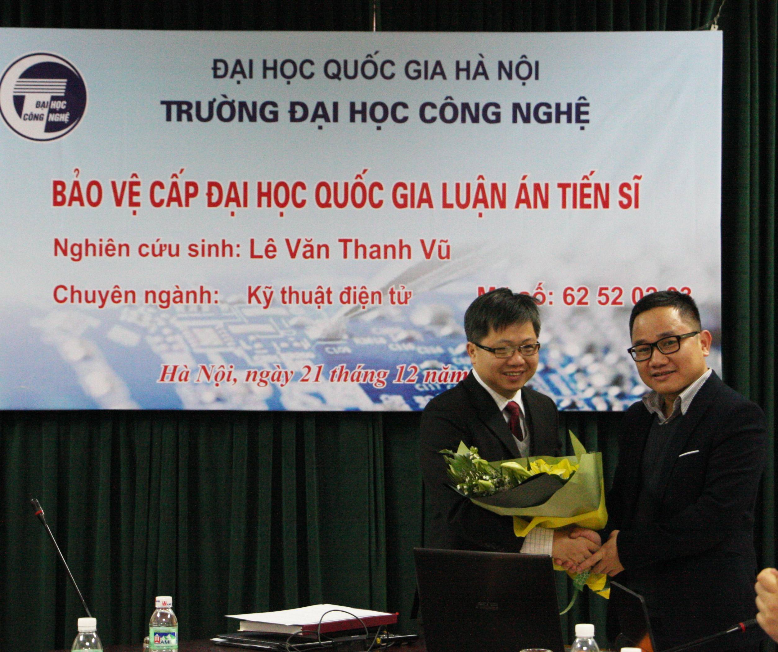 Kết thúc buổi chấm luận án tiến sĩ của NCS Lê Văn Thanh Vũ, Hội đồng đã kết luận: Luận án của NCS Lê Văn Thanh Vũ đã đáp ứng được các yêu cầu của một luận án Tiến sĩ chuyên ngành Kỹ thuật điện tử. Đề nghị Đại học Quốc gia Hà Nội xem xét cấp bằng Tiến sĩ cho NCS Lê Văn Thanh Vũ.