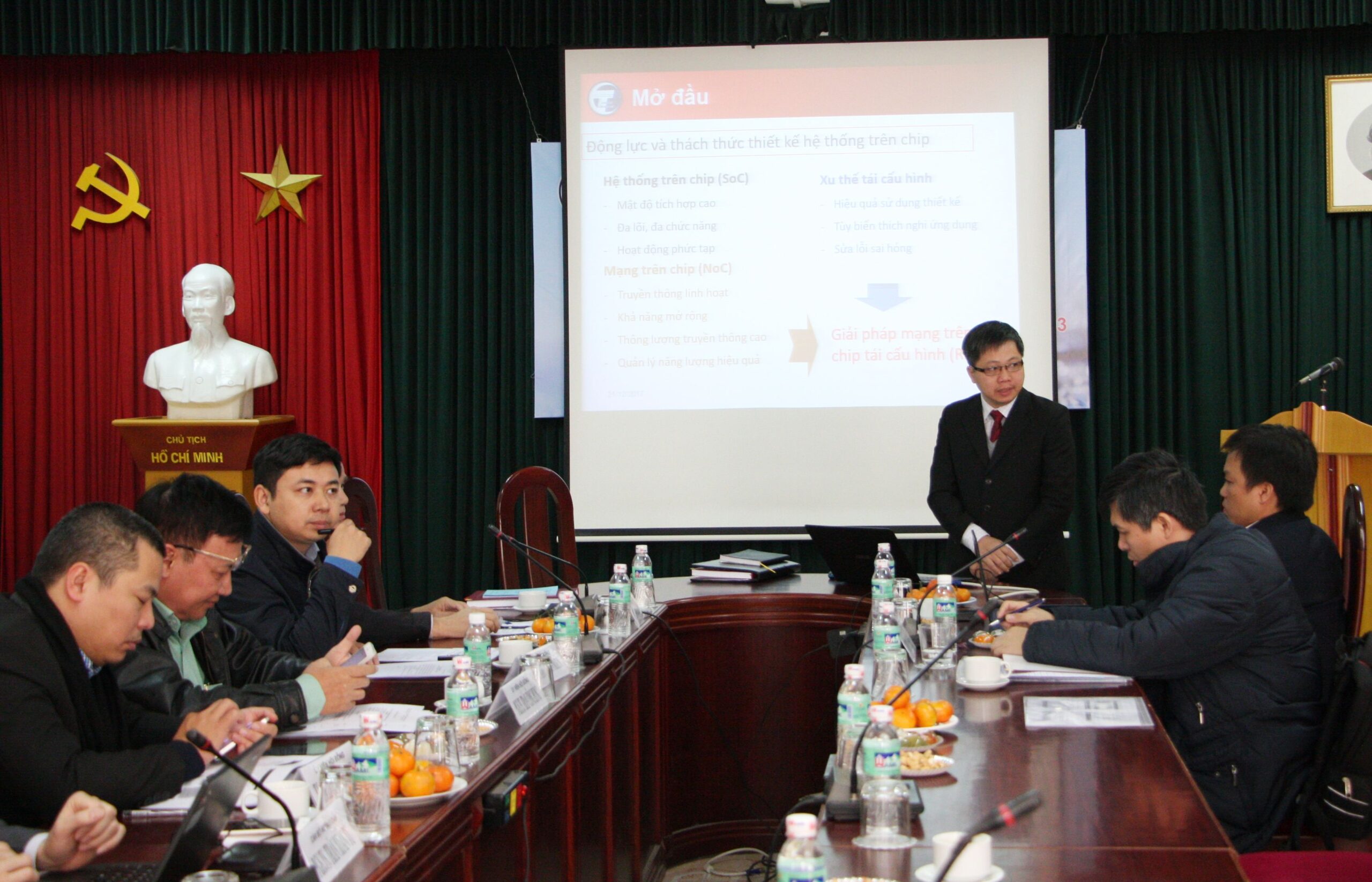 Tại lễ bảo vệ, NCS Lê Văn Thanh vũ đã trình bày lý thuyết và kết quả nghiên cứu của luận án. Trong luận án này, tác giả đã giải quyết bài toán truyền thông trên chip các các hệ thống phức hợp cần được xem xét một cách có hệ thống và có trọng tâm để cùng hướng đến giải pháp toàn diện. Xuyên suốt quá trình nghiên cứu thực hiện luận án, các vấn đề truyền thông mạng trên chip được tổng hợp và sắp xếp để tạo cơ sở lý thuyết. Kết quả đạt được của luận án tập trung vào ba nội dung chính sau: