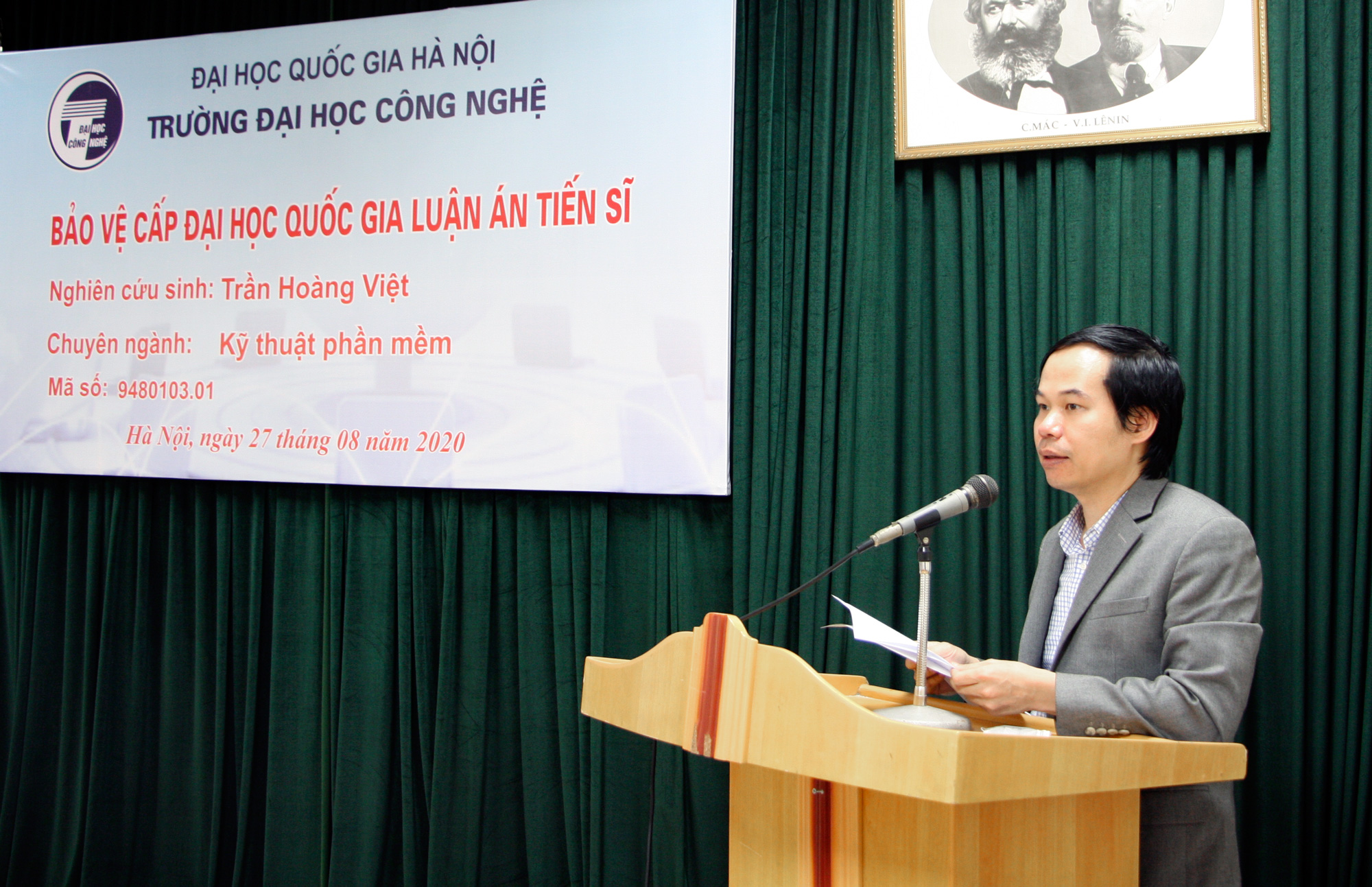 Chiều ngày 27/08/2020, tại Trường Đại học Công nghệ đã diễn ra Lễ bảo vệ luận án Tiến sĩ chuyên ngành Kỹ thuật phần mềm của nghiên cứu sinh Trần Hoàng Việt, với đề tài “Một số cải tiến phương pháp kiểm chứng giả định – đảm bảo cho phần mềm dựa trên thành phần”. Luận án được thực hiện dưới sự hướng dẫn khoa học của PGS.TS. Phạm Ngọc Hùng và TS. Võ Đình Hiếu.