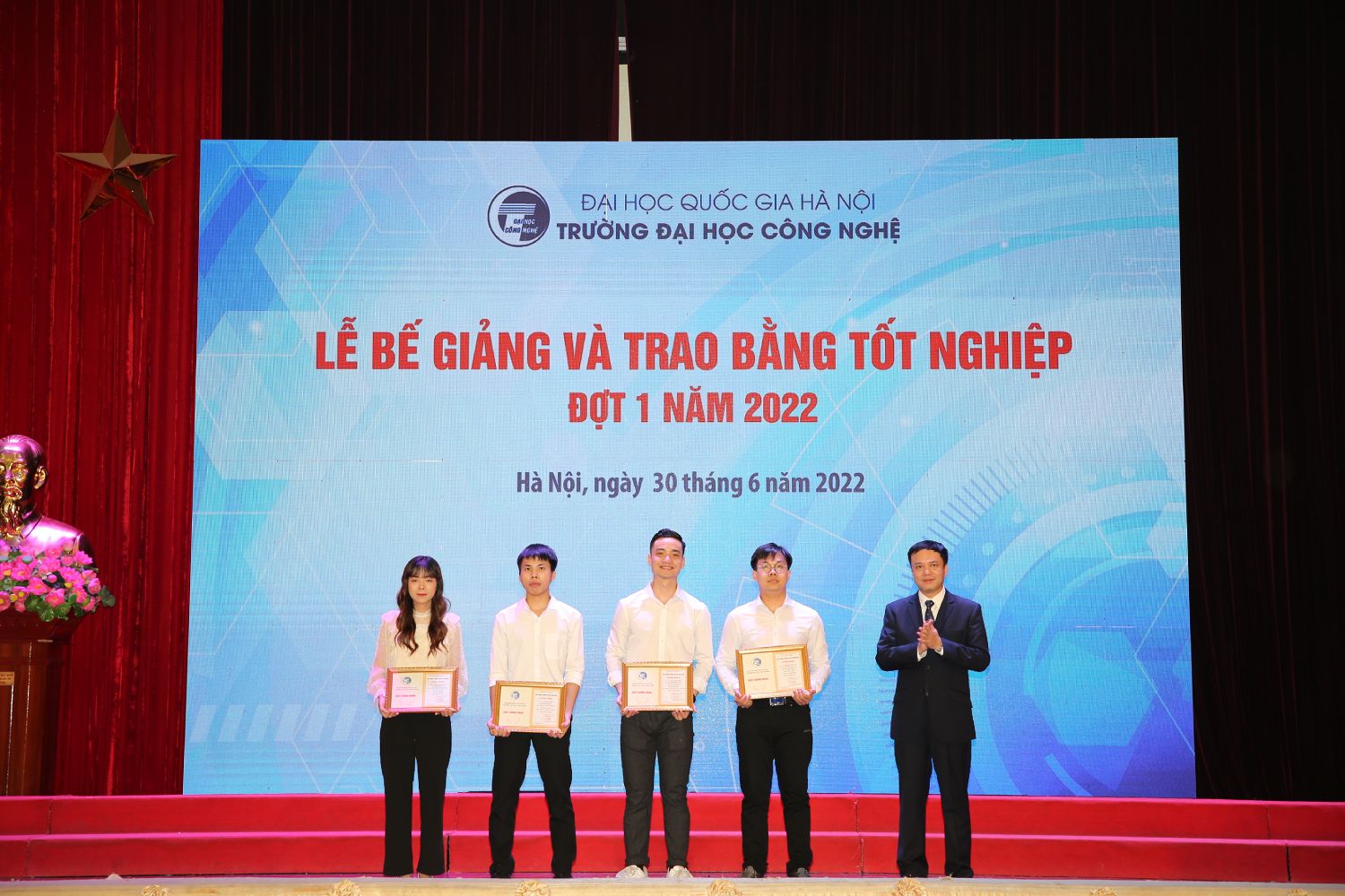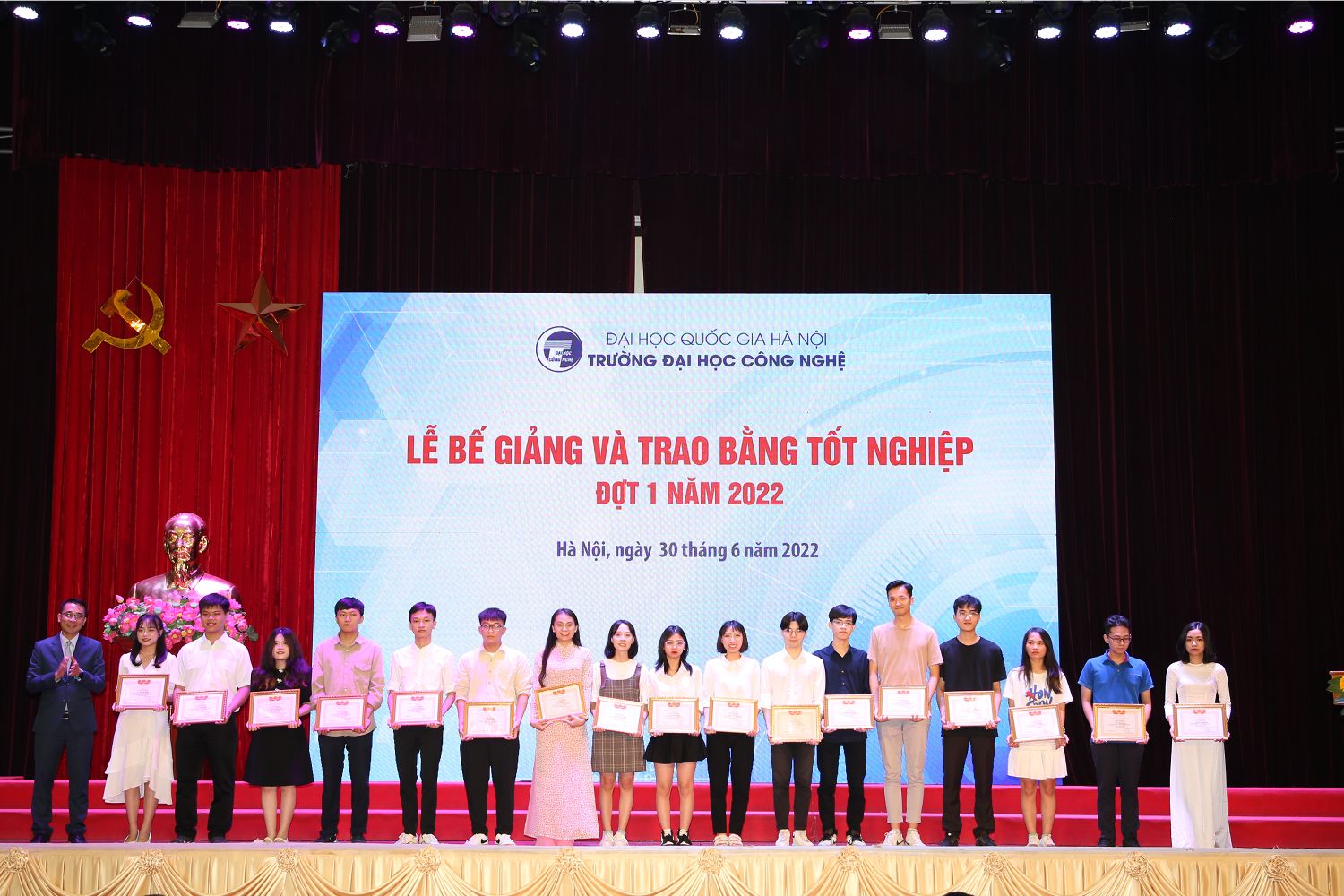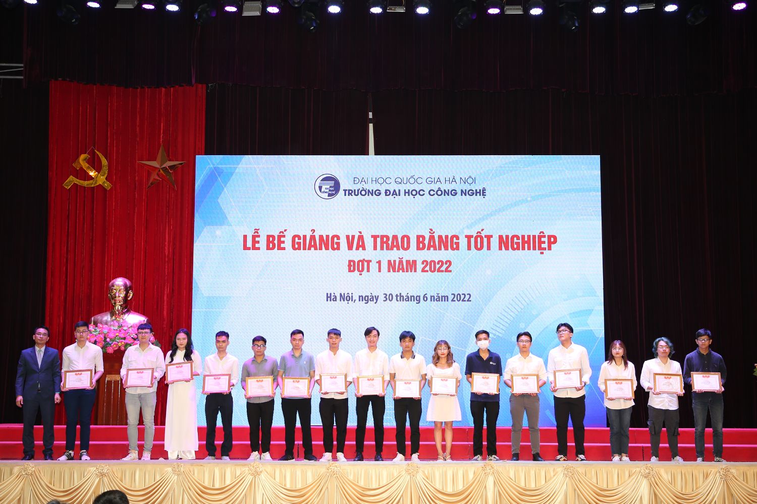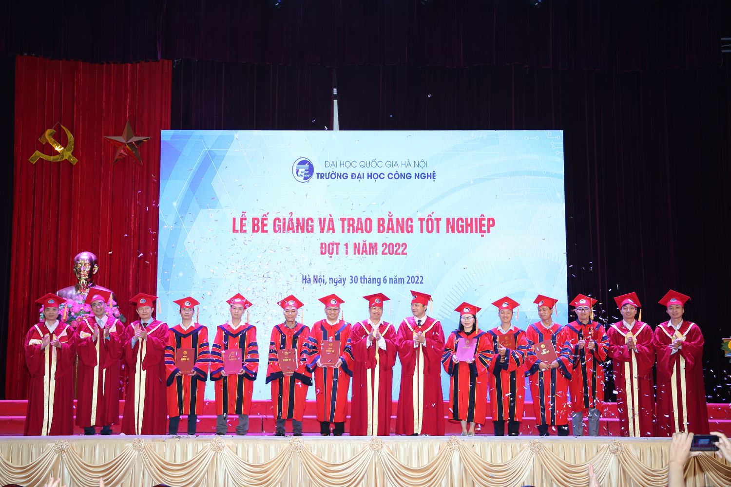 Ngày 30/6/2022, sau một thời gian dài ảnh hưởng bởi dịch Covid-19, Trường Đại học Công nghệ – Đại học Quốc gia Hà Nội đã long trọng tổ chức Lễ bễ giảng và trao bằng tốt nghiệp đợt 1 năm 2022 tại Hội trường Nguyễn Văn Đạo.