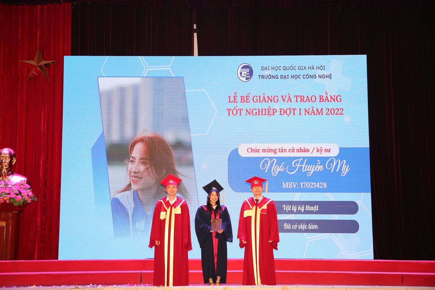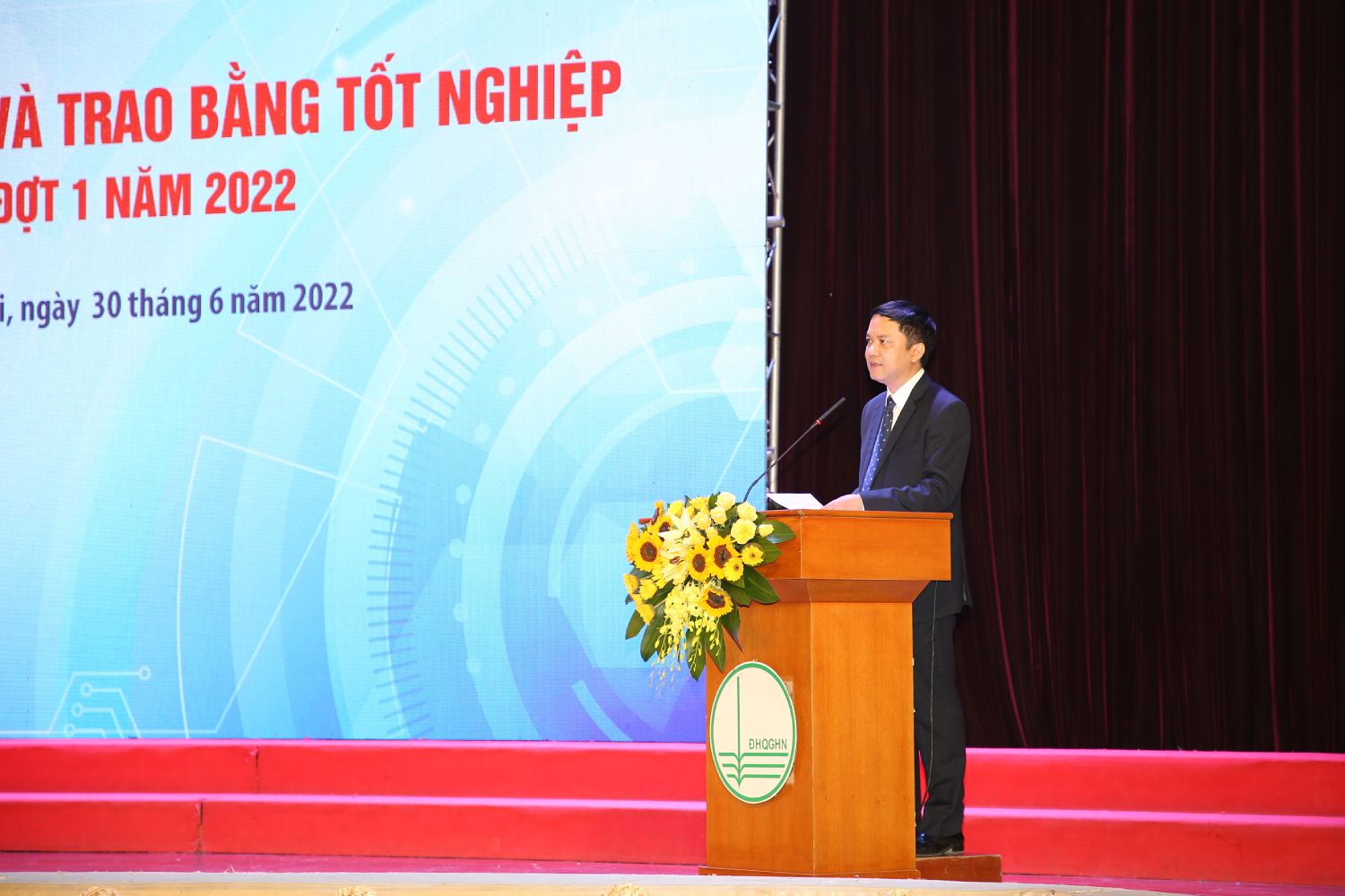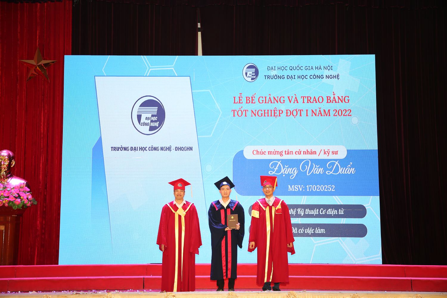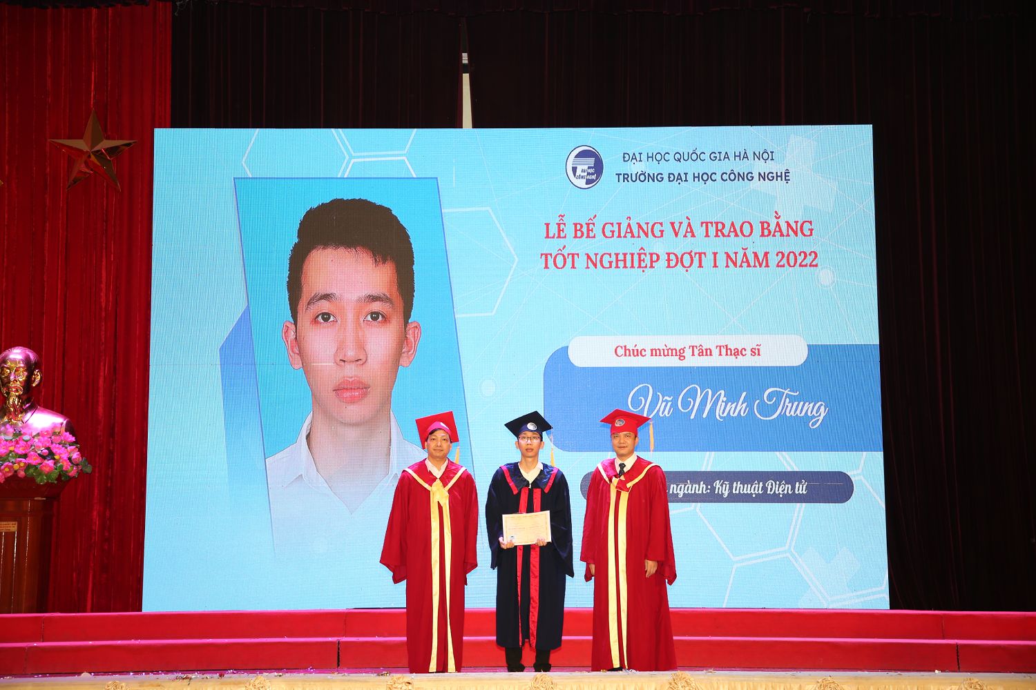 Ngày 30/6/2022, sau một thời gian dài ảnh hưởng bởi dịch Covid-19, Trường Đại học Công nghệ – Đại học Quốc gia Hà Nội đã long trọng tổ chức Lễ bễ giảng và trao bằng tốt nghiệp đợt 1 năm 2022 tại Hội trường Nguyễn Văn Đạo.