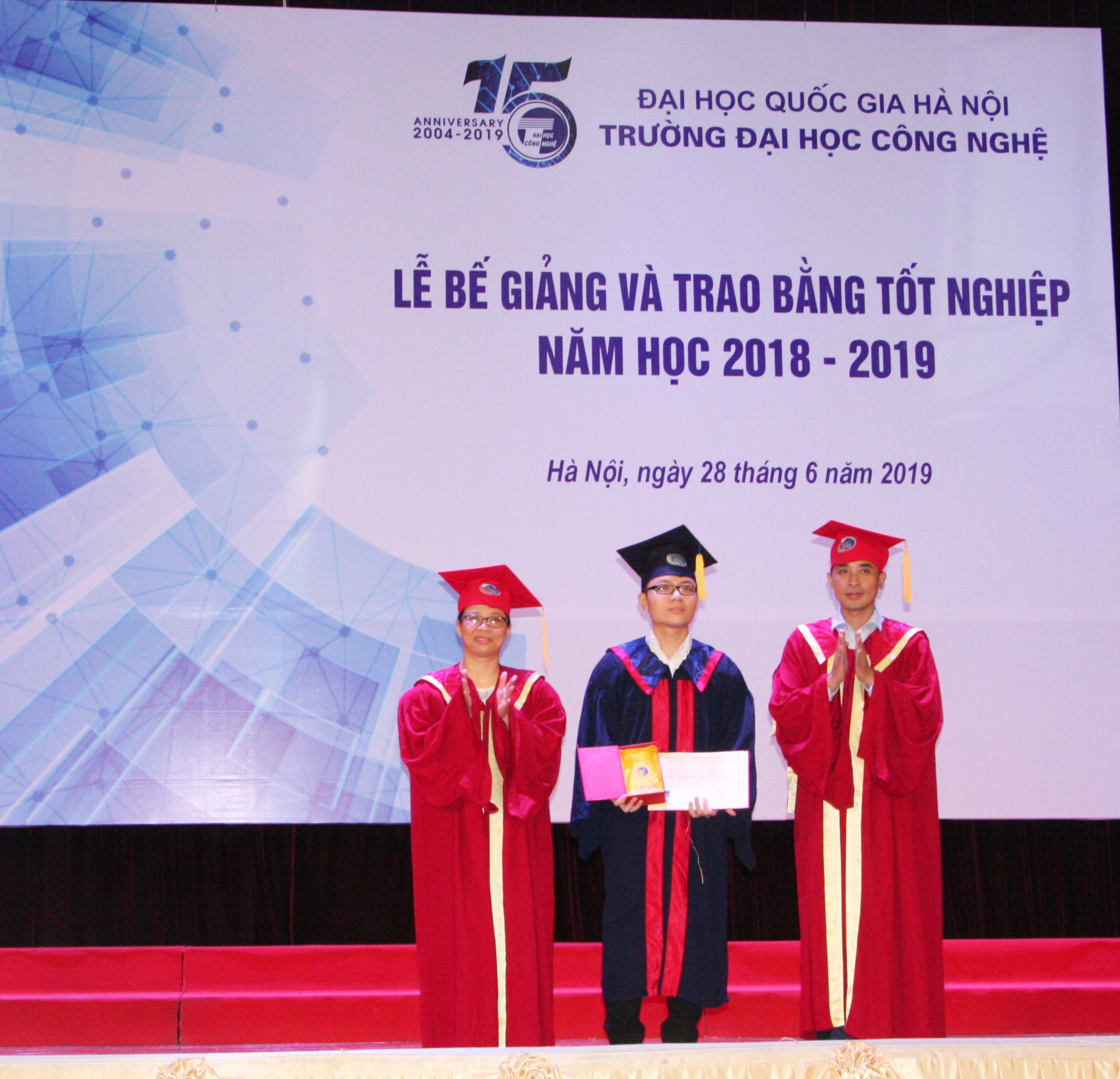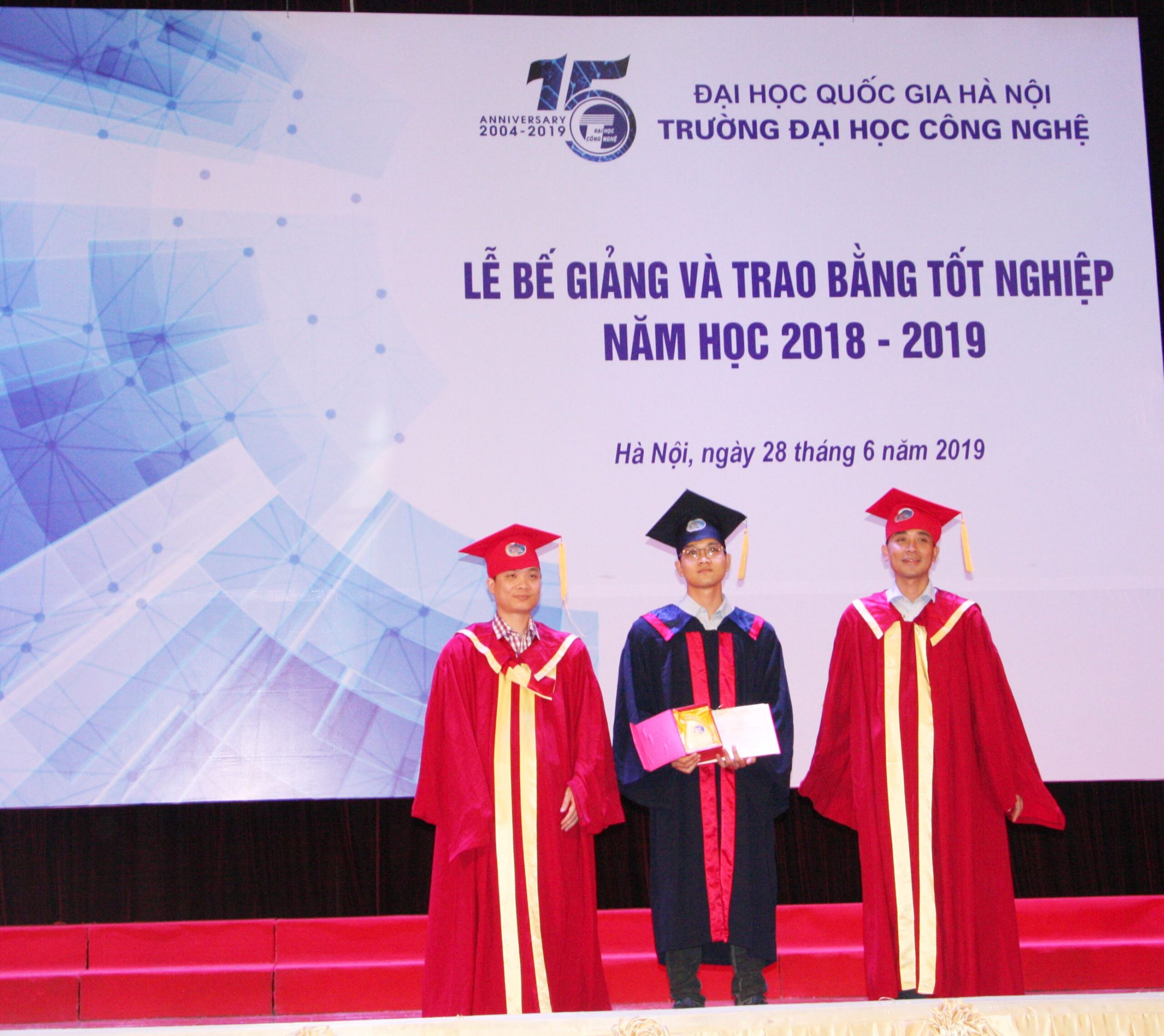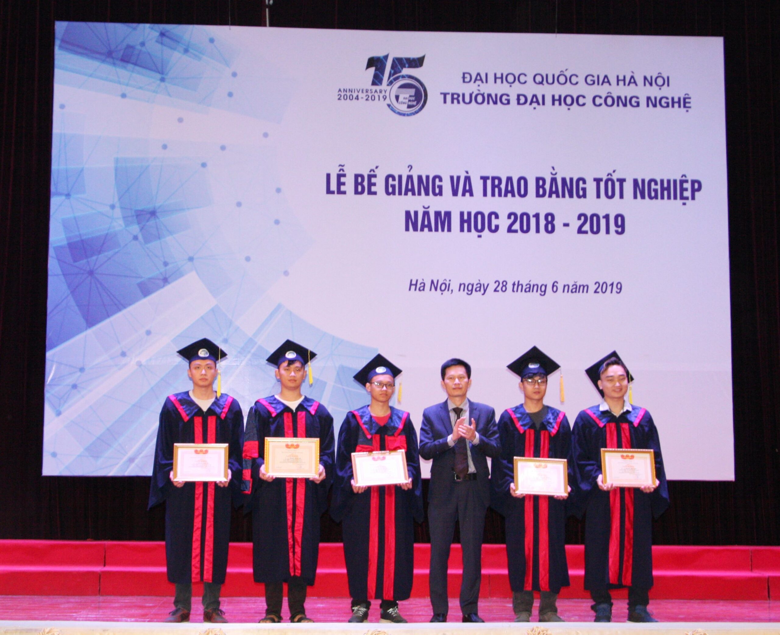 Sáng ngày 28/06, Trường Đại học Công nghệ đã trang trọng tổ chức Lễ bế giảng và trao bằng tốt nghiệp năm học 2108-2019 cho sinh viên, học viên cao học và nghiên cứu sinh tốt nghiệp đợt tháng 6/2019 các ngành Khoa học máy tính, Công nghệ kỹ thuật điện tử- truyền thông, Hệ thống thông tin, Công nghệ thông tin, Truyền thông và Mạng máy tính, Vật lý kỹ thuật, Công nghệ kỹ thuật Cơ điện tử, Cơ học kỹ thuật.