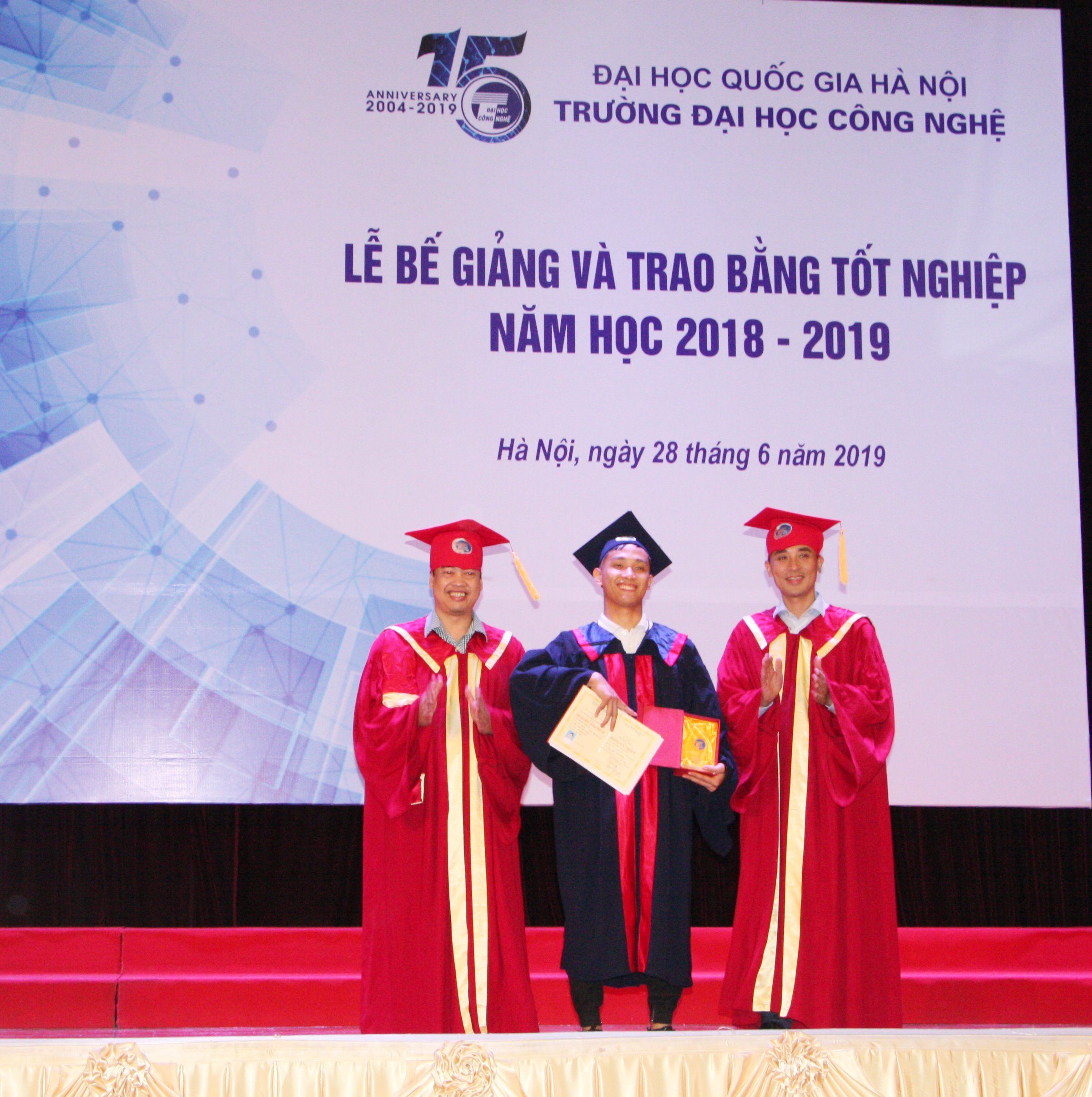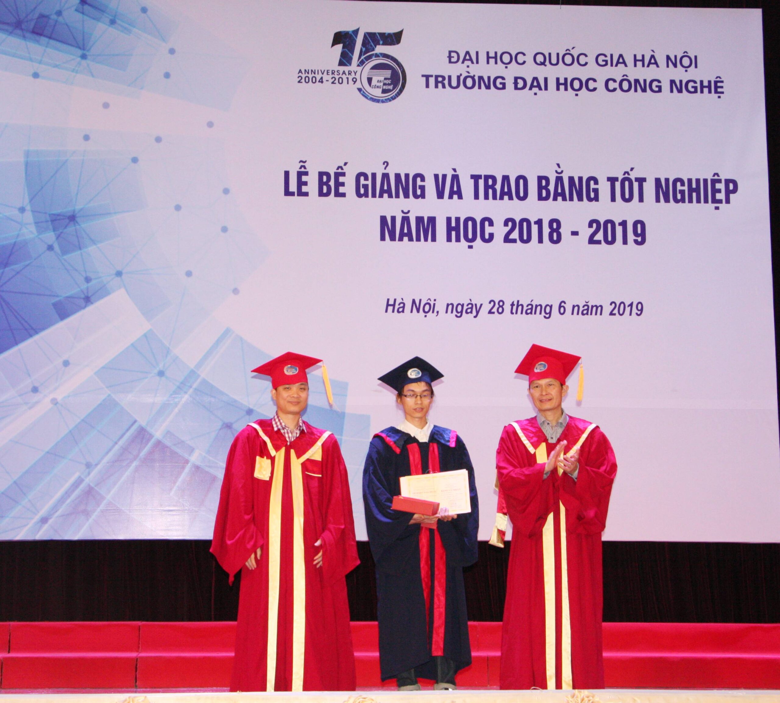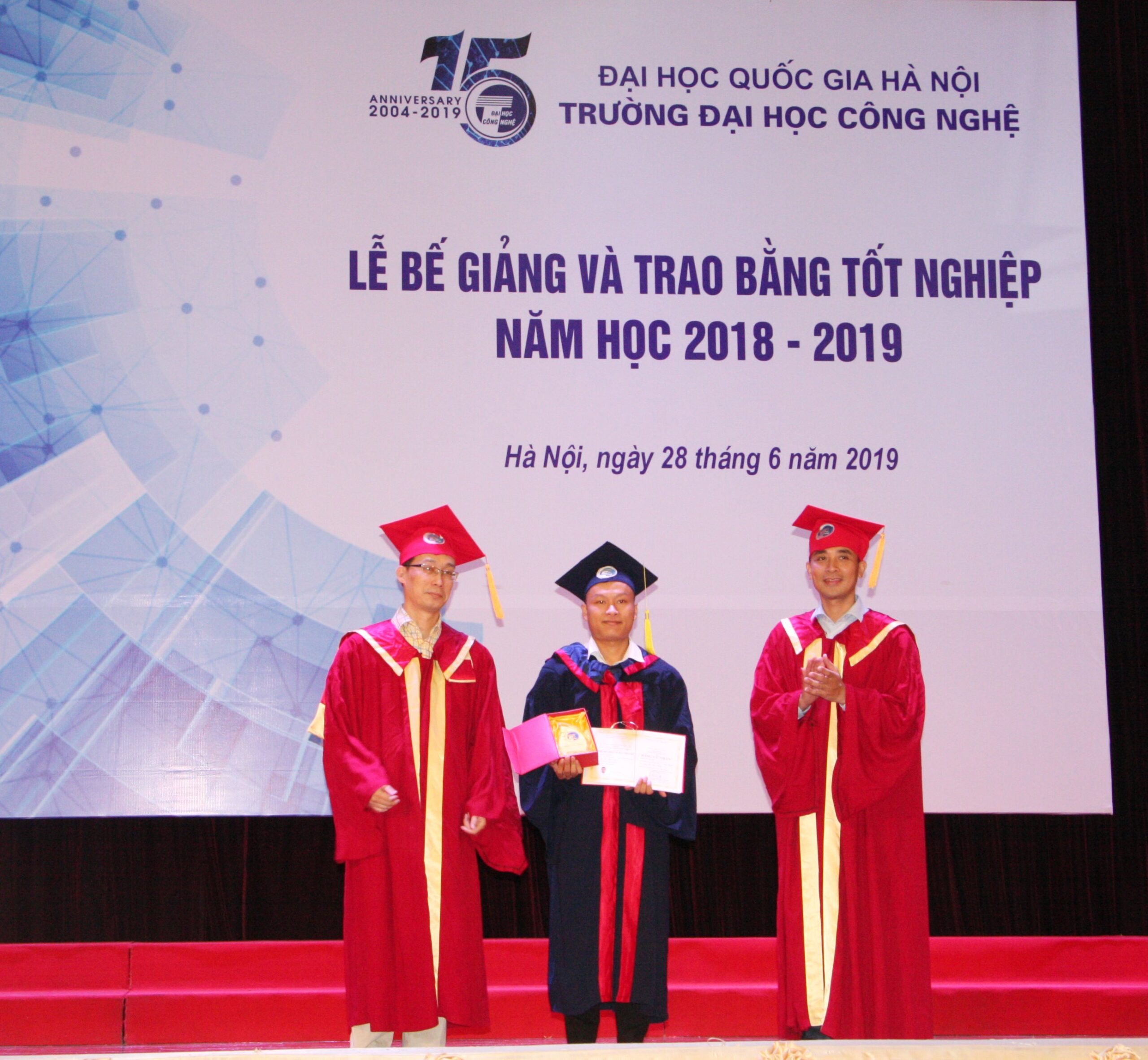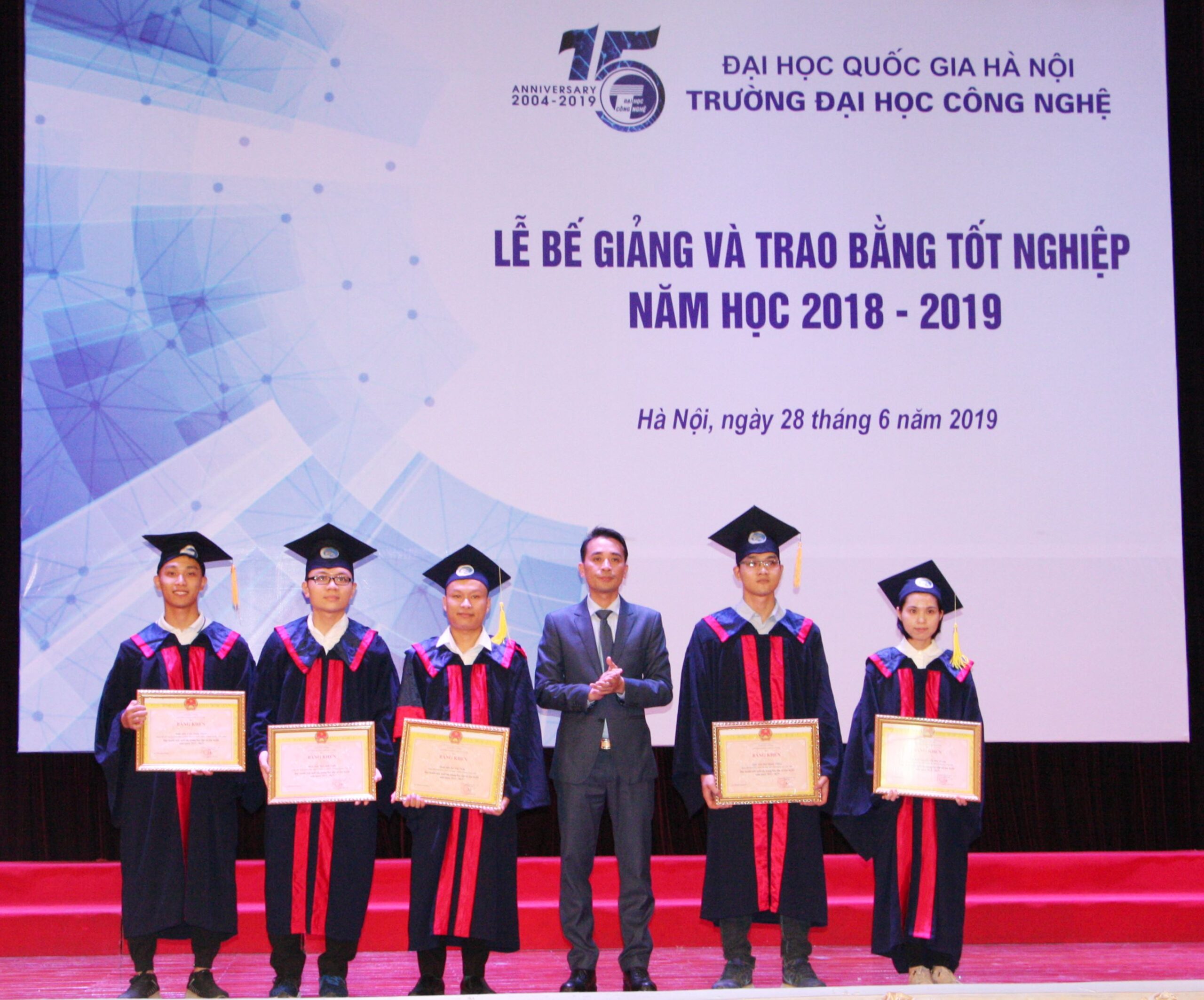Sáng ngày 28/06, Trường Đại học Công nghệ đã trang trọng tổ chức Lễ bế giảng và trao bằng tốt nghiệp năm học 2108-2019 cho sinh viên, học viên cao học và nghiên cứu sinh tốt nghiệp đợt tháng 6/2019 các ngành Khoa học máy tính, Công nghệ kỹ thuật điện tử- truyền thông, Hệ thống thông tin, Công nghệ thông tin, Truyền thông và Mạng máy tính, Vật lý kỹ thuật, Công nghệ kỹ thuật Cơ điện tử, Cơ học kỹ thuật.