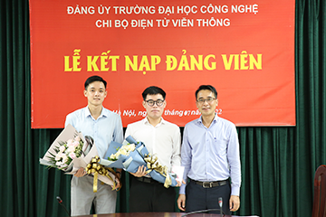 Trong không khí trang nghiêm khi nhận quyết định kết nạp, dưới cờ Tổ quốc, cờ Đảng và chân dung Chủ tịch Hồ Chí Minh, các tân đảng viên đã tuyên thệ lời thề của người đảng viên Đảng Cộng sản Việt Nam, hứa sẽ tiếp tục phấn đấu để luôn xứng đáng là người đảng viên gương mẫu, đóng góp sức mình thực hiện thành công nhiệm vụ chính trị của Chi bộ, góp phần xây dựng Đảng bộ Trường ĐHCN ngày càng vững mạnh.Tại buổi Lễ, TS. Đinh Triều Dương – Bí thư Chi bộ Điện tử viễn thông đã lần lượt trao Quyết định kết nạp Đảng viên cho 02 quần chúng ưu tú, căn dặn và giao nhiệm vụ cho các đồng chí tân đảng viên tiếp tục phát huy vai trò trách nhiệm trong tu dưỡng, rèn luyện, phấn đấu, học tập, nâng cao nhận thức chính trị và năng lực chuyên môn, nghiệp vụ, góp phần xây dựng Chi bộ trong sạch, vững mạnh; thực hiện đúng nghĩa vụ của người đảng viên Đảng Cộng sản Việt Nam, đặc biệt là thực hiện tốt quy định về những điều Đảng viên không được làm.