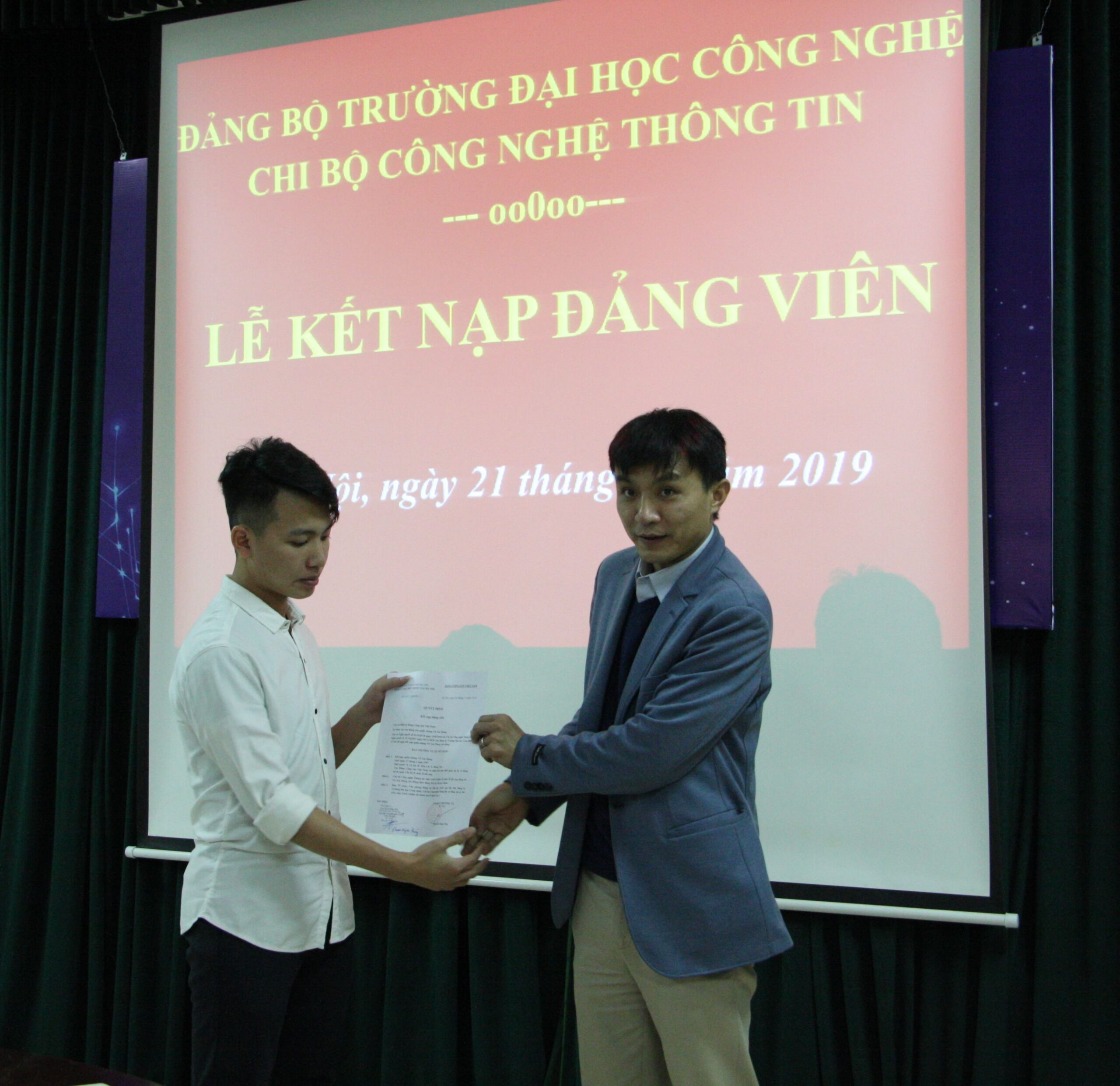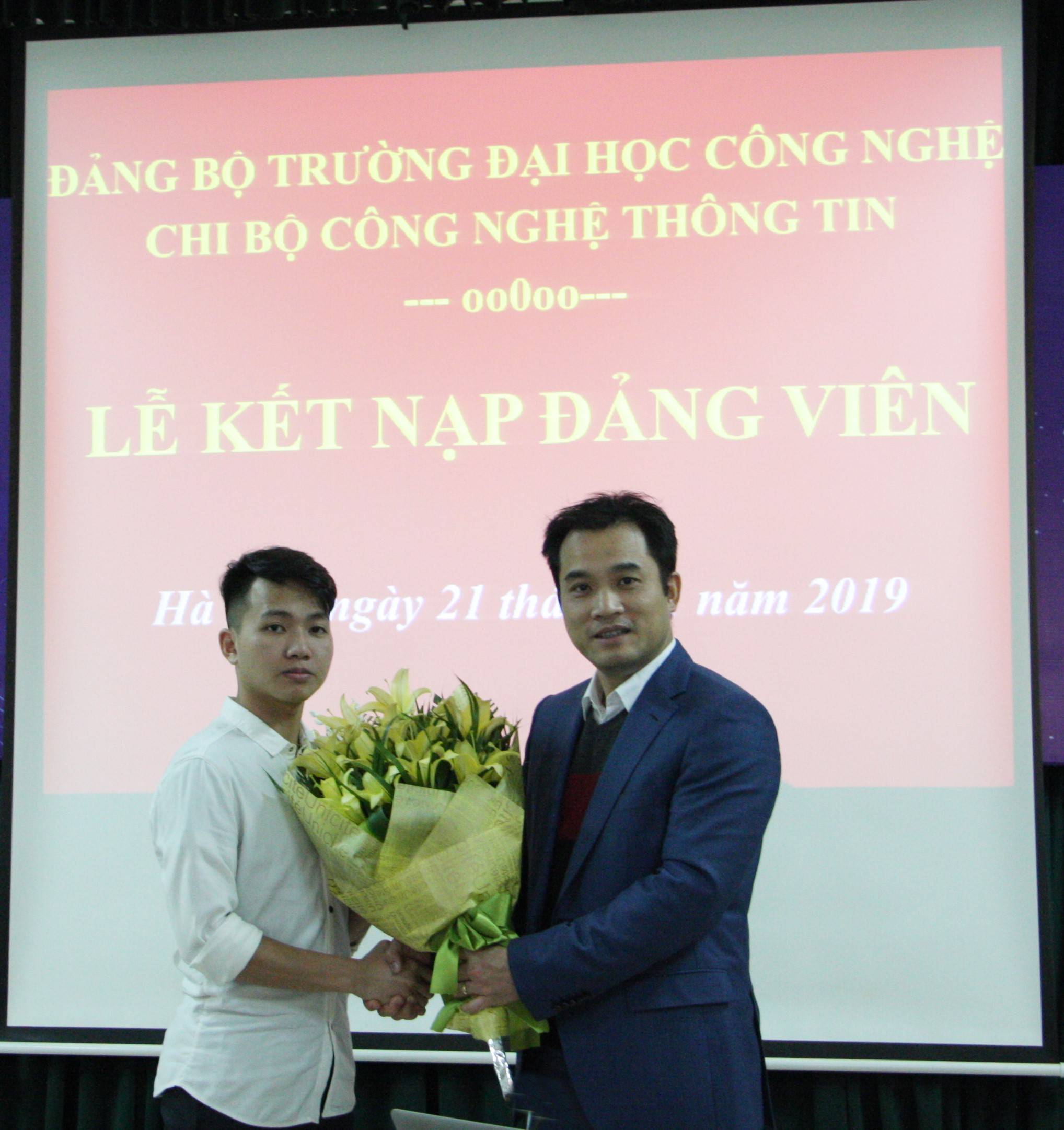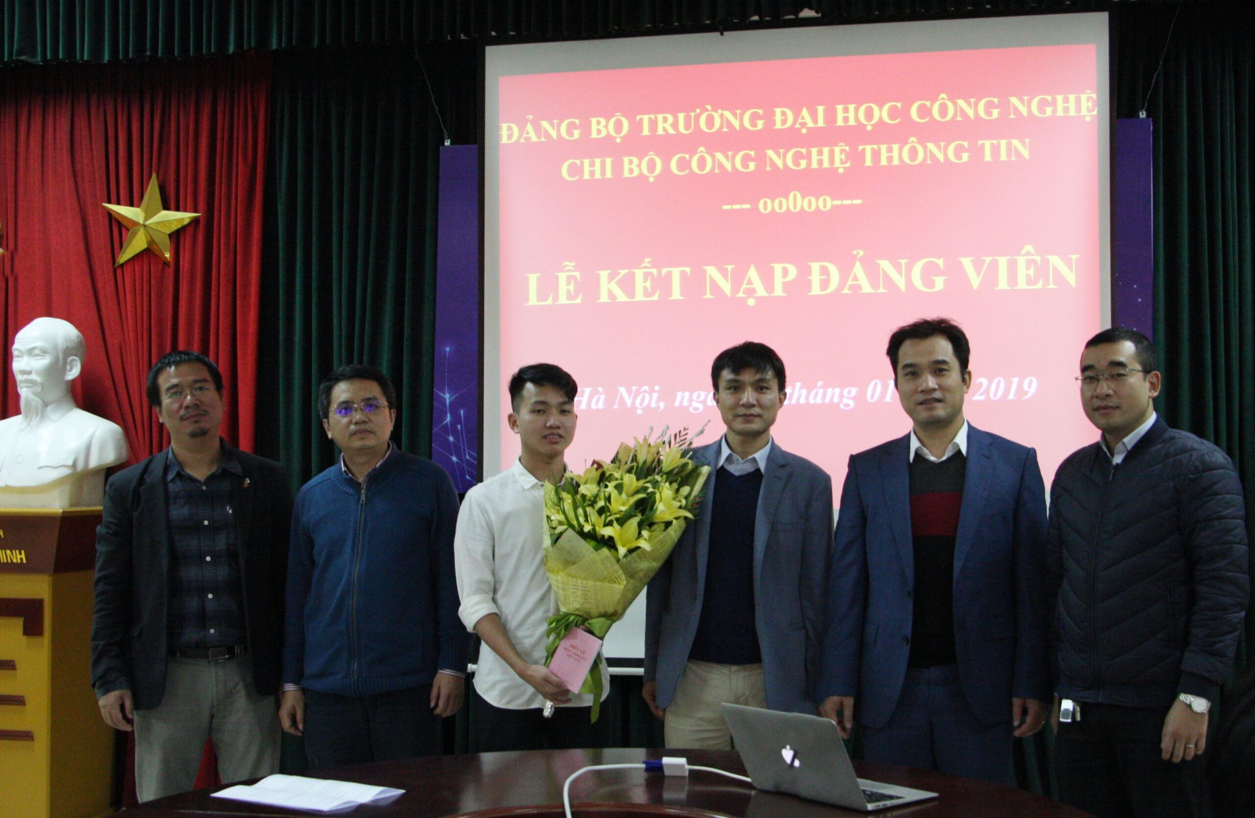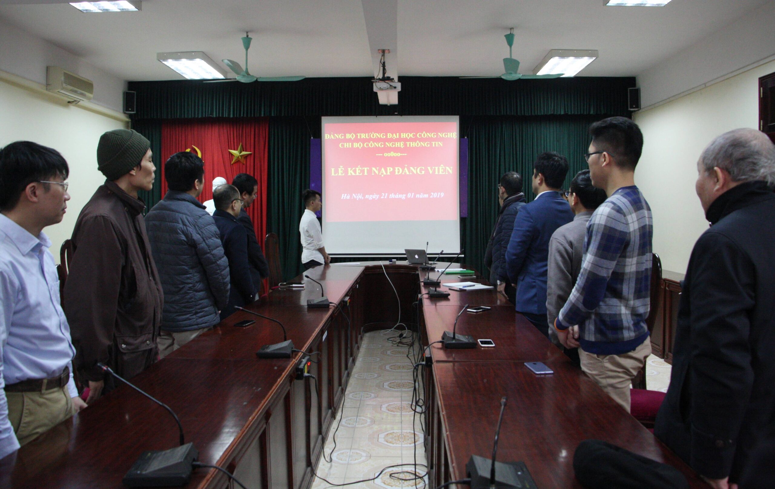 Ngày 21/01, Chi bộ Công nghệ thông tin thuộc Đảng bộ Trường Đại học Công nghệ đã trang trọng tổ chức Lễ kết nạp Đảng cho sinh viên Vũ Gia Hùng (K60) tại nhà E3..