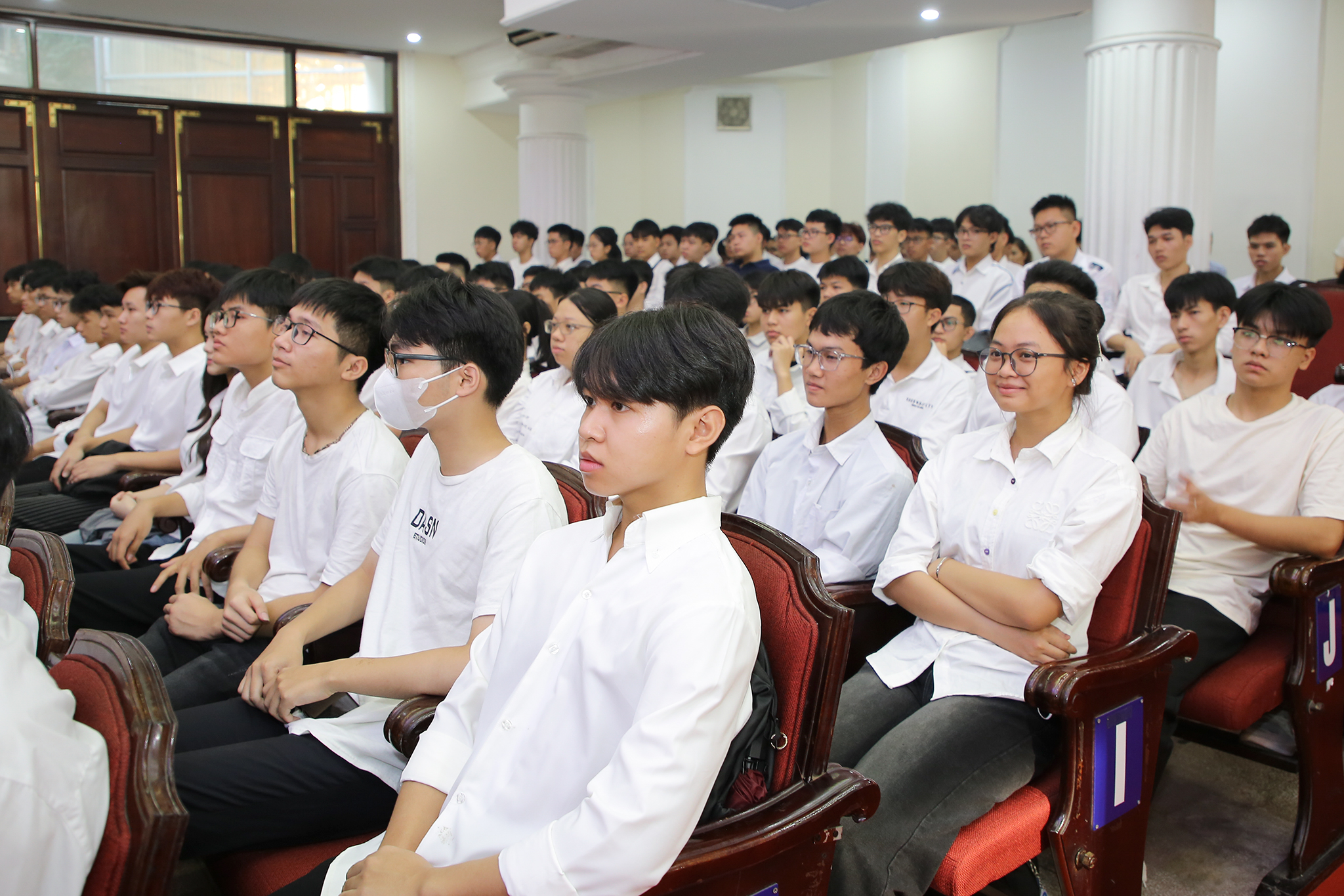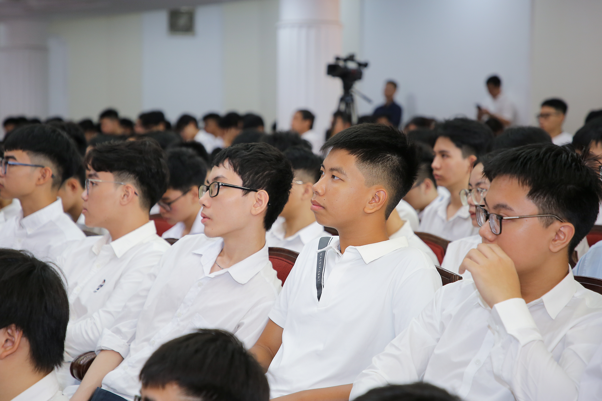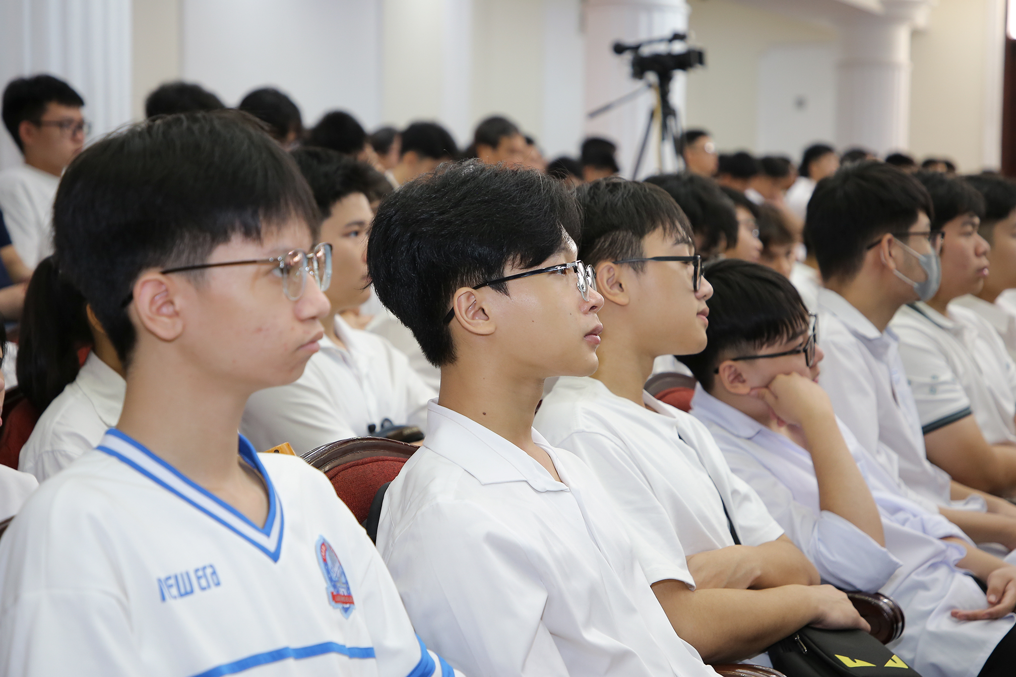 Tân sinh viên Lê Nguyễn Quốc Bình, Khoa Công nghệ thông tin tự hào và xúc động khi dự lễ khai giảng trực tuyến toàn quốc – sự kiện lần đầu tiên tổ chức tại Trường ĐH Công nghệ với sự tham dự của Tổng Bí thư Tô Lâm. “Bài phát biểu của Tổng Bí thư đã truyền cảm hứng, làm em càng thêm tự hào và thôi thúc em nỗ lực nhiều hơn để đóng góp cho sự phát triển khoa học công nghệ của đất nước” – Quốc Bình chia sẻ.