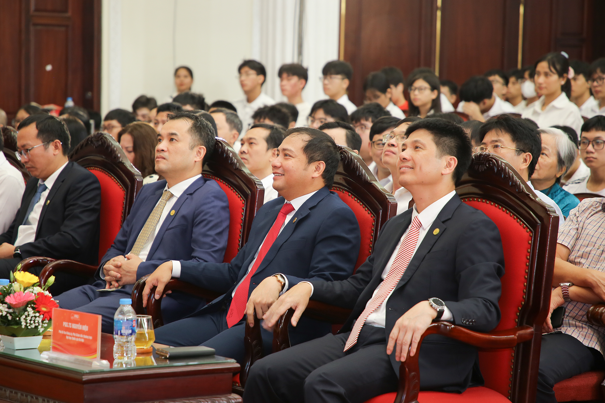 Các Phó Giám đốc ĐHQGHN tham dự Lễ khai giảng tại điểm cầu ĐHQGHN (Từ phải sang: PGS.TS Nguyễn Hiệu; PGS.TS Đào Thanh Trường, PGS.TS Phạm Bảo Sơn)