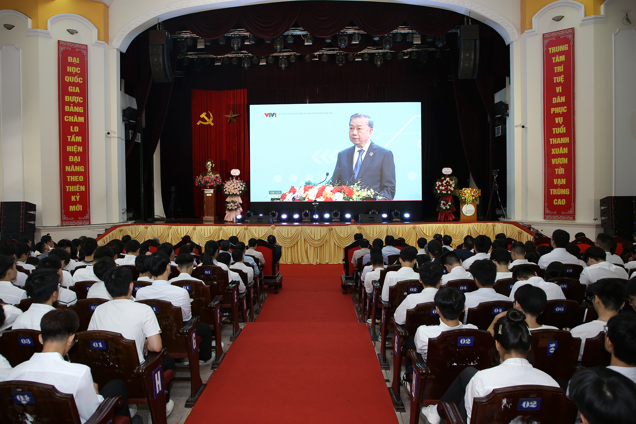 Để thực hiện thắng lợi sự nghiệp đổi mới giáo dục và đào tạo trong giai đoạn mới, tại Lễ khai giảng, Tổng Bí thư Tô Lâm phát biểu chỉ đạo nhấn mạnh 9 định hướng để Giáo dục là động lực then chốt phát triển đất nước. Trong đó, đối với giáo dục đại học, Tổng Bí thư nêu rõ phải tạo đột phá trong giáo dục đại học và giáo dục nghề nghiệp, làm sao để đại học phải trở thành trung tâm sản sinh tri thức, công nghệ, là hạt nhân đổi mới sáng tạo – khởi nghiệp.